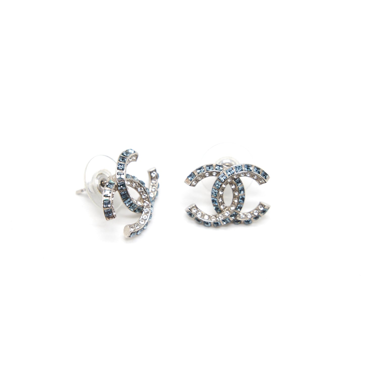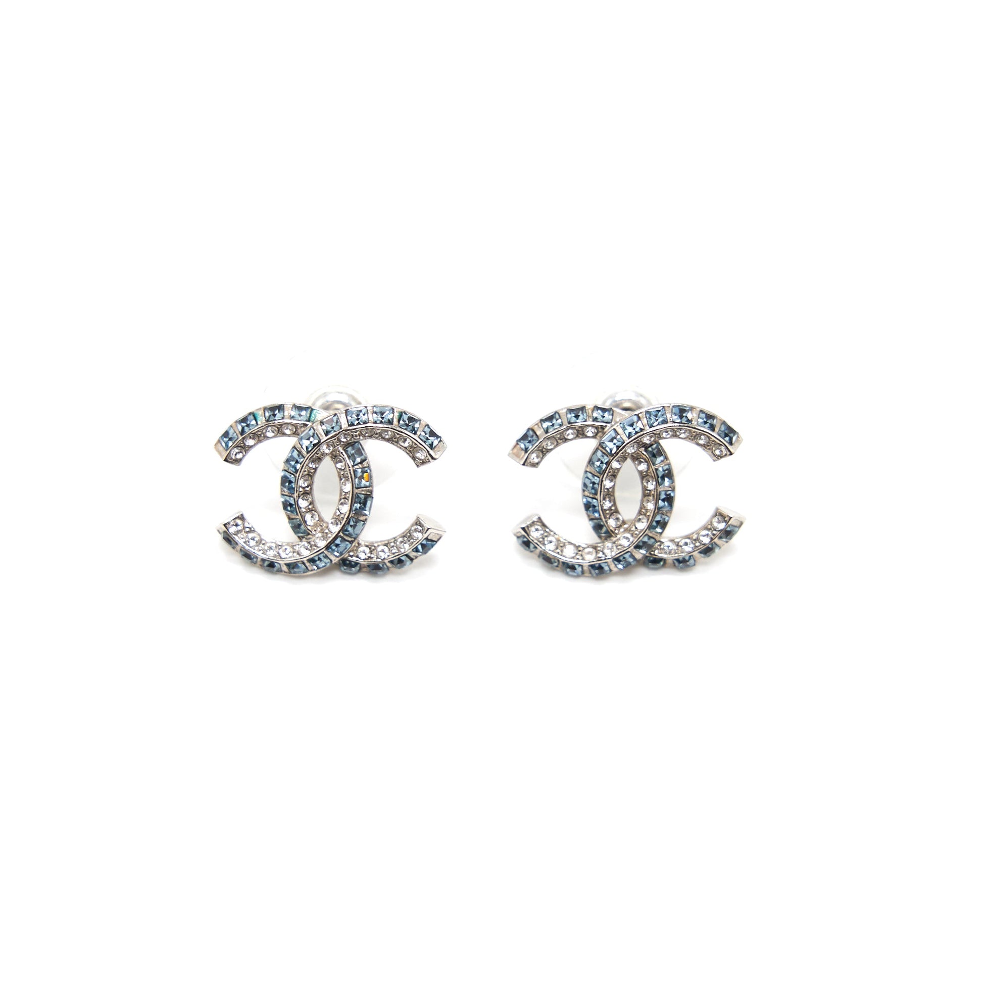 Chanel CC Crystal Stud Earrings in Blue and White Crystals