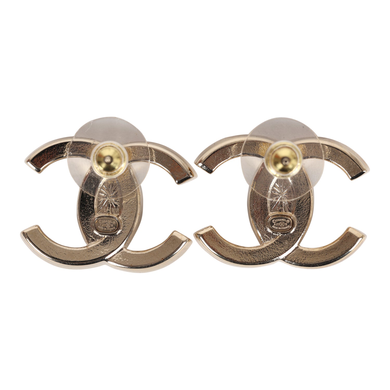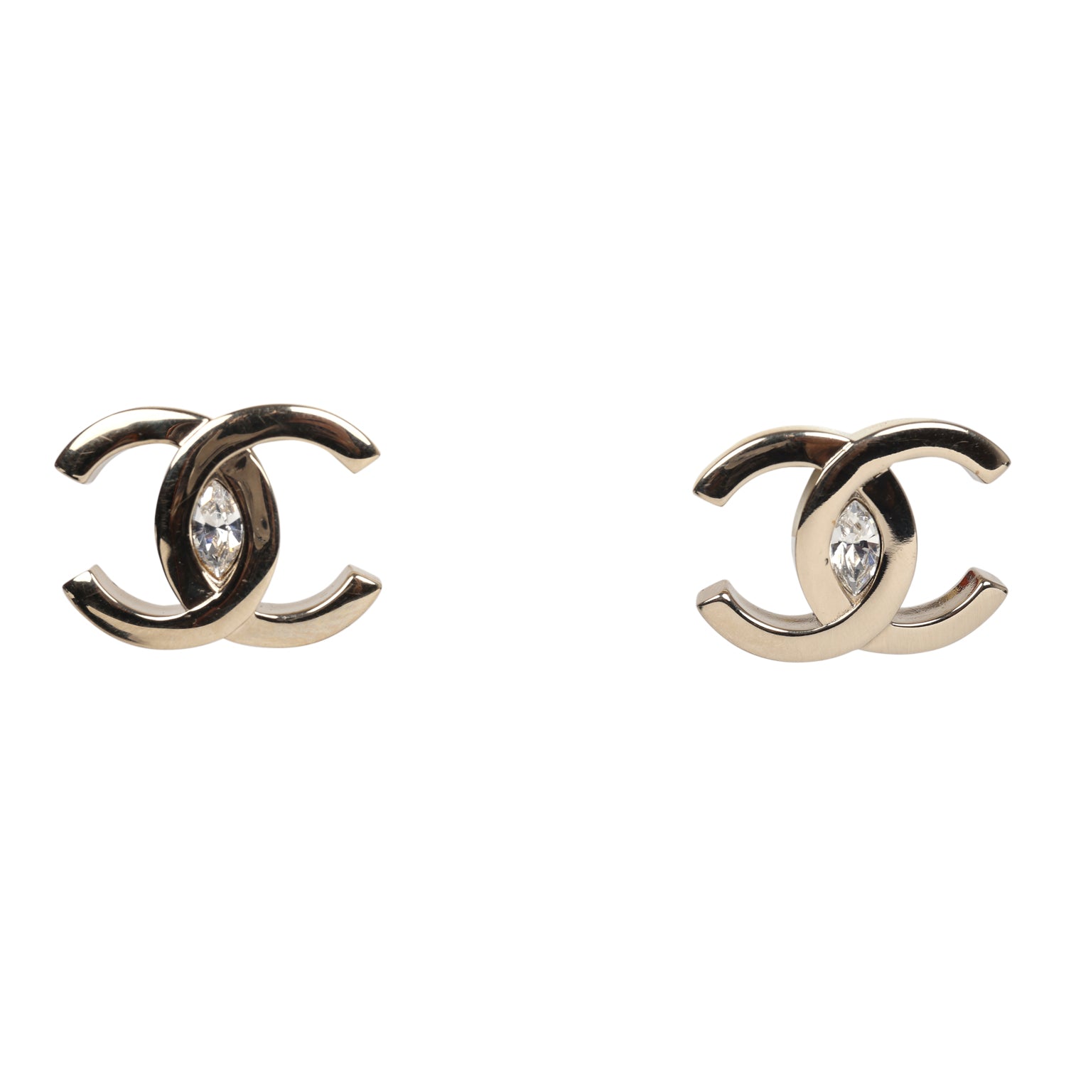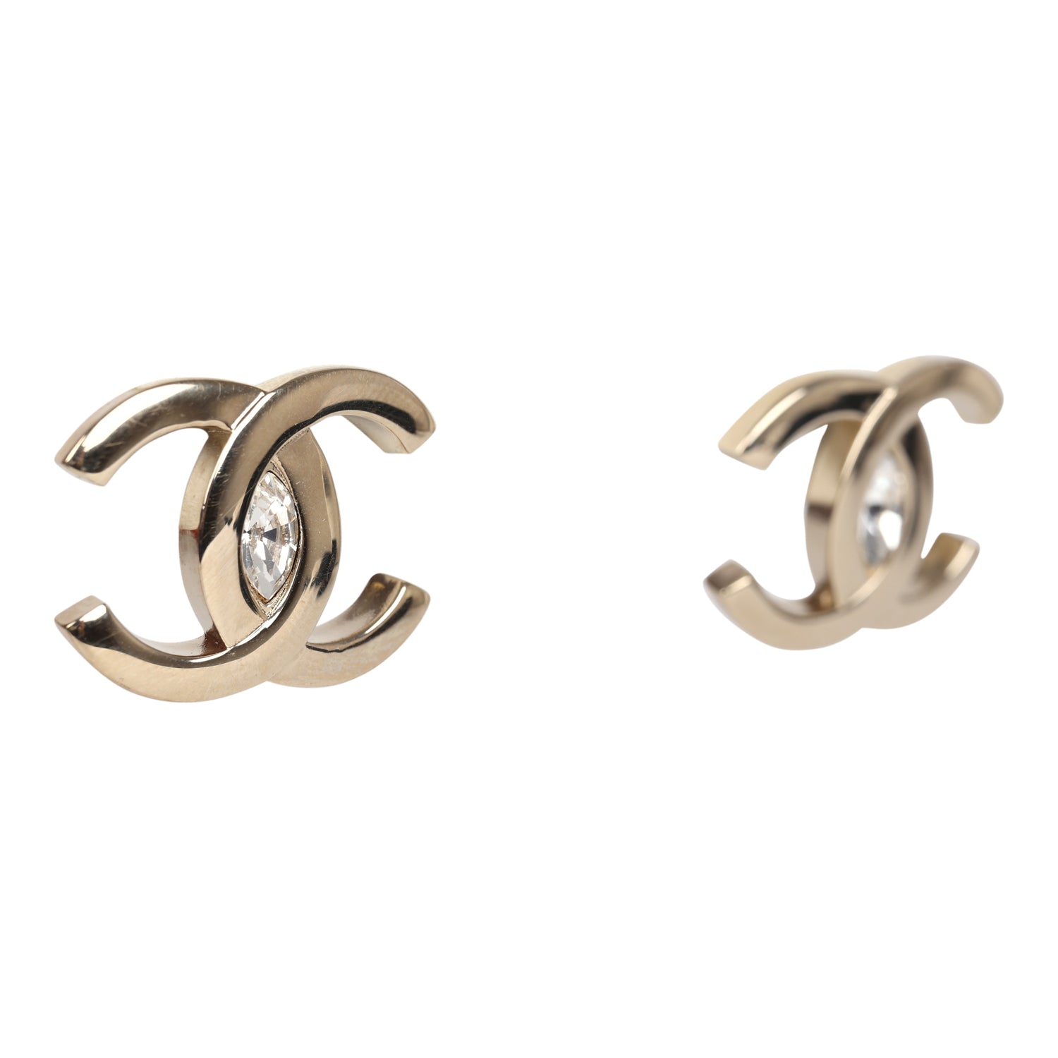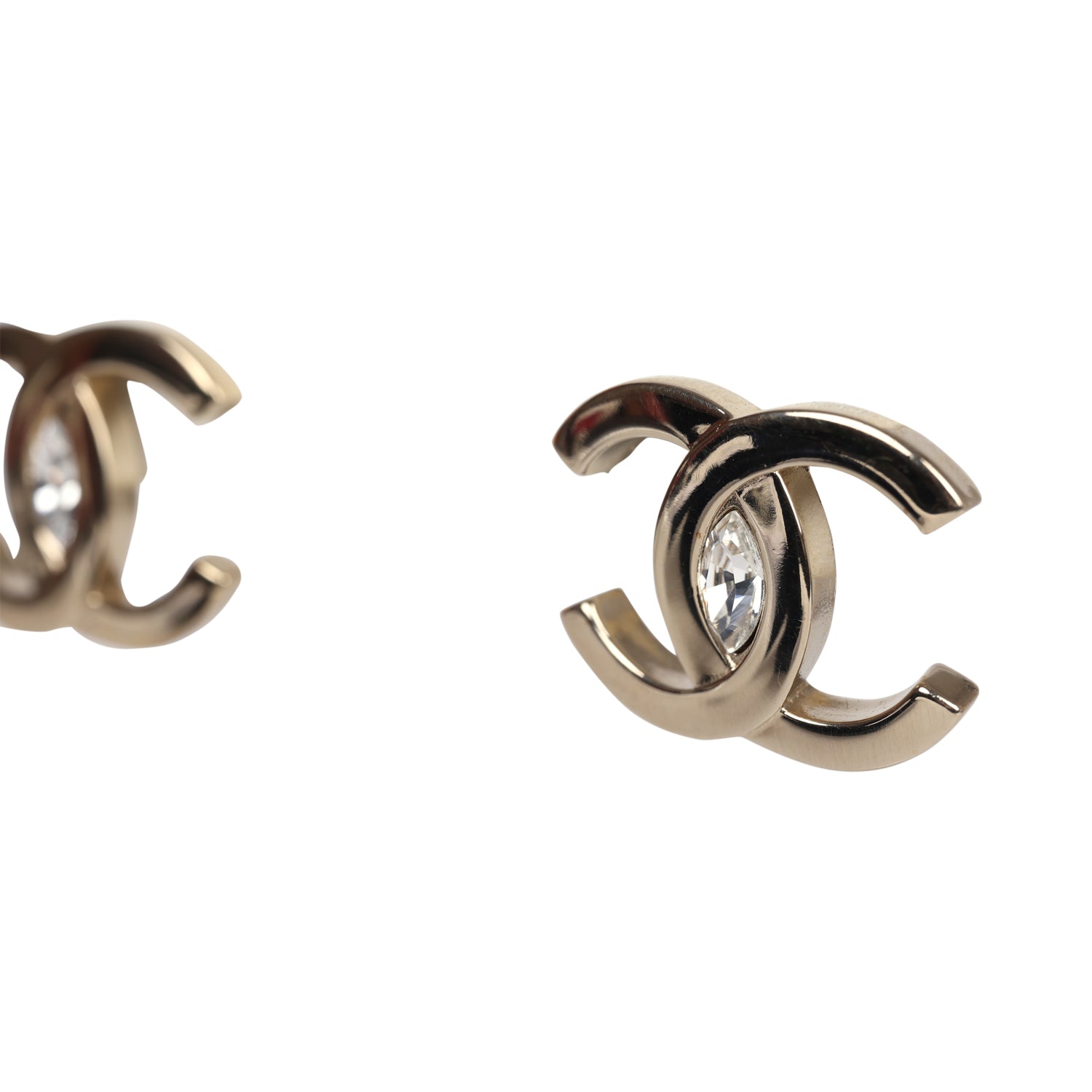 Chanel CC Crystal Stud Earrings Light Gold Hardware