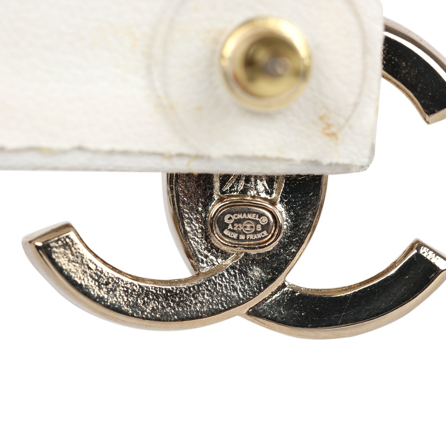 These Chanel Crystal CC stud earrings are in light gold tone hardware and have one clear faux crystal stone in the center of the CC with post back closures.