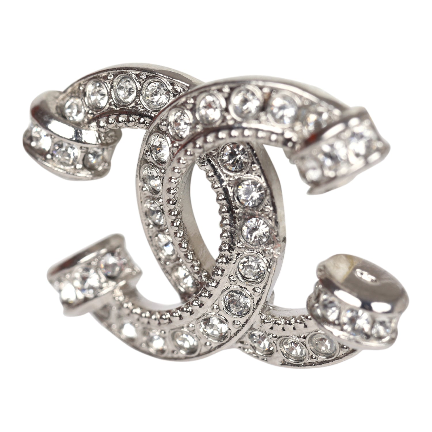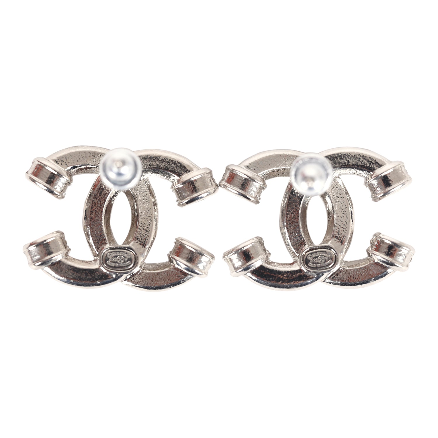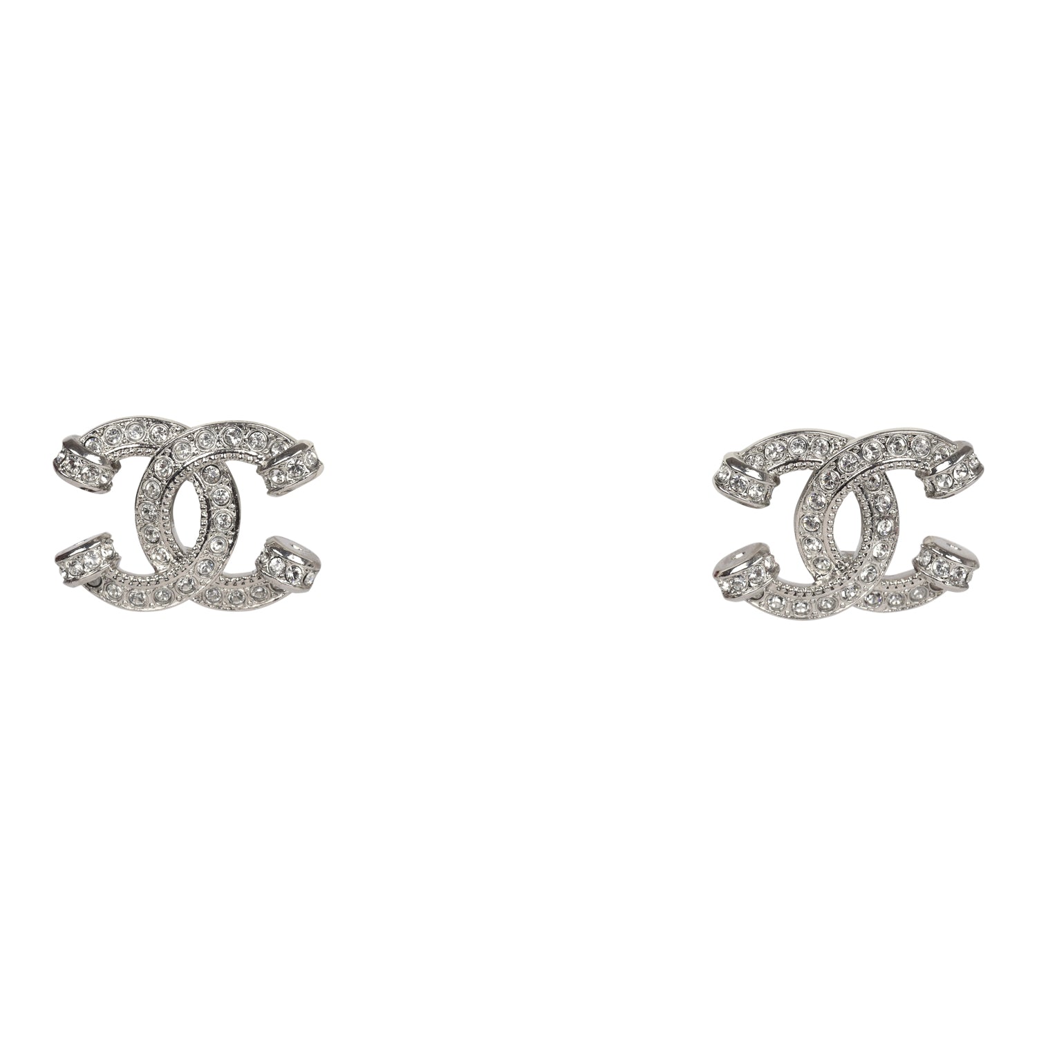 Chanel CC Crystal Stud Earrings Silver Hardware