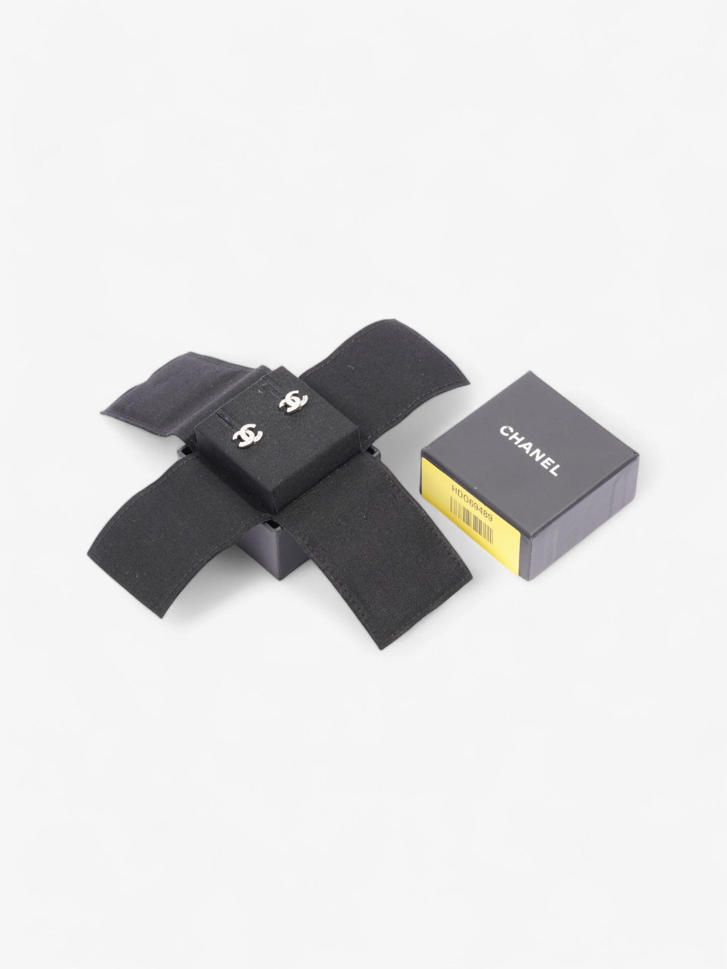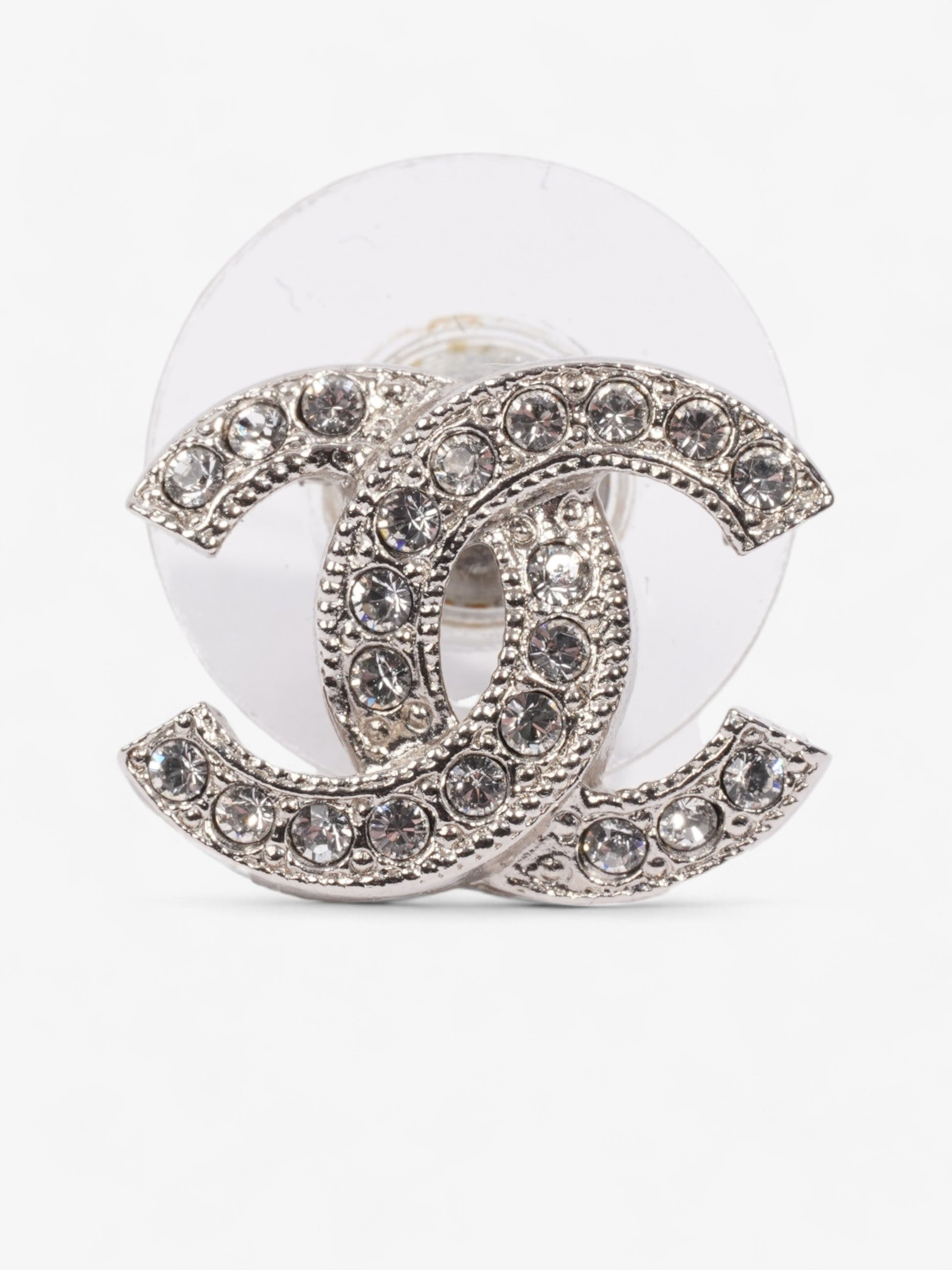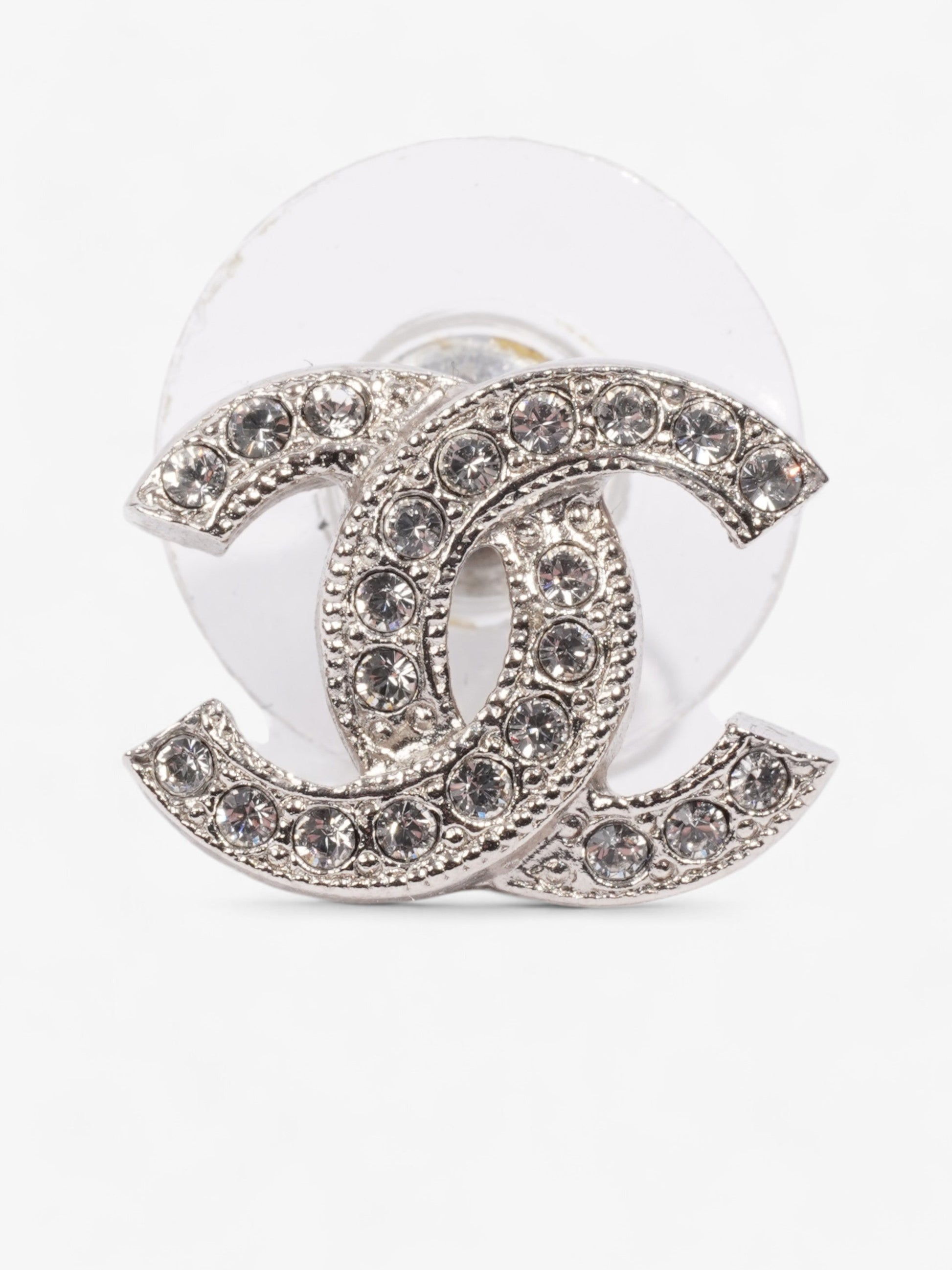 Chanel CC Crystal Stud Earrings Silver / White Base Metal