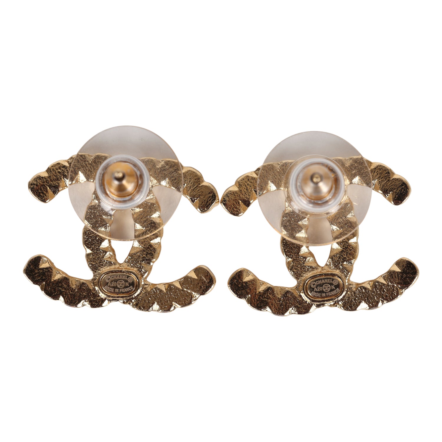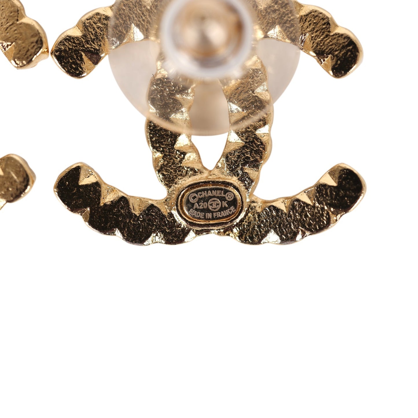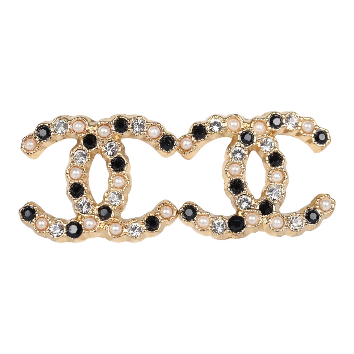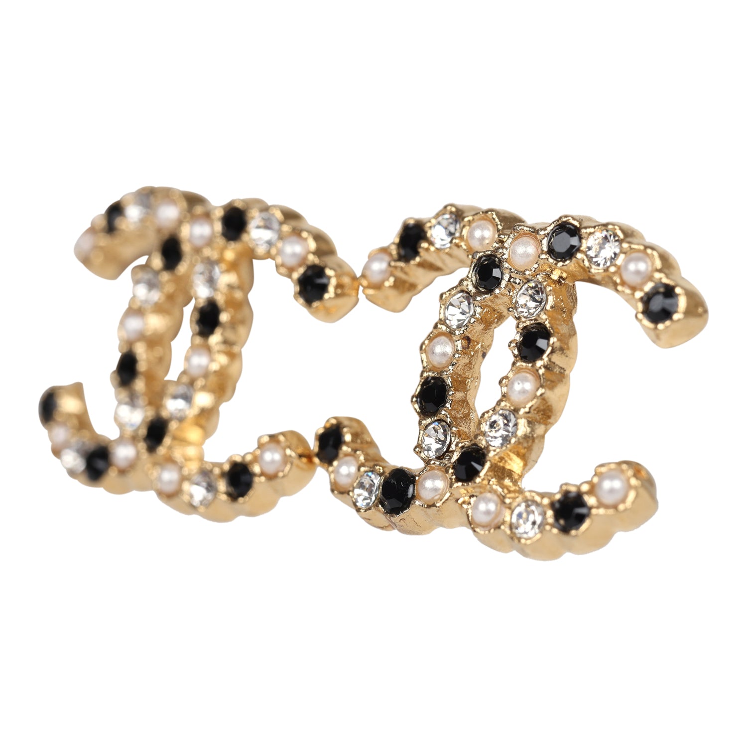 Chanel CC Crystals & Resin Pearls Stud Earrings Black and White Gold Tone Metal