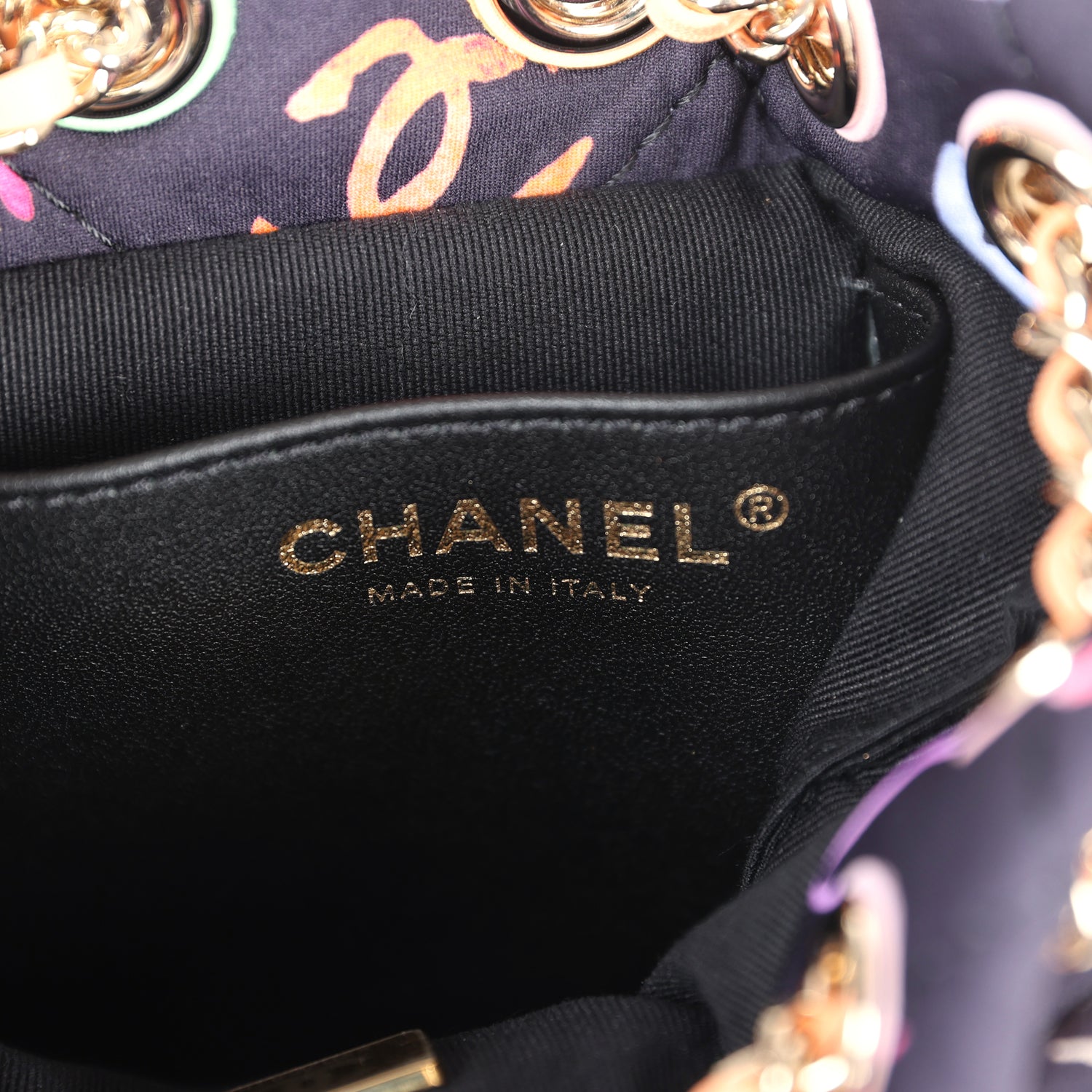 Chanel Medium CC Drawstring Backpack Multicolored Printed Fabric Light Gold Hardware