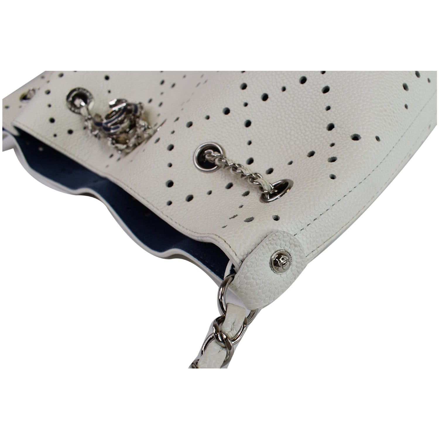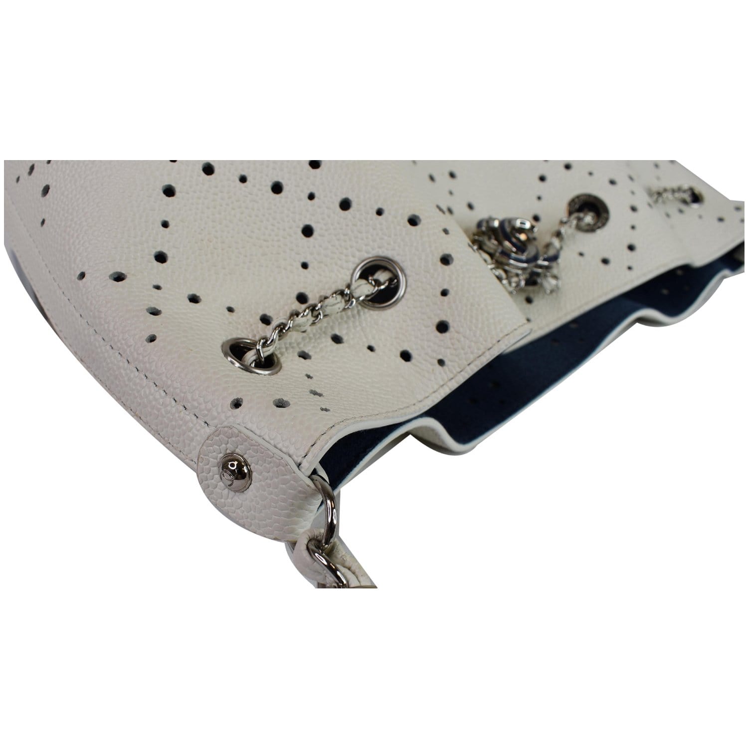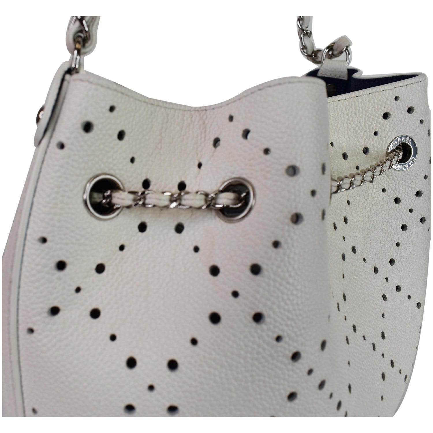 Chanel CC Drawstring Medium Perforated Caviar Bucket Bag White - 15% OFF