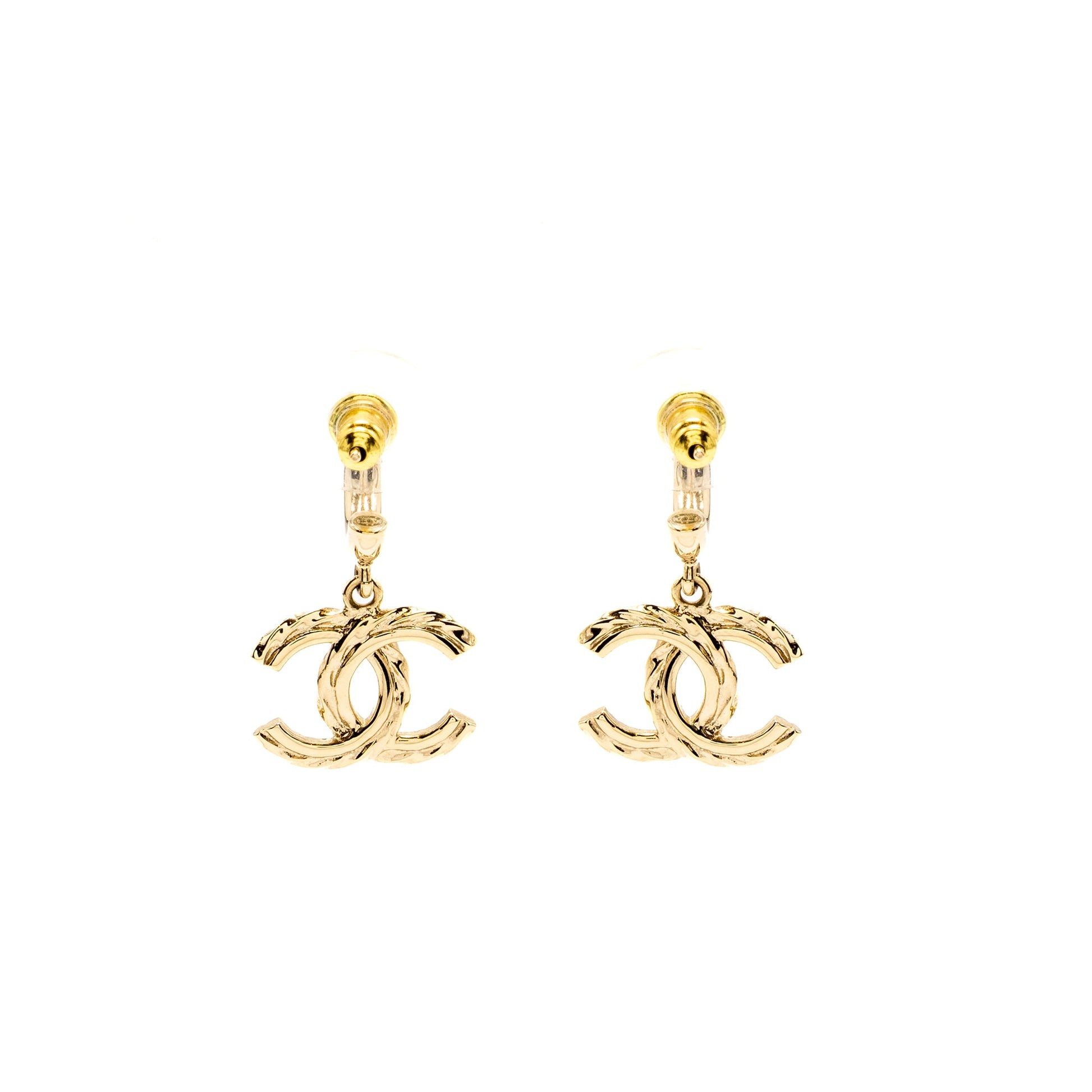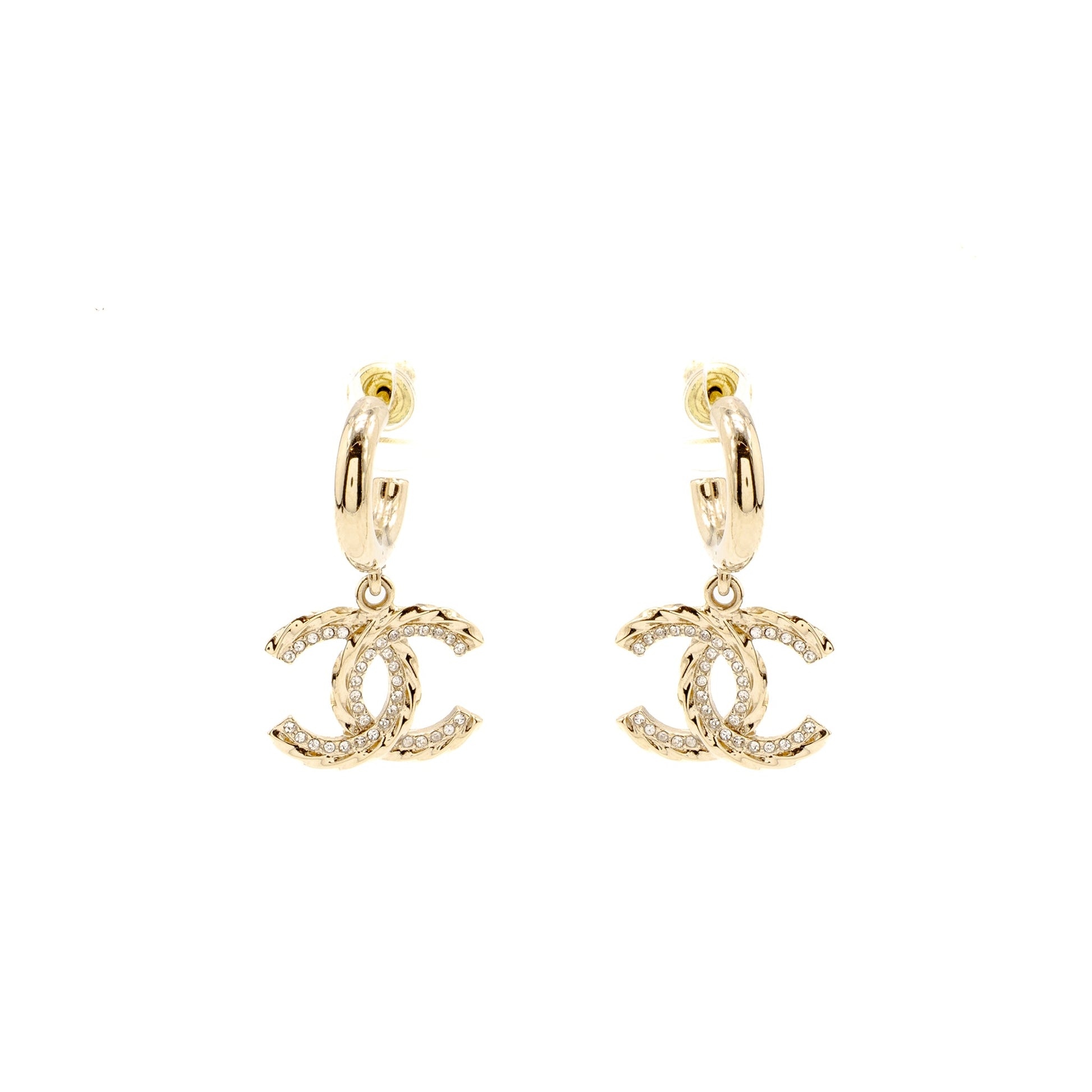 Chanel CC Drop Earrings Crystal Light Gold Tone
