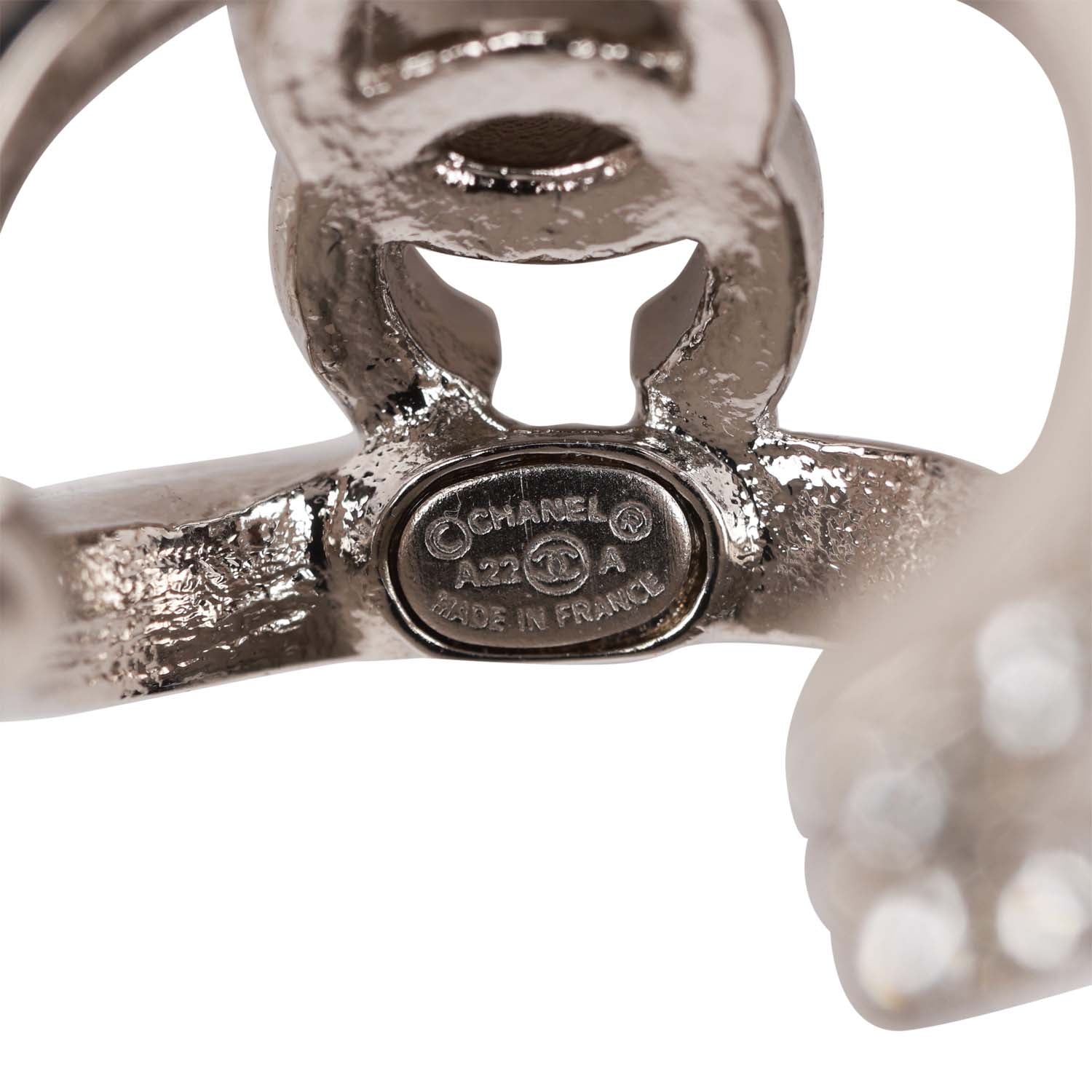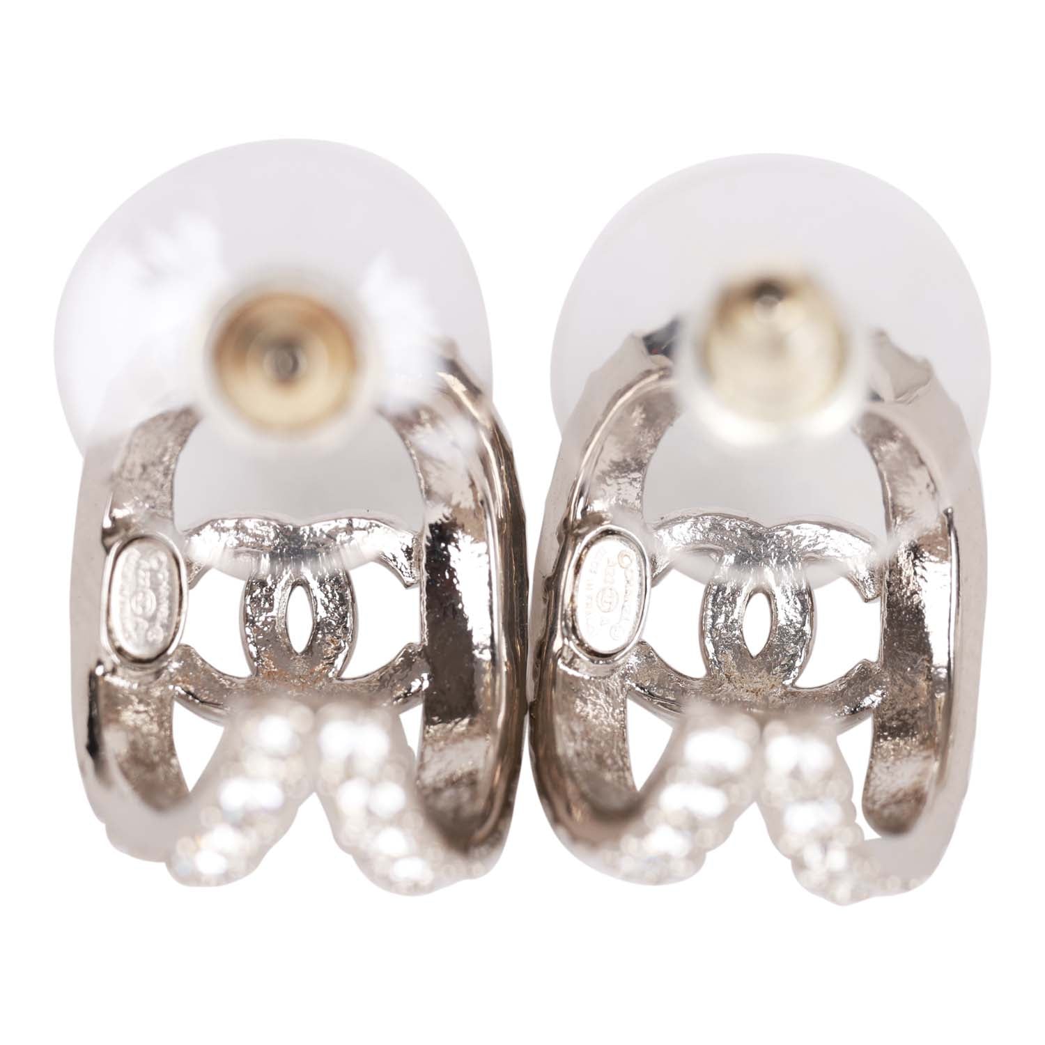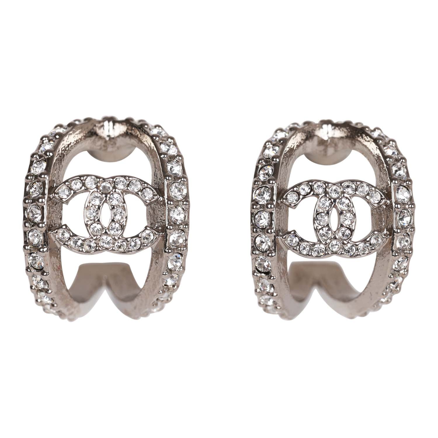 These 22A Chanel hoop earrings feature the signature CC logo in faux crystals and silver.