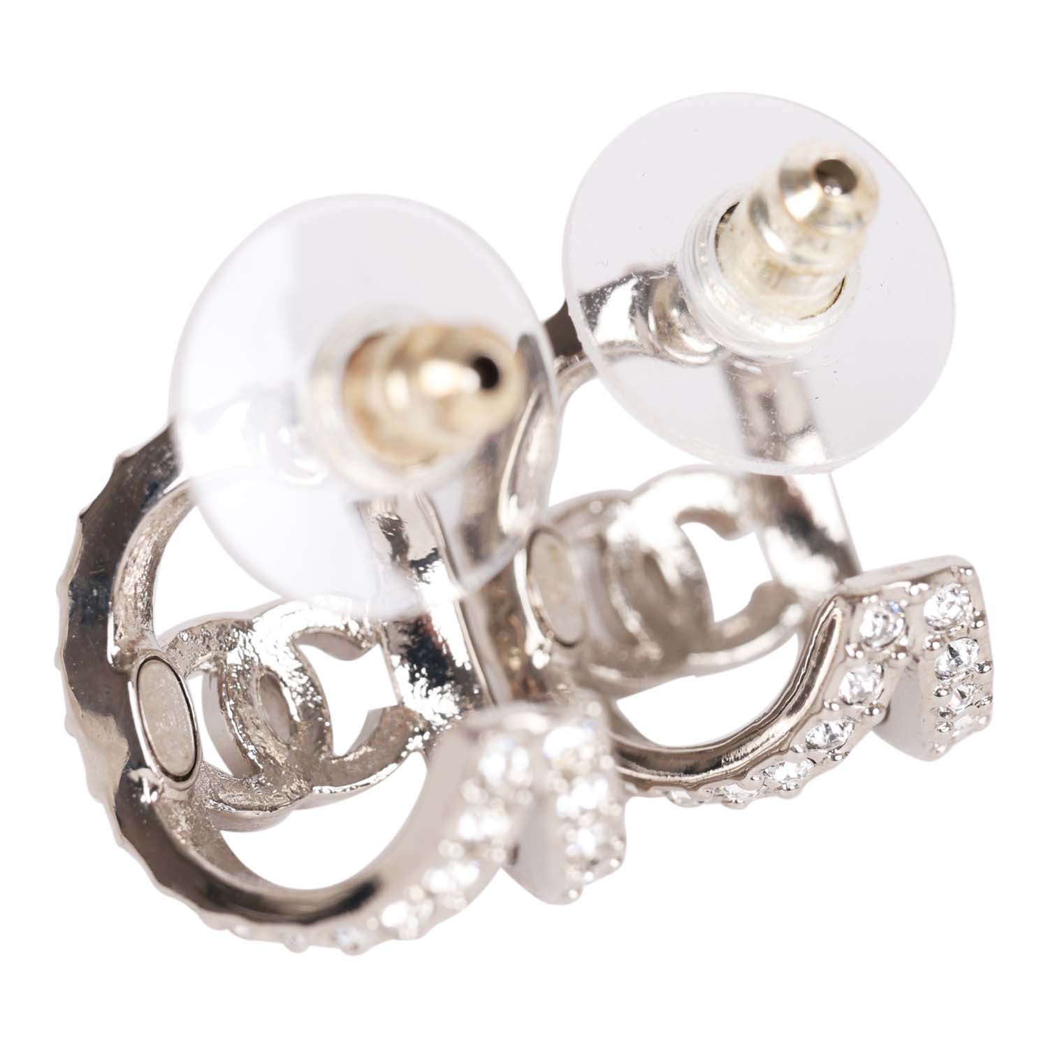 Chanel CC Huggie Silver and Crystal C Hoop Earrings