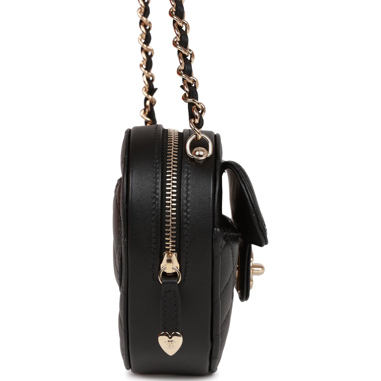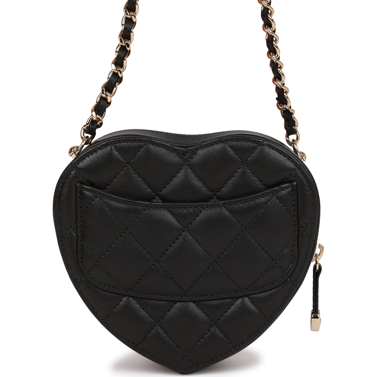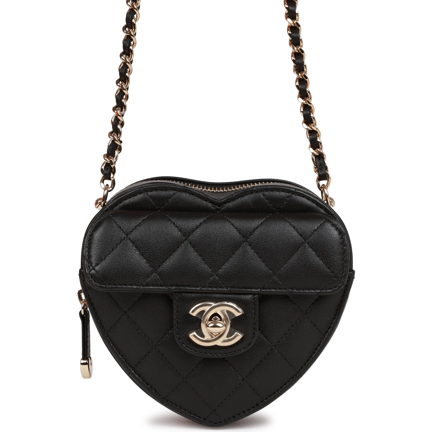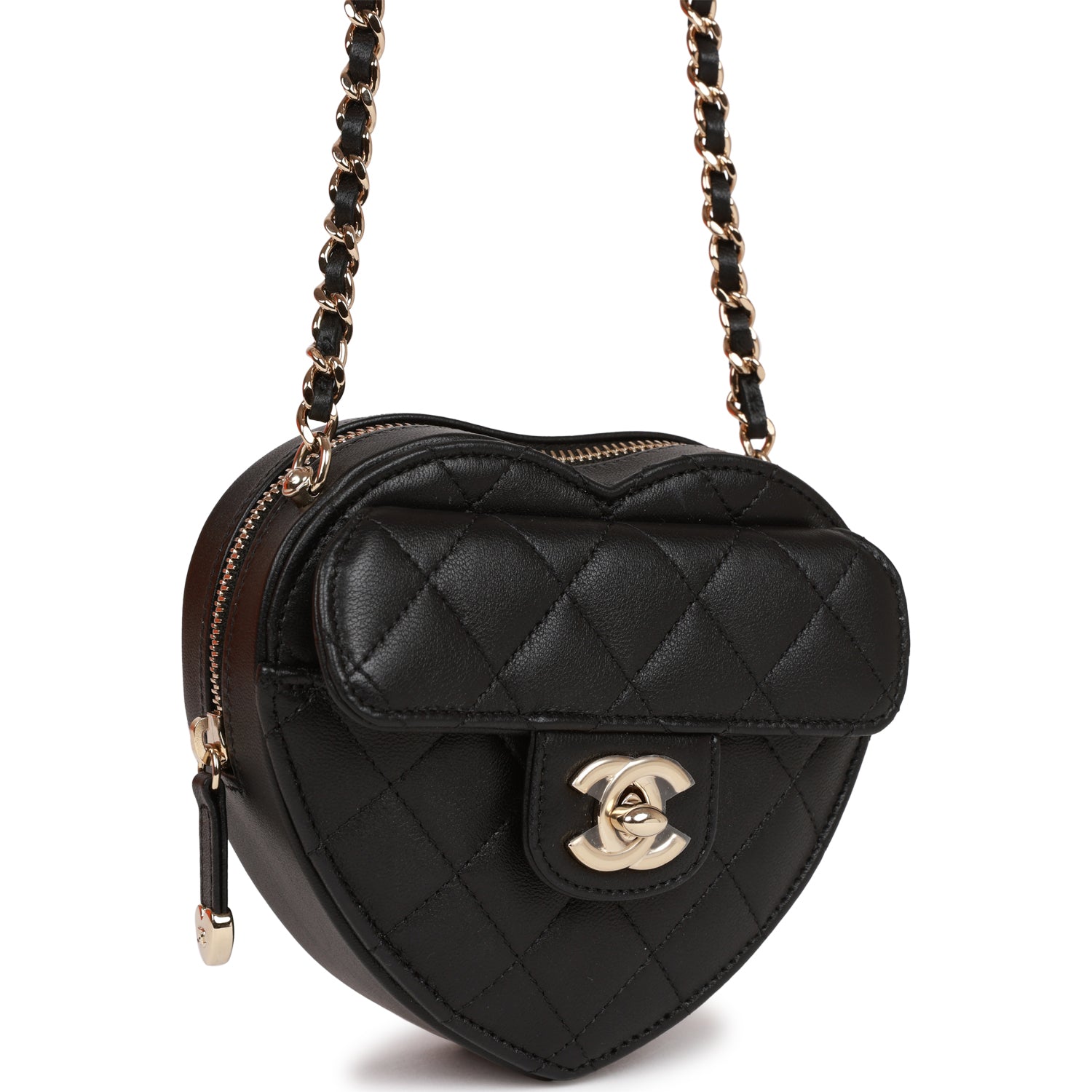 Chanel CC In Love Heart Clutch with Chain Black Lambskin Light Gold Hardware