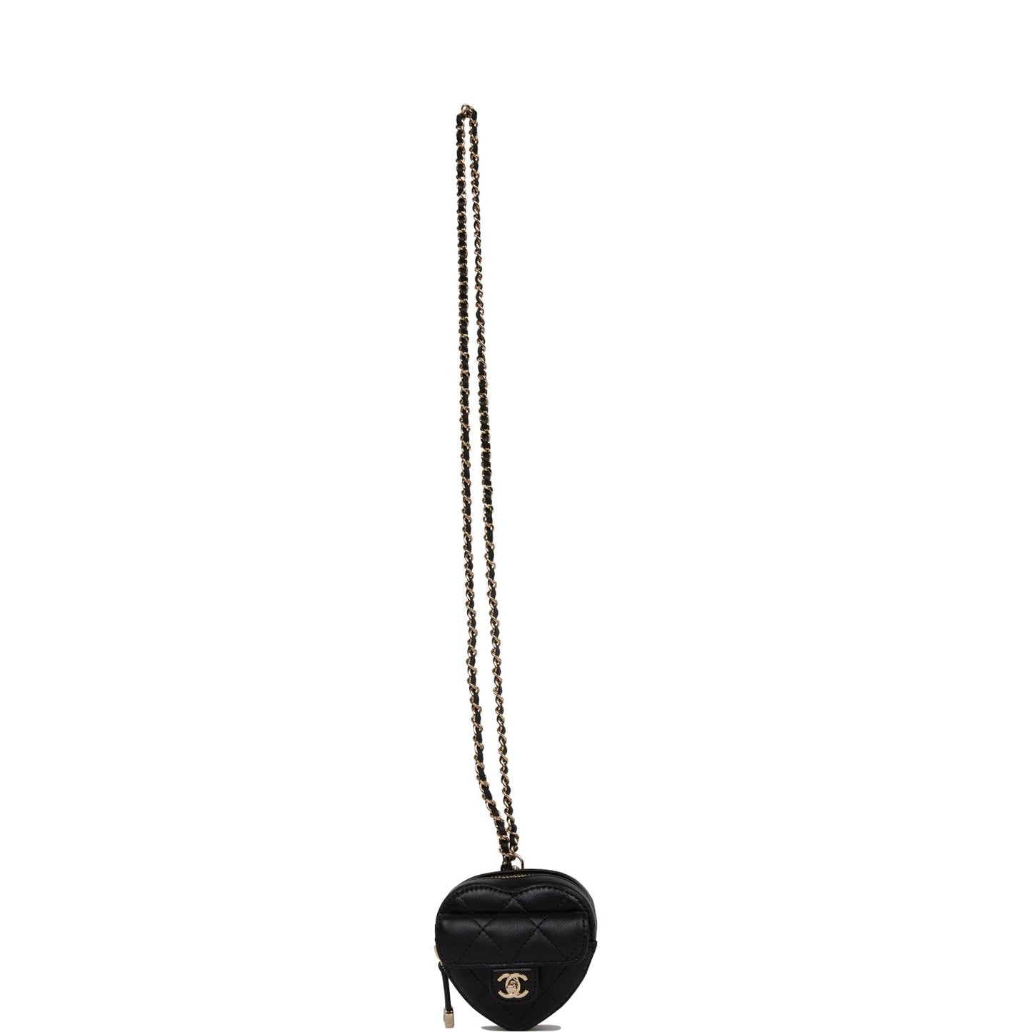 Chanel CC In Love Heart Necklace Bag Black Lambskin Light Gold Hardware