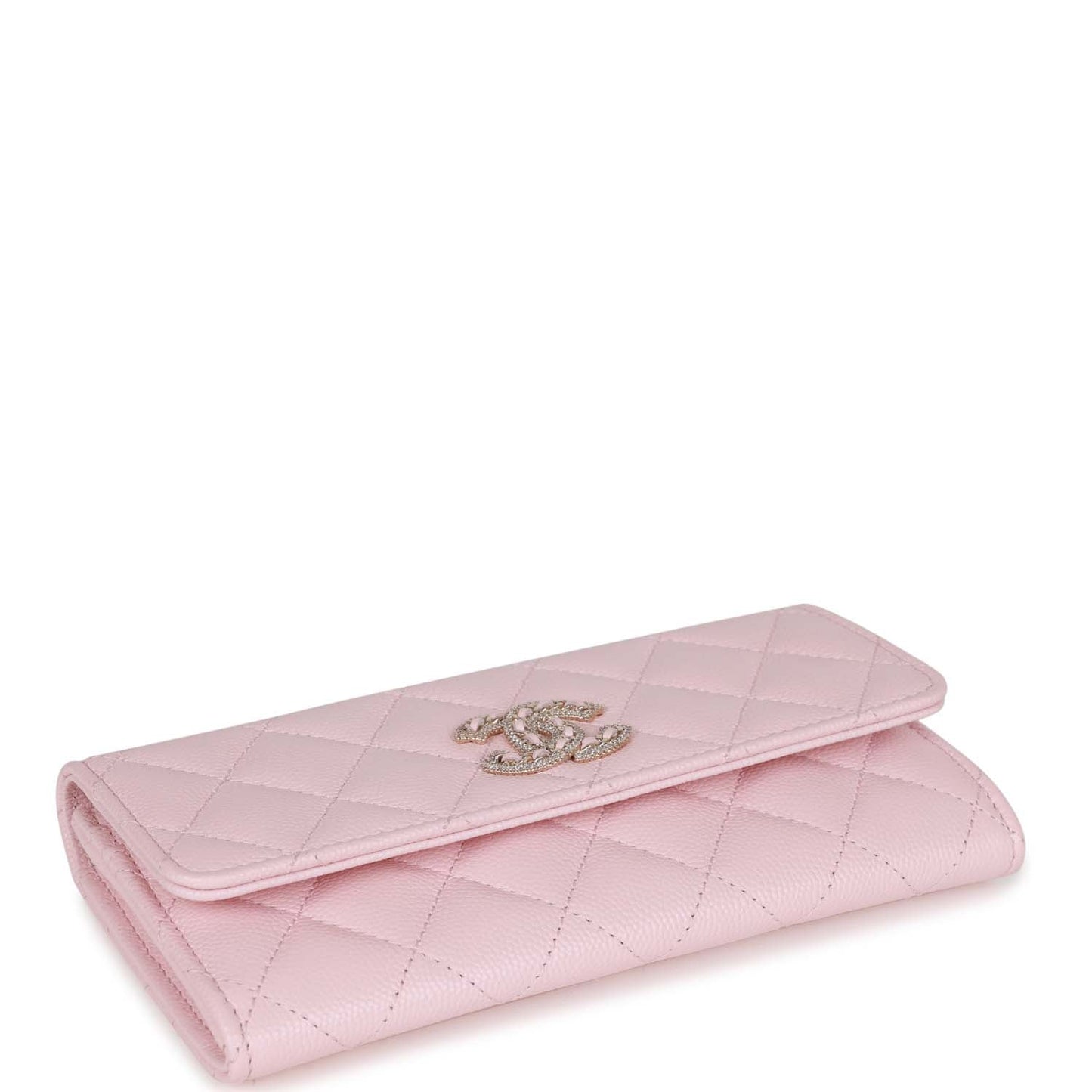 Chanel CC Large Gusset Flap Wallet Pink Caviar Light Gold Hardware