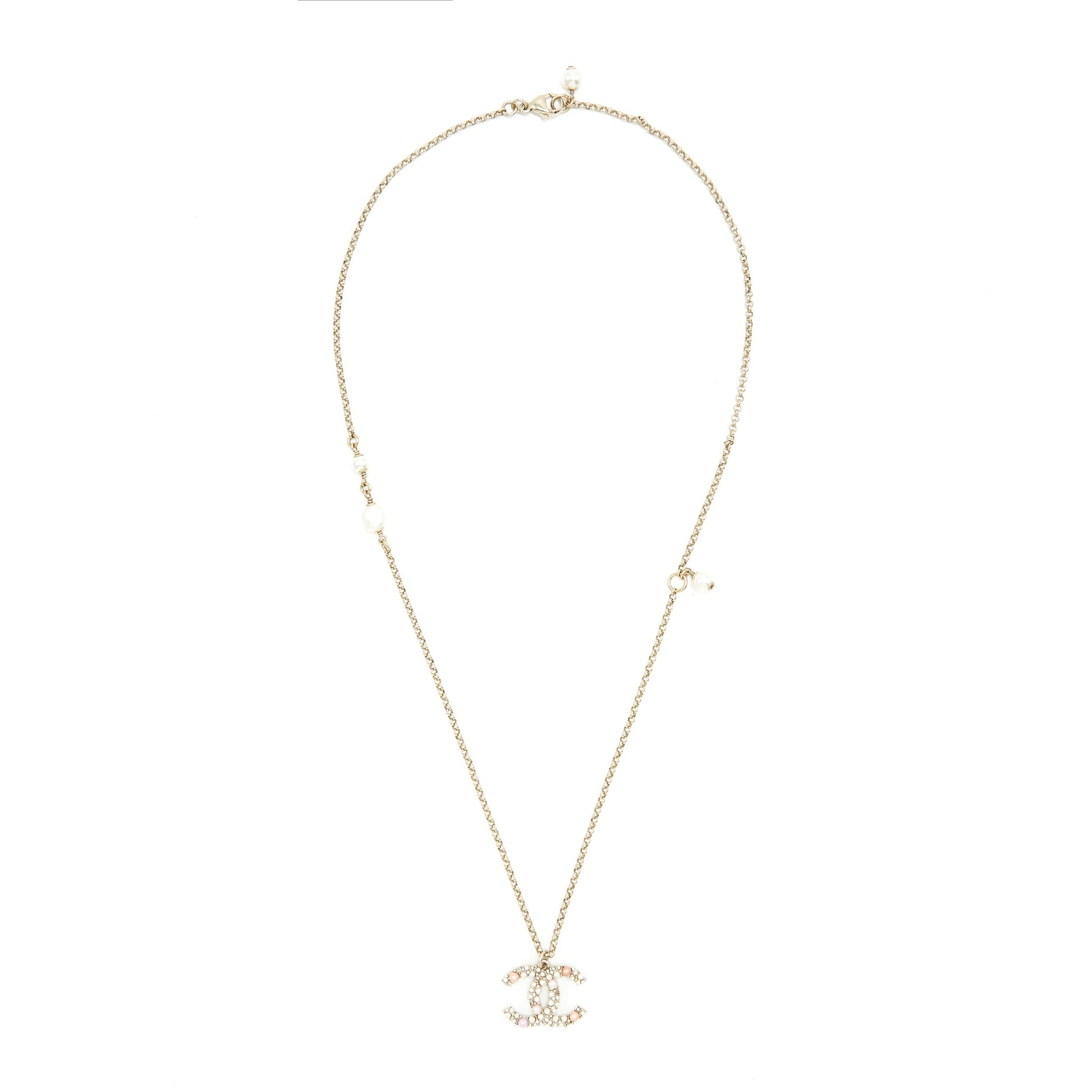 Chanel CC Logo And Pearl Necklace Light Gold Tone