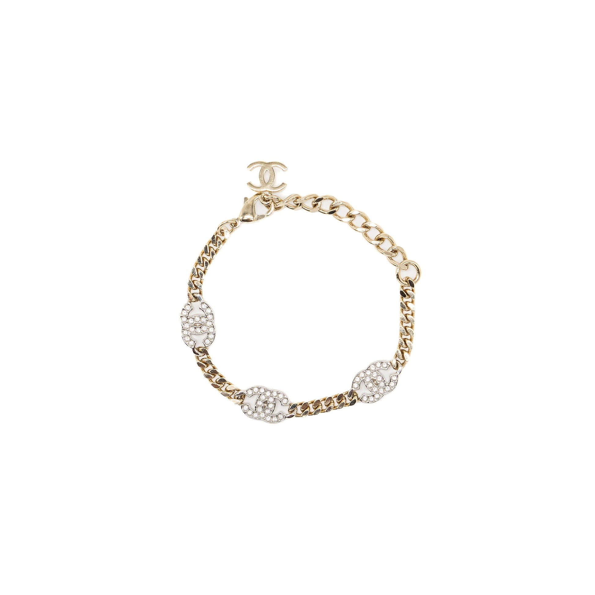 Chanel CC logo Bracelet Crystal Light Gold Tone