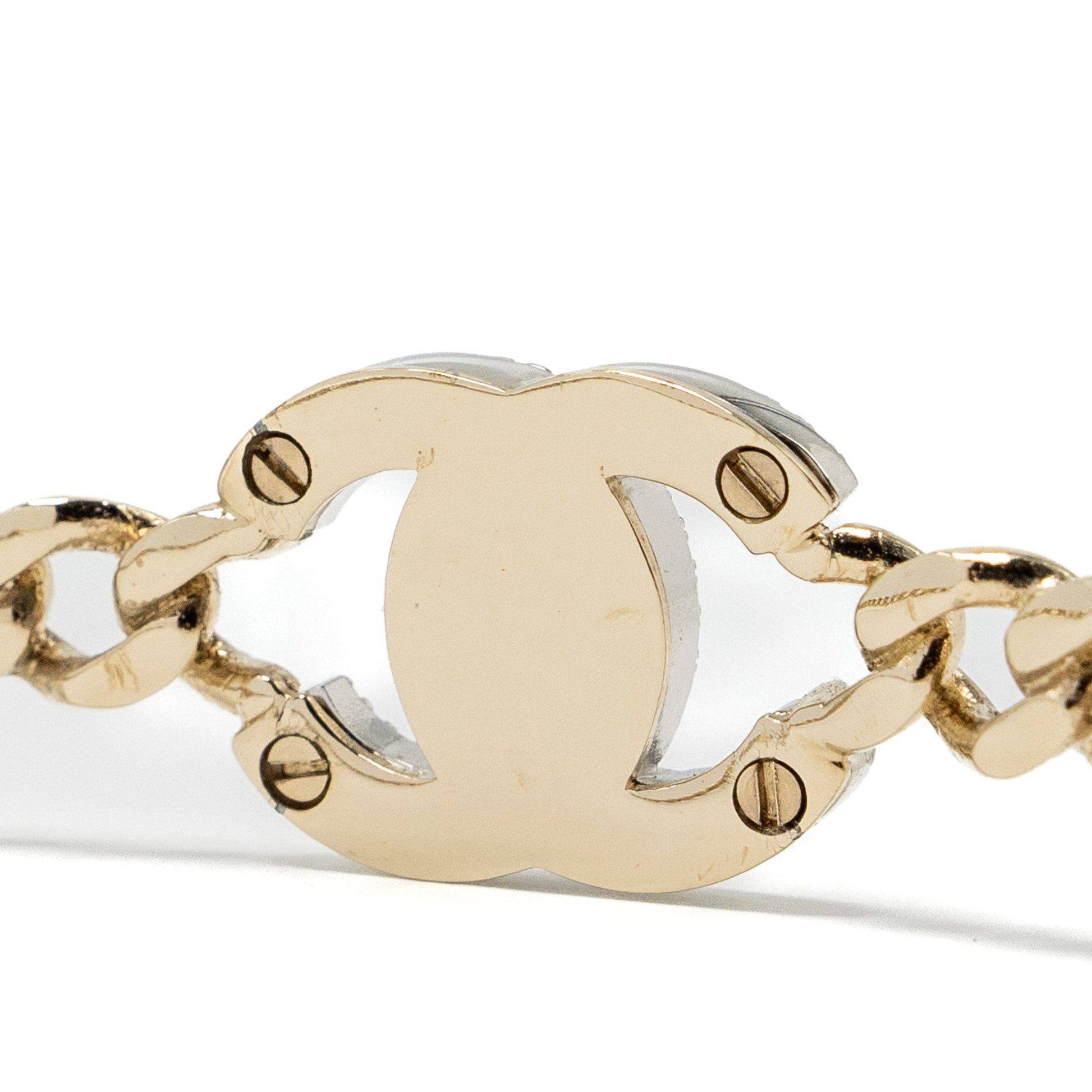 Chanel cc logo chain Chocker /necklace crystal light gold tone