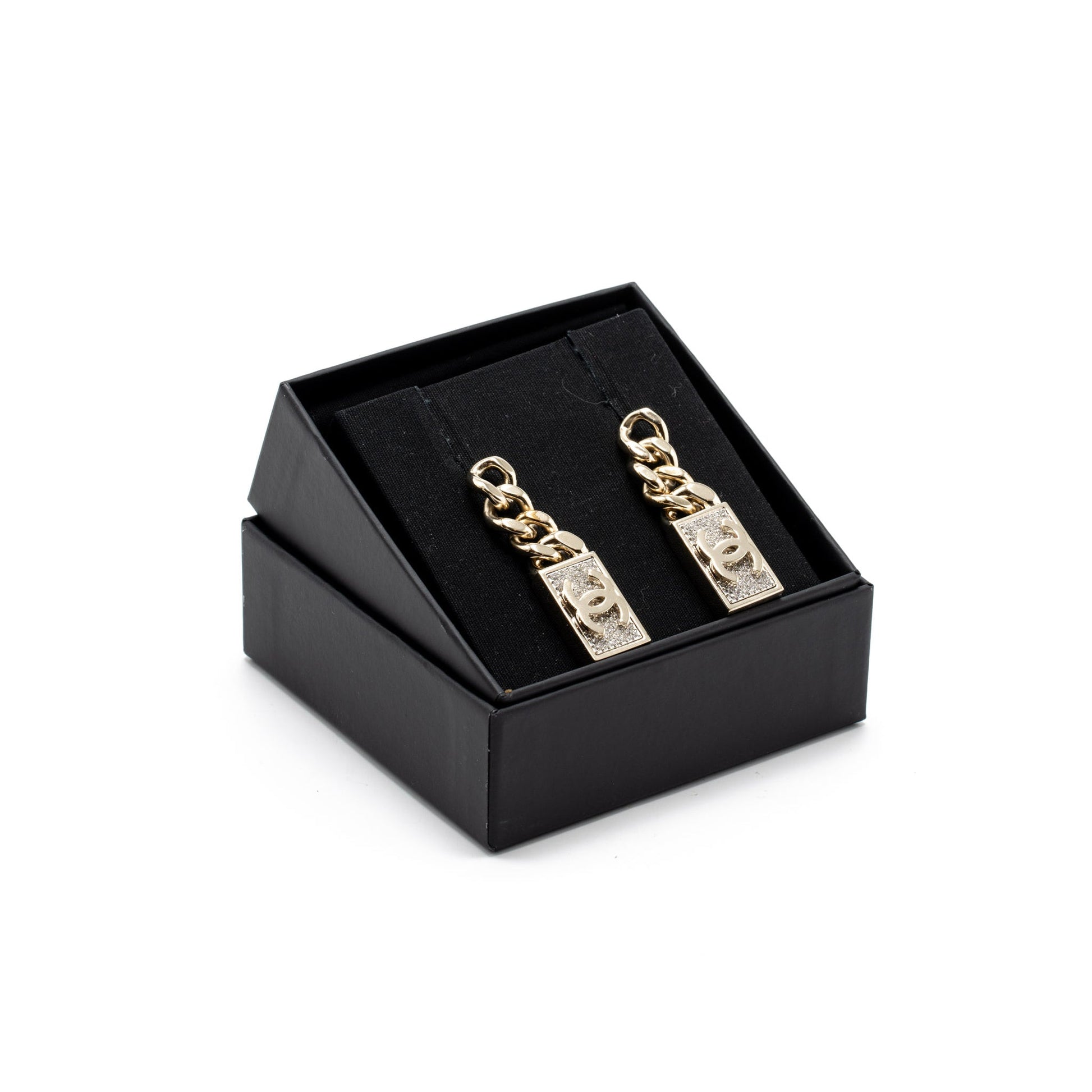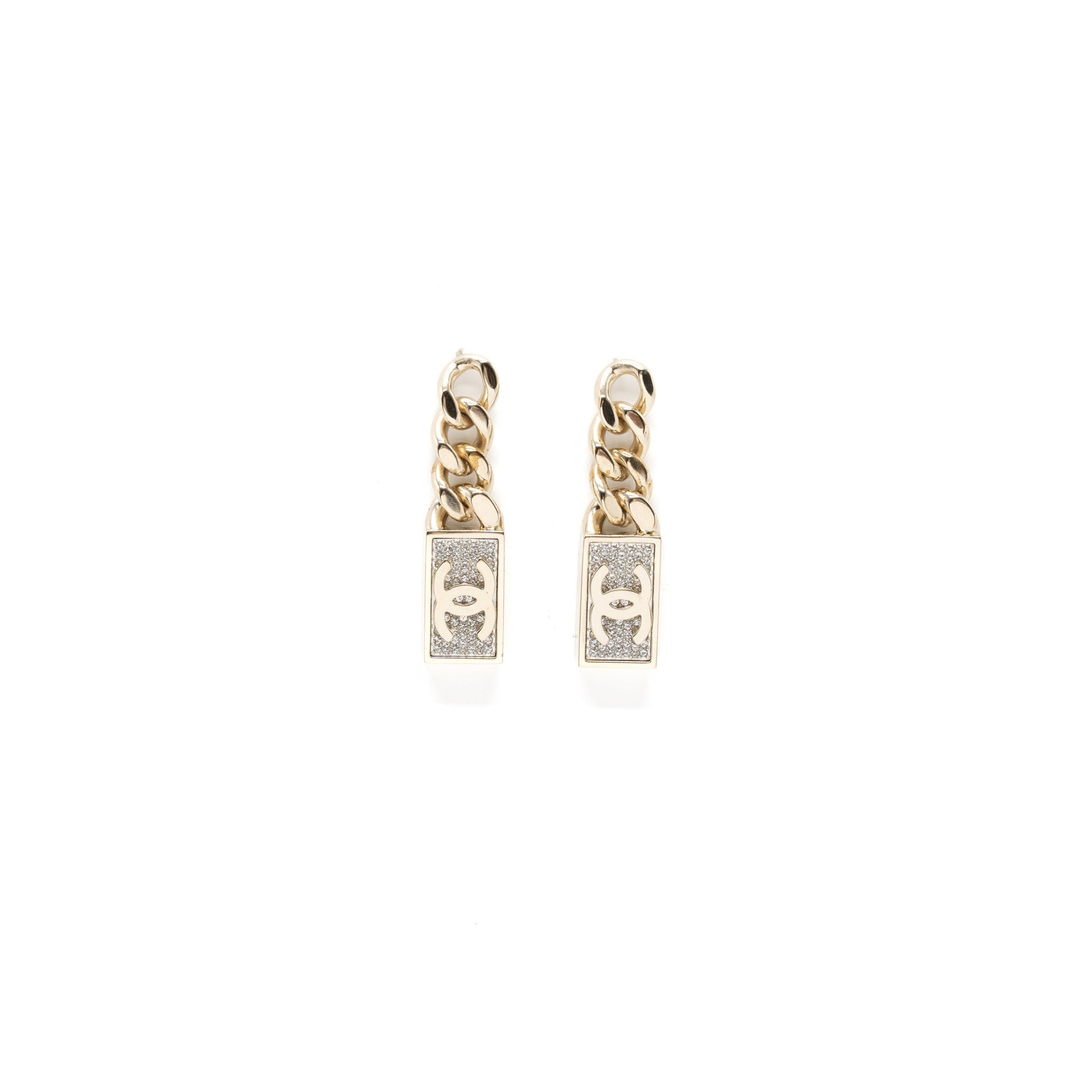 Chanel CC Logo Drop Earrings Crystal Gold Tone