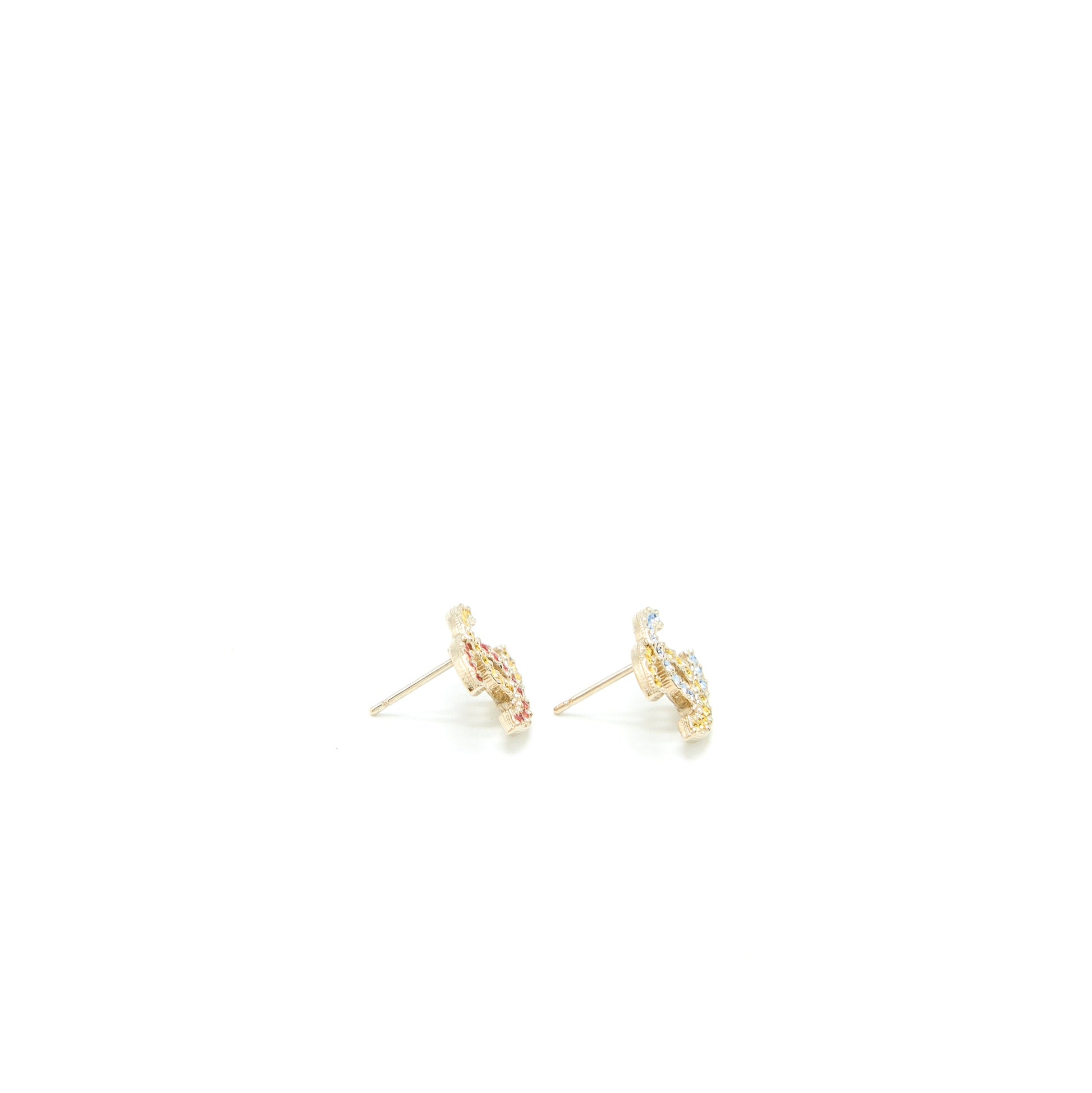 Chanel CC Logo Earrings Crystal Multicolour Light Gold Tone