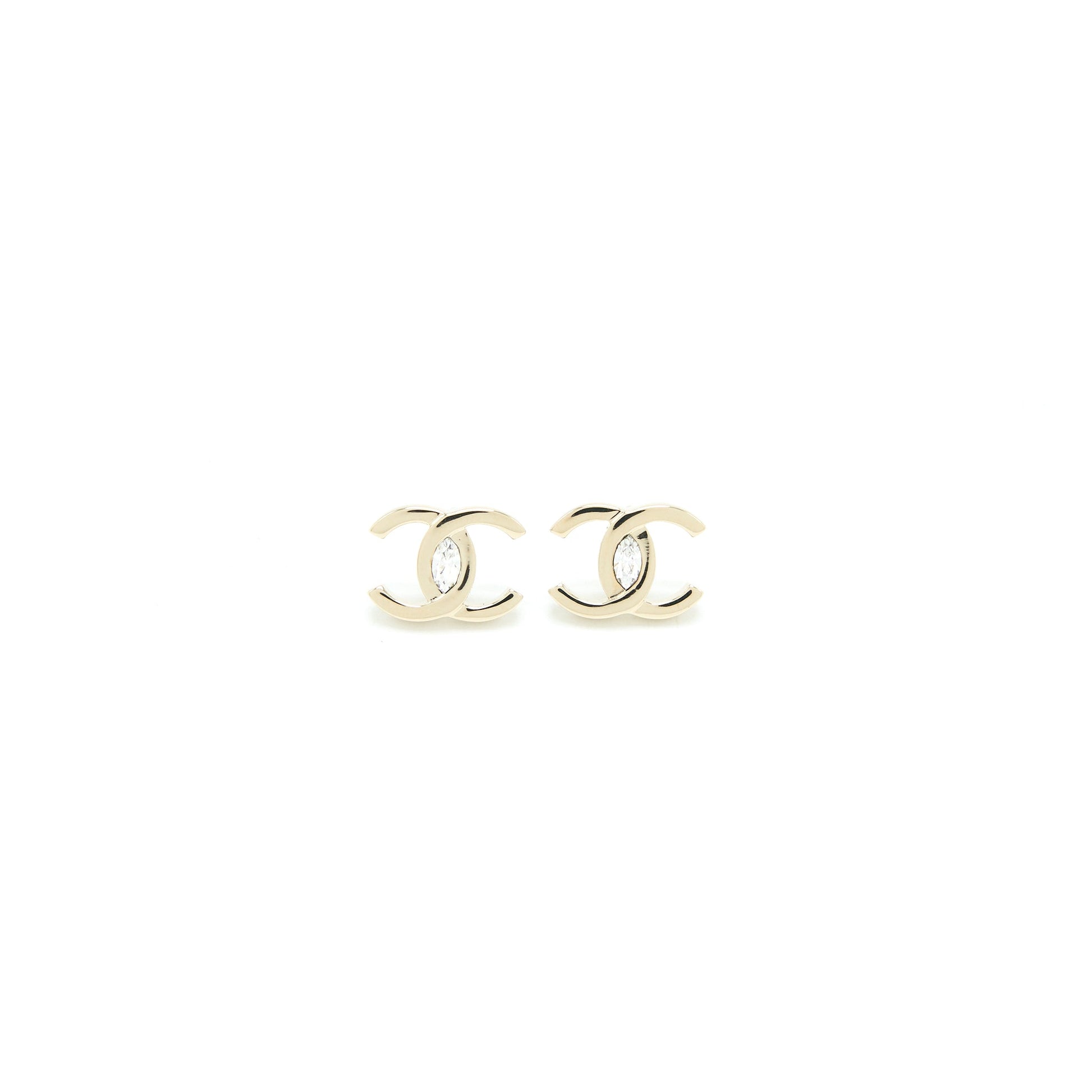 Chanel CC Logo Earrings Crystal Light Gold Tone