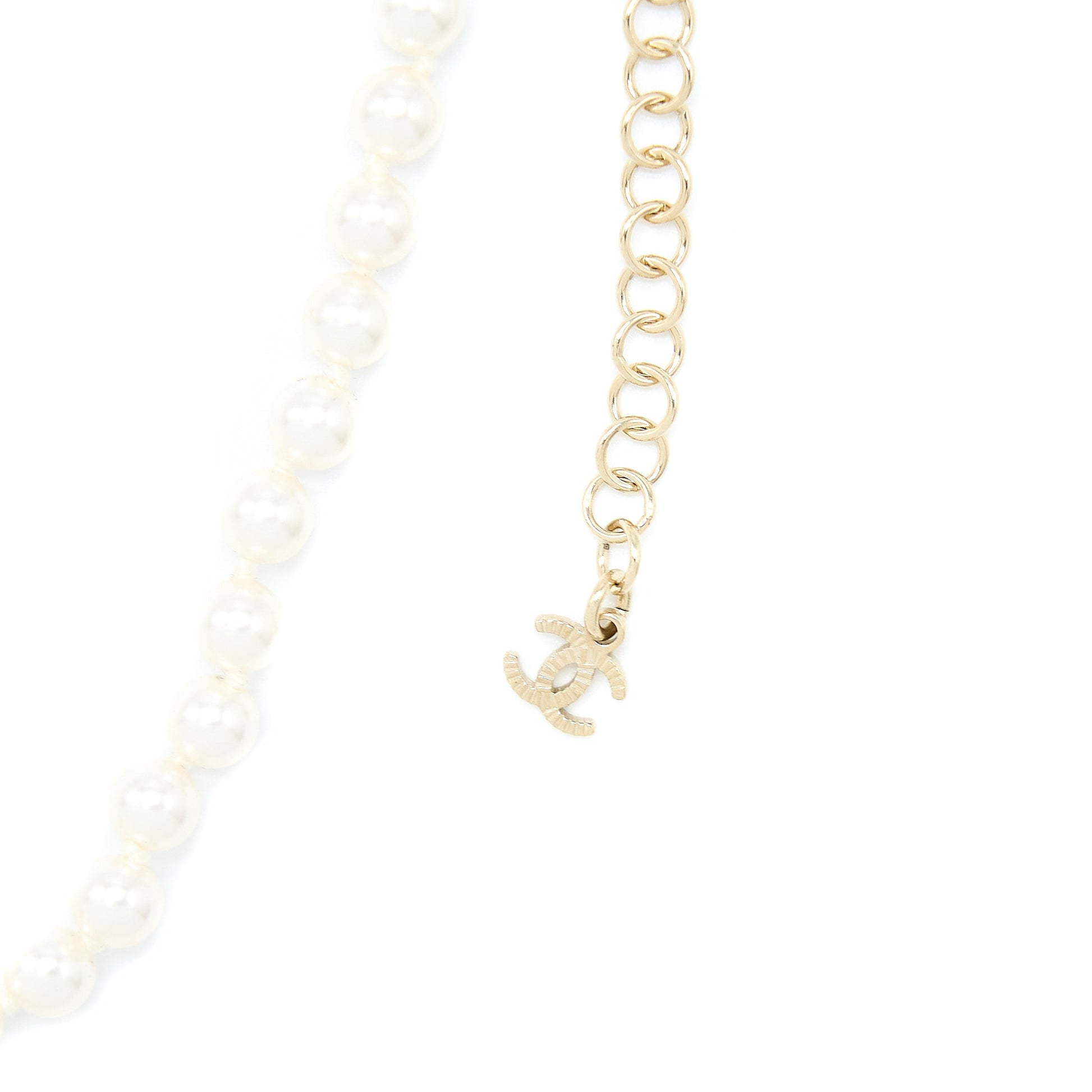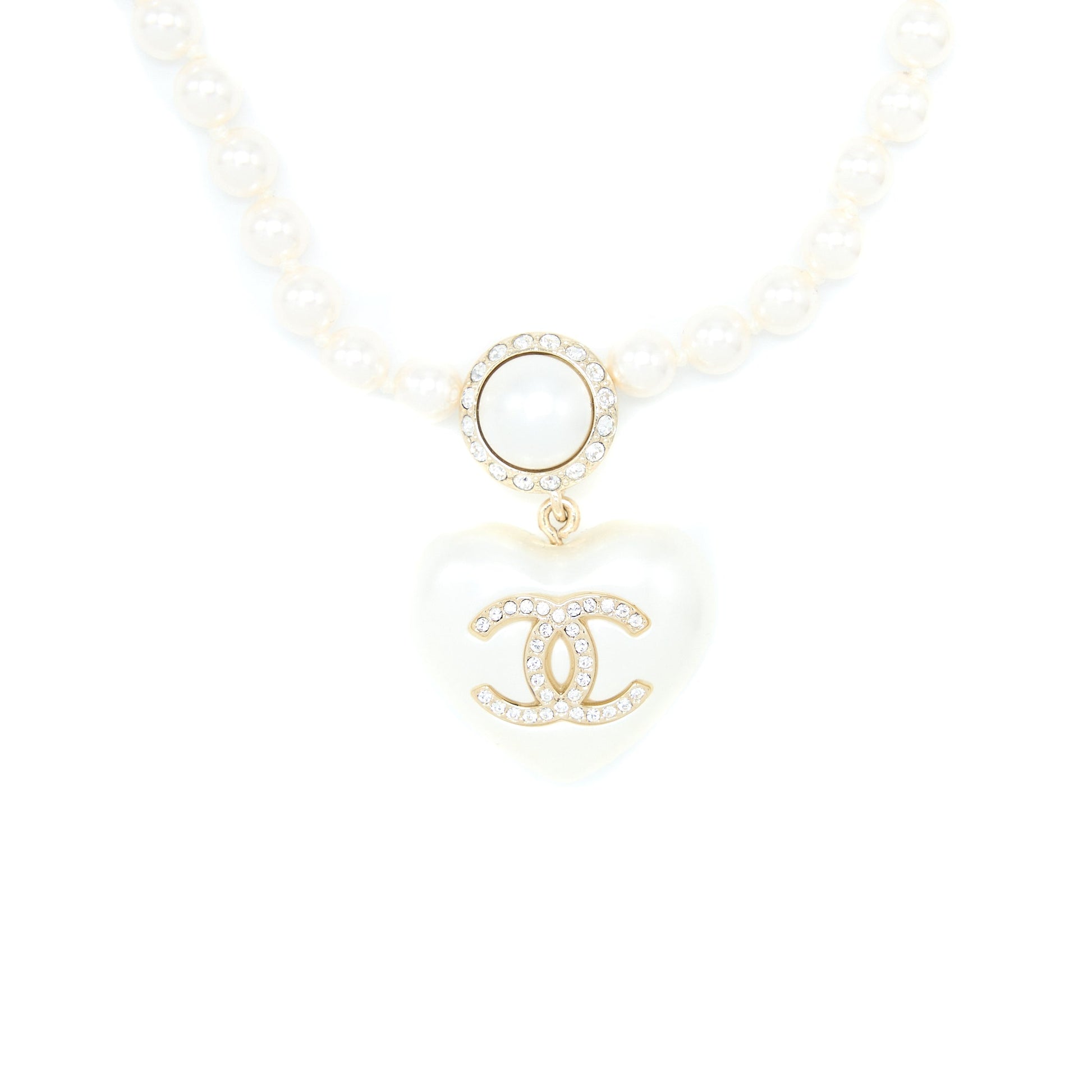 Chanel CC Logo Heart Necklace Pearl/Crystal Light Gold Tone
