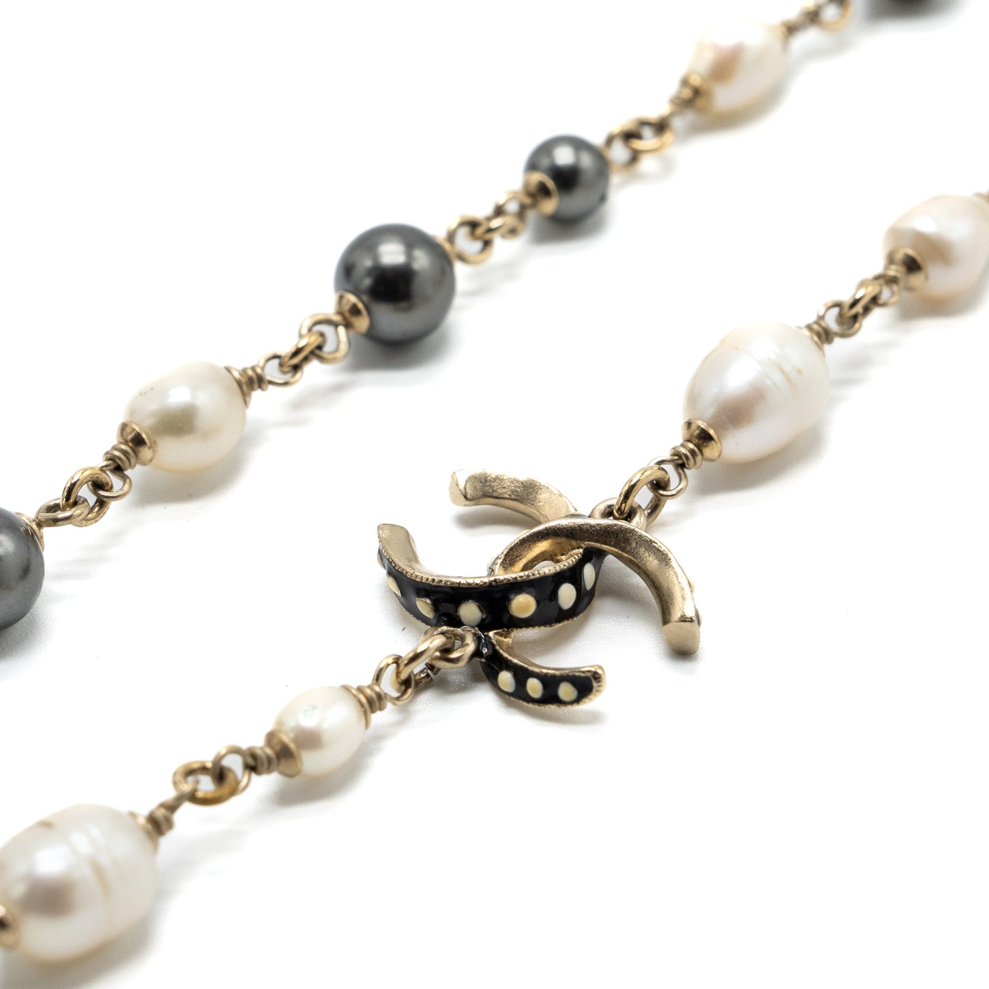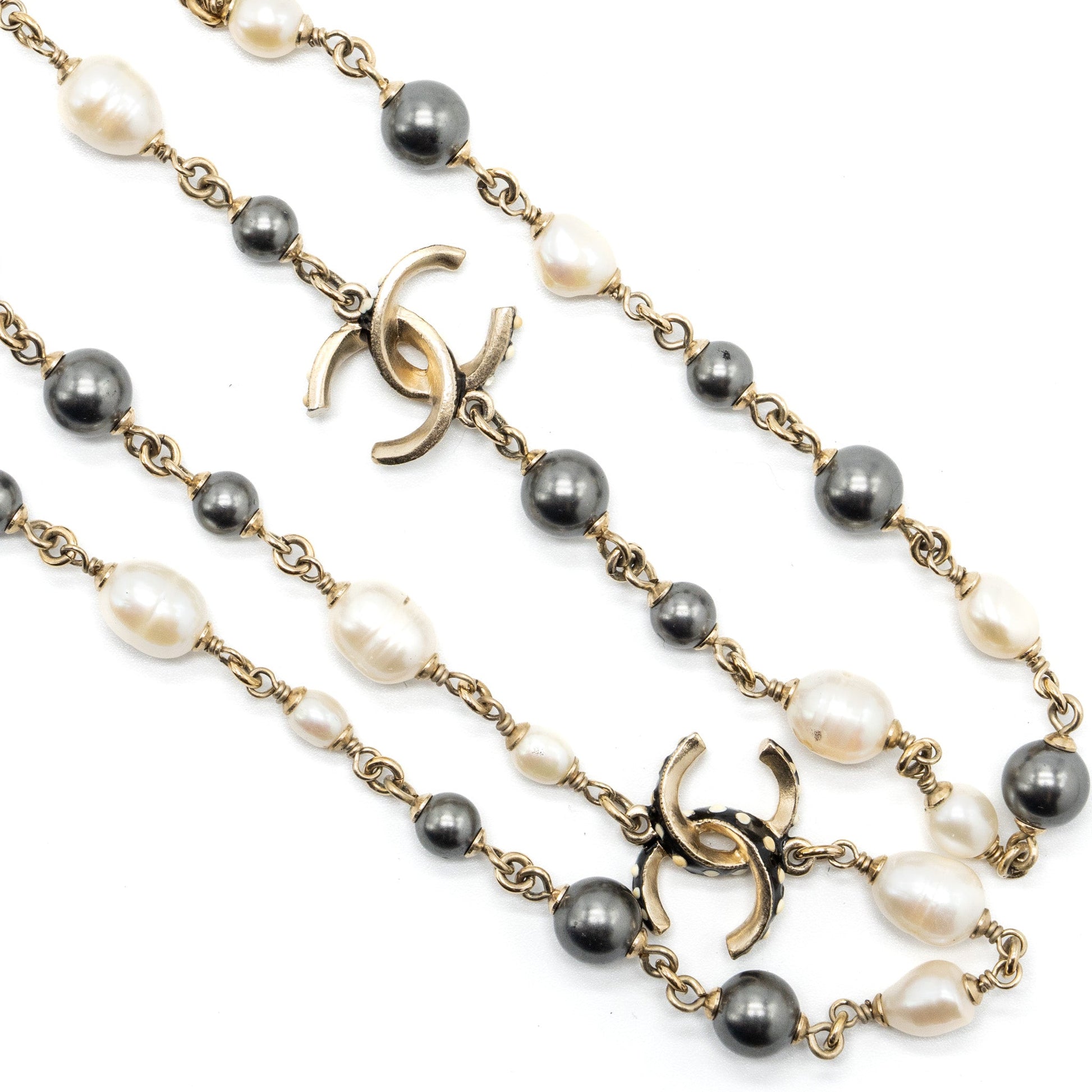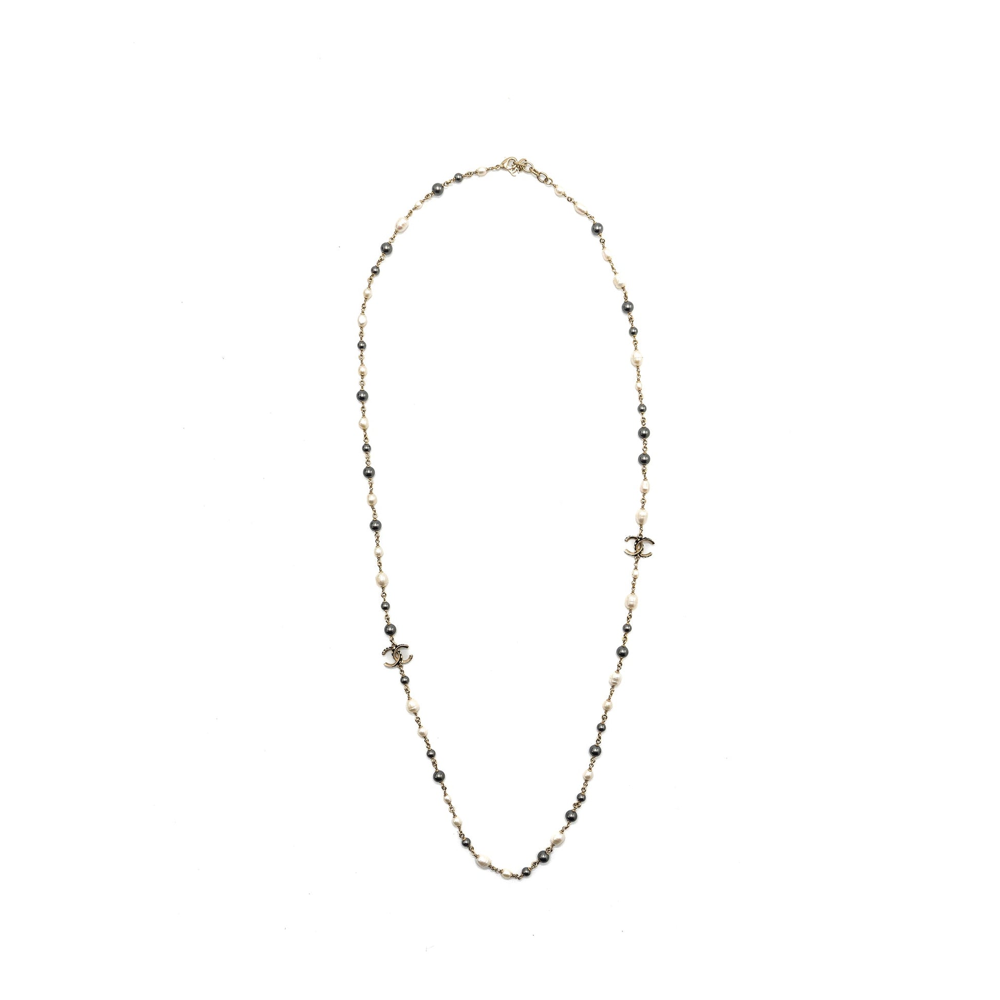 Chanel CC Logo Long Necklace with pearl light gold tone