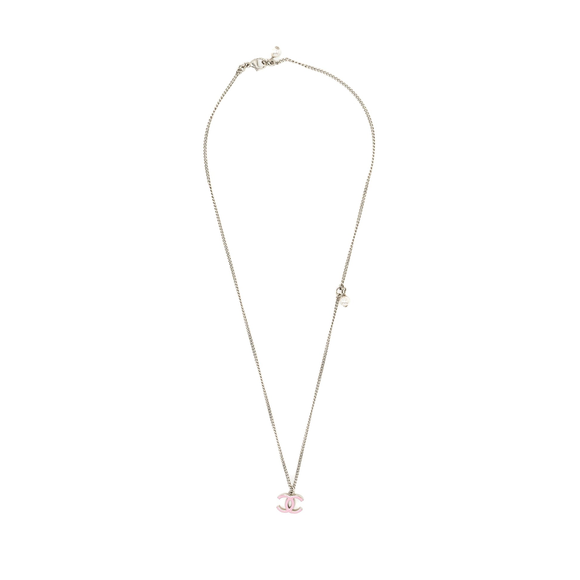 Chanel CC Logo Necklace Pink/Silver Tone