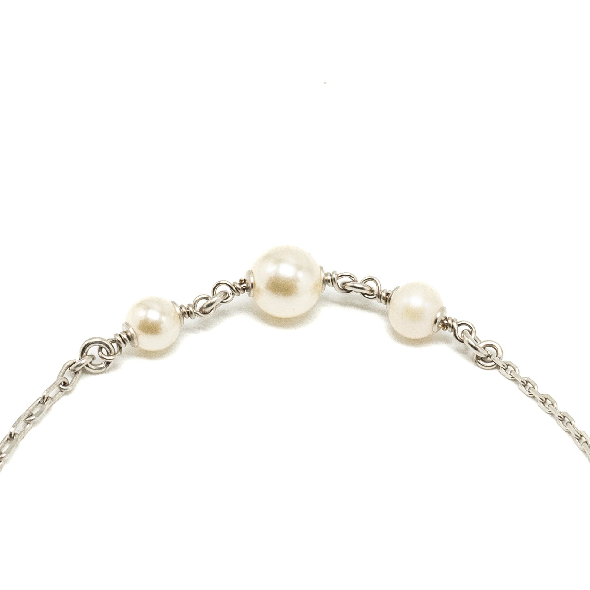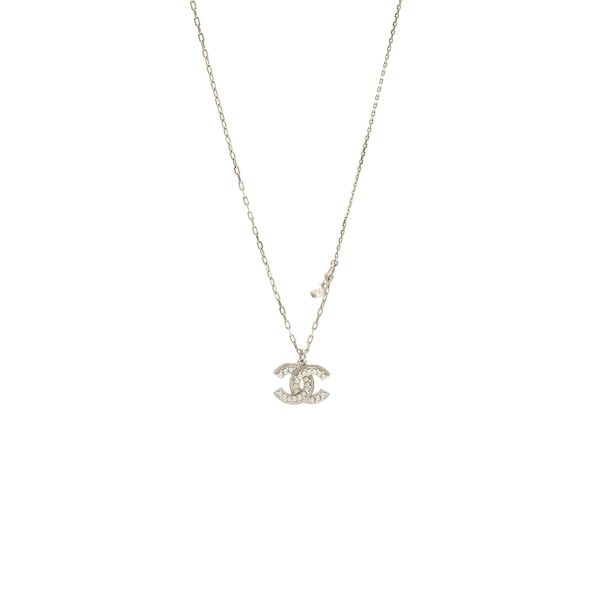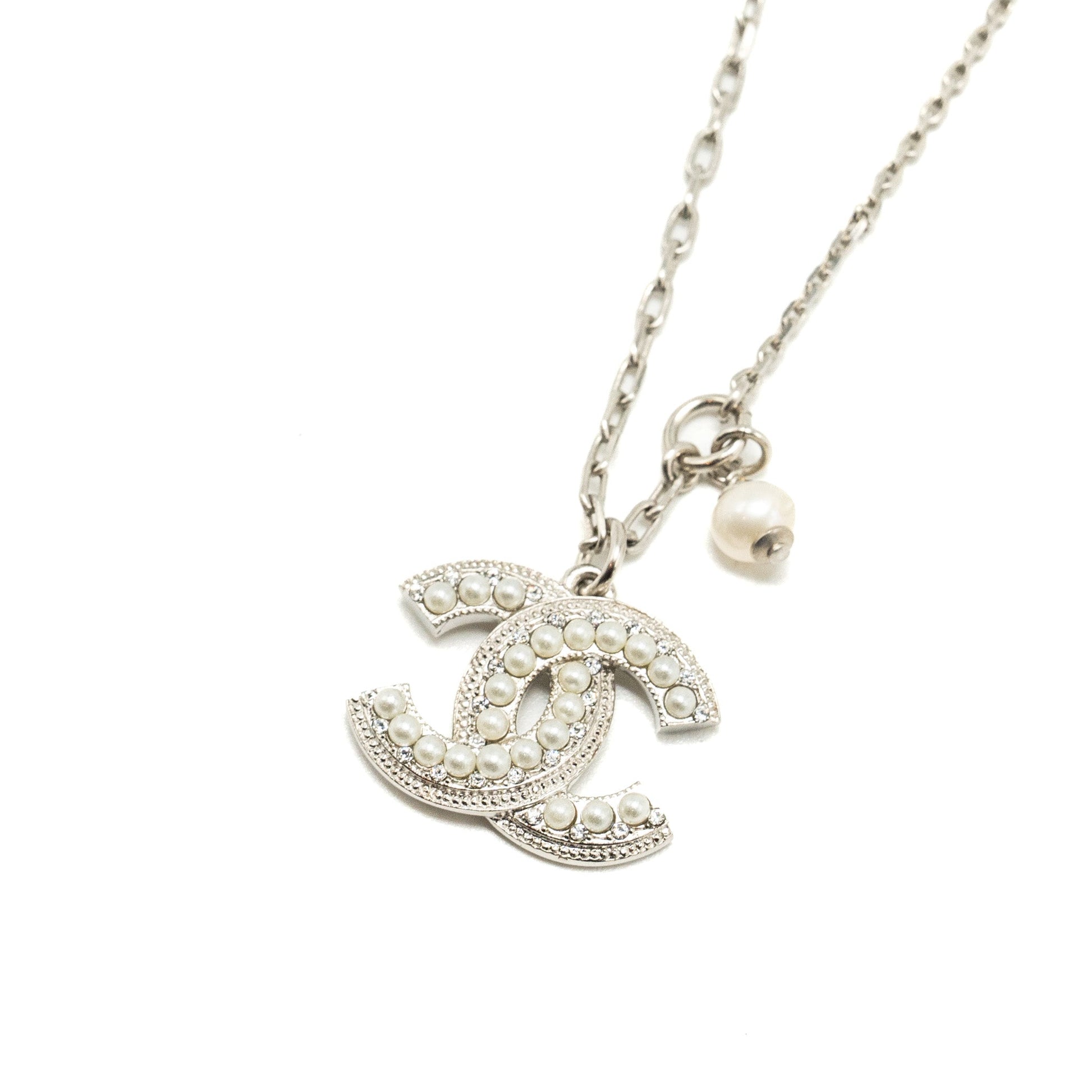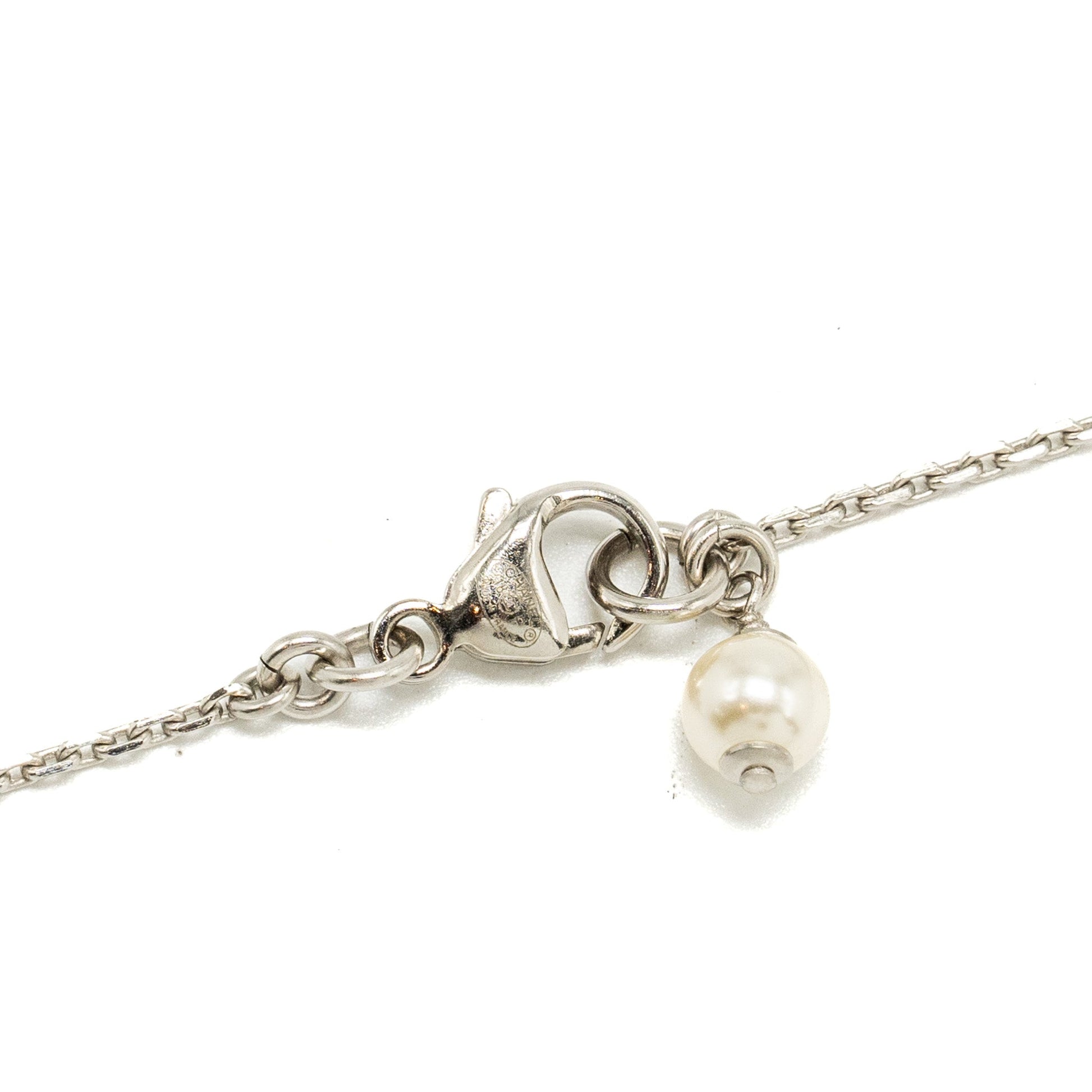 Chanel CC Logo Necklace with Pearls Silver Tone