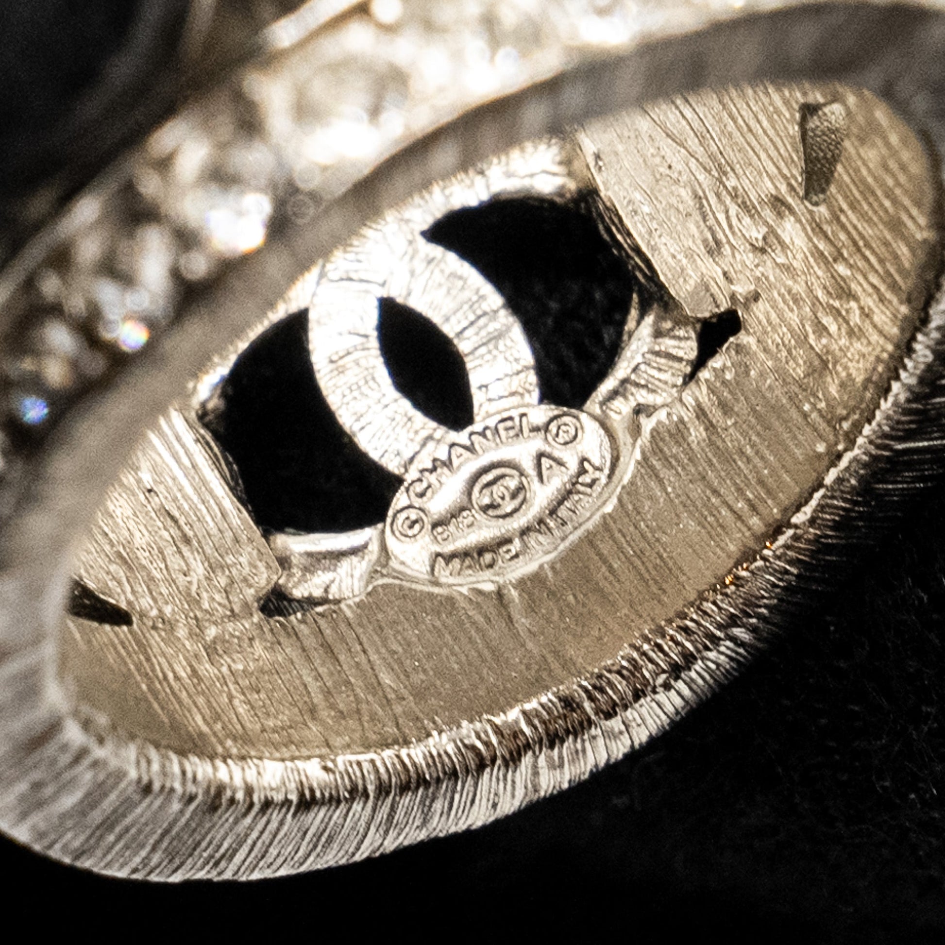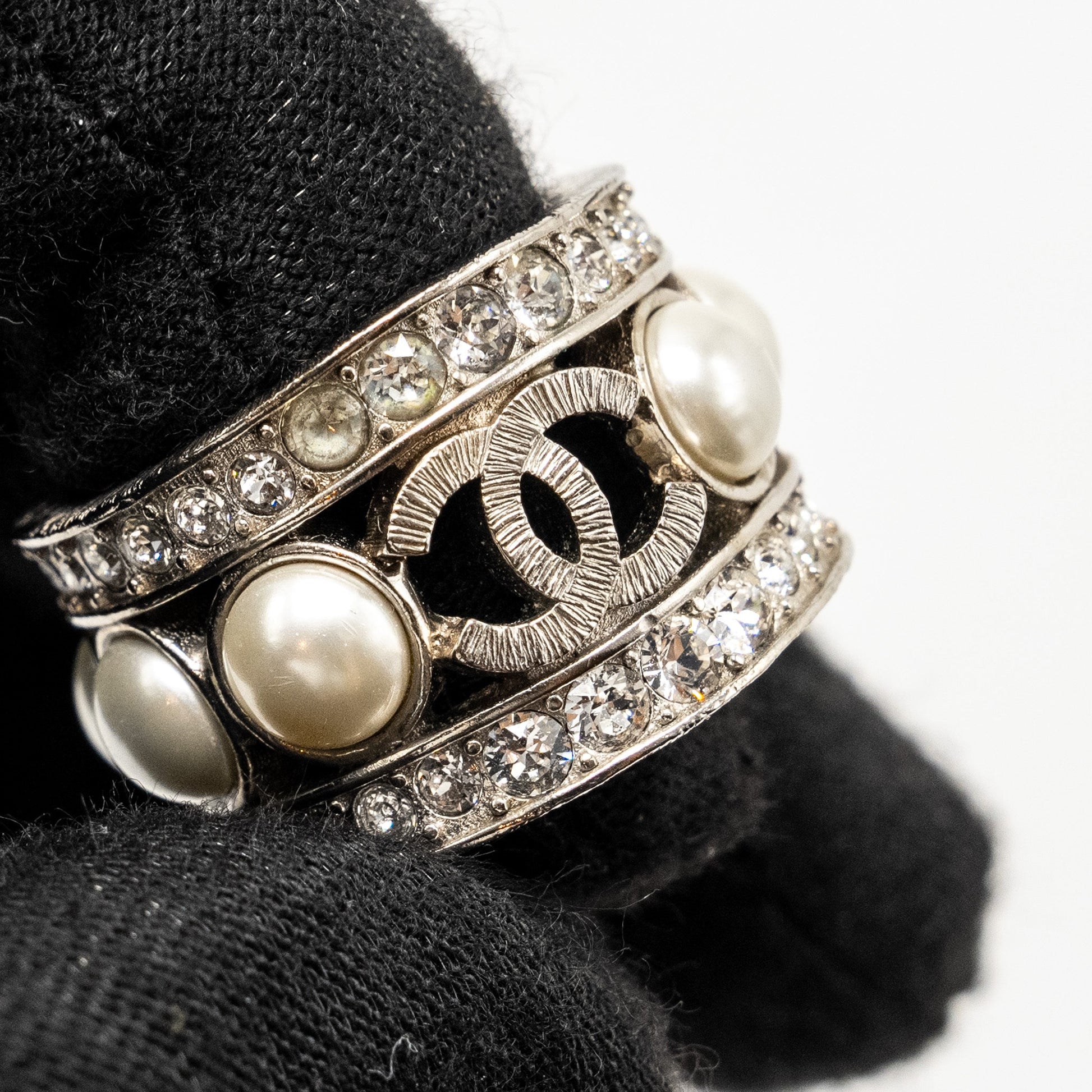Chanel CC Logo Pearl/ Crystal Ring Silver Tone