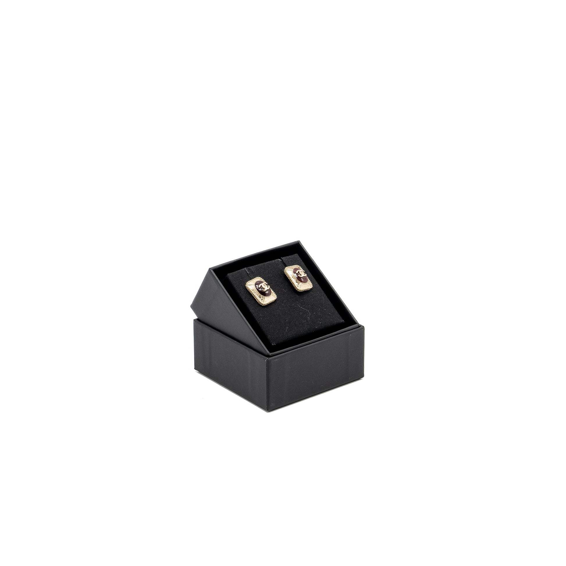 Chanel CC Logo Square Earrings Red/Gold Tone