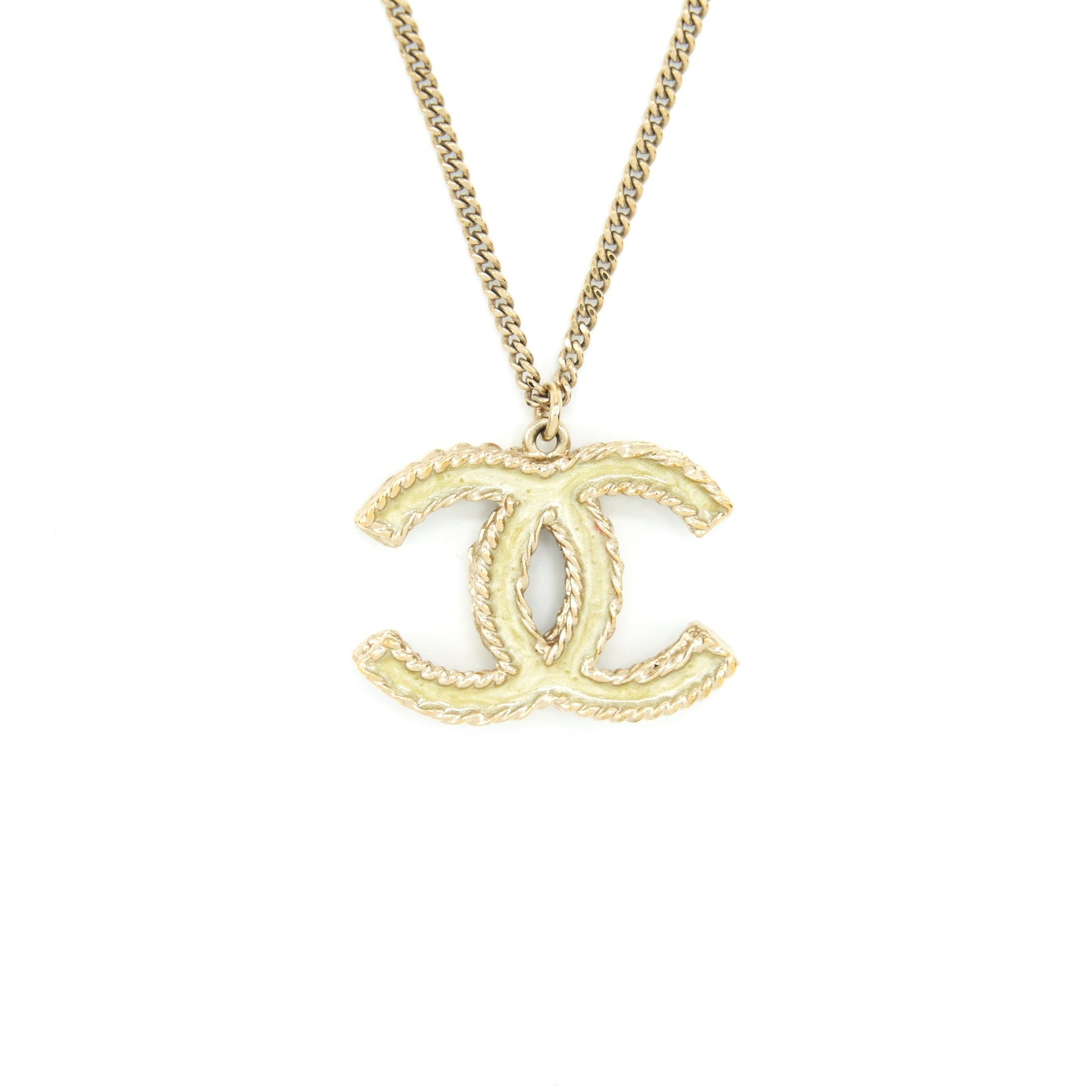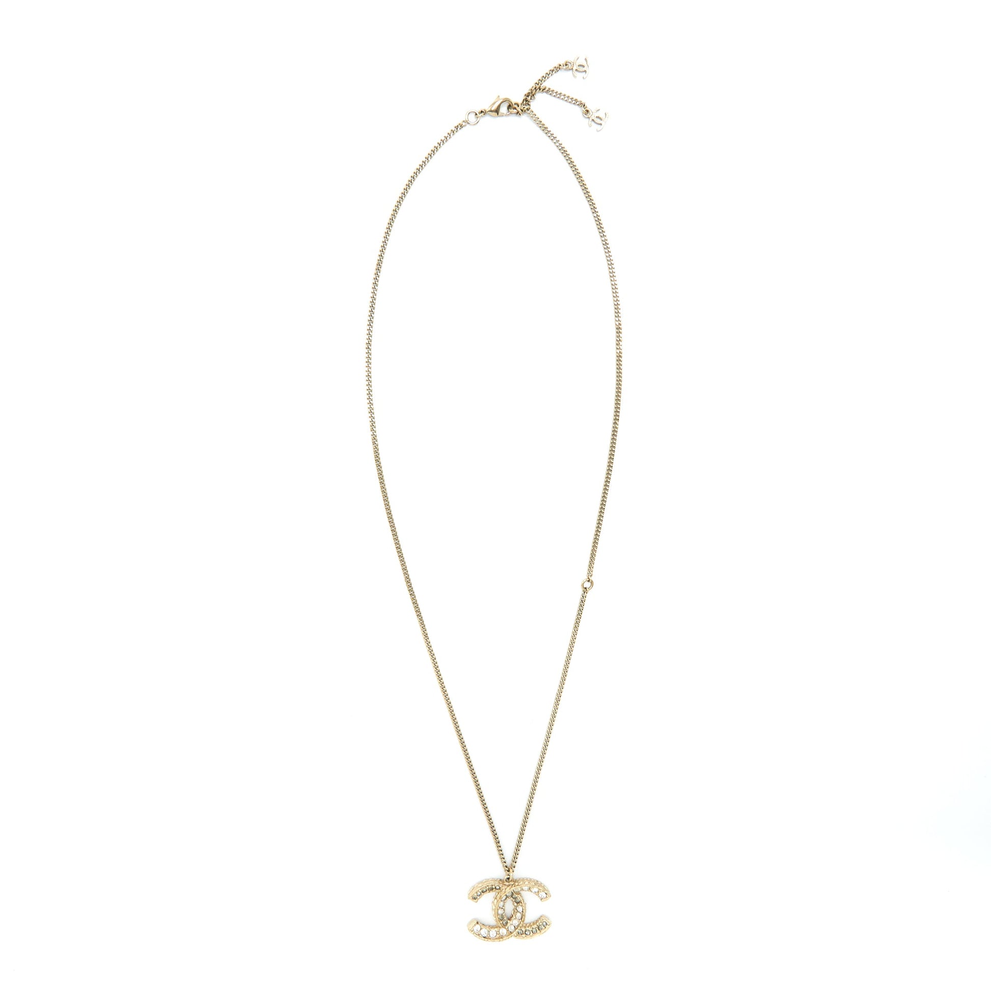 Chanel CC Logo With Crystal Necklace Light Gold Tone