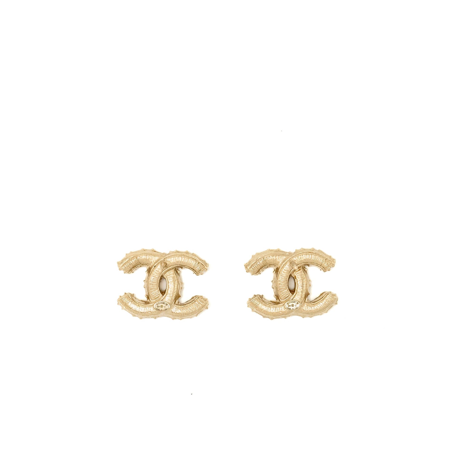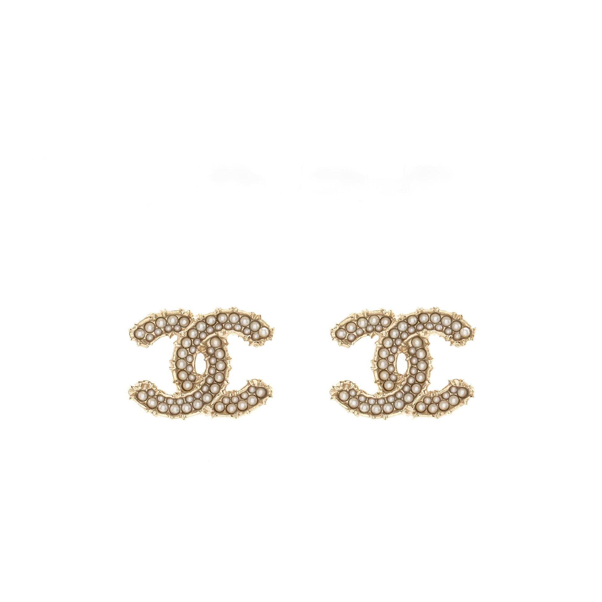 Chanel CC logo with mini pearl deco earrings light gold tone