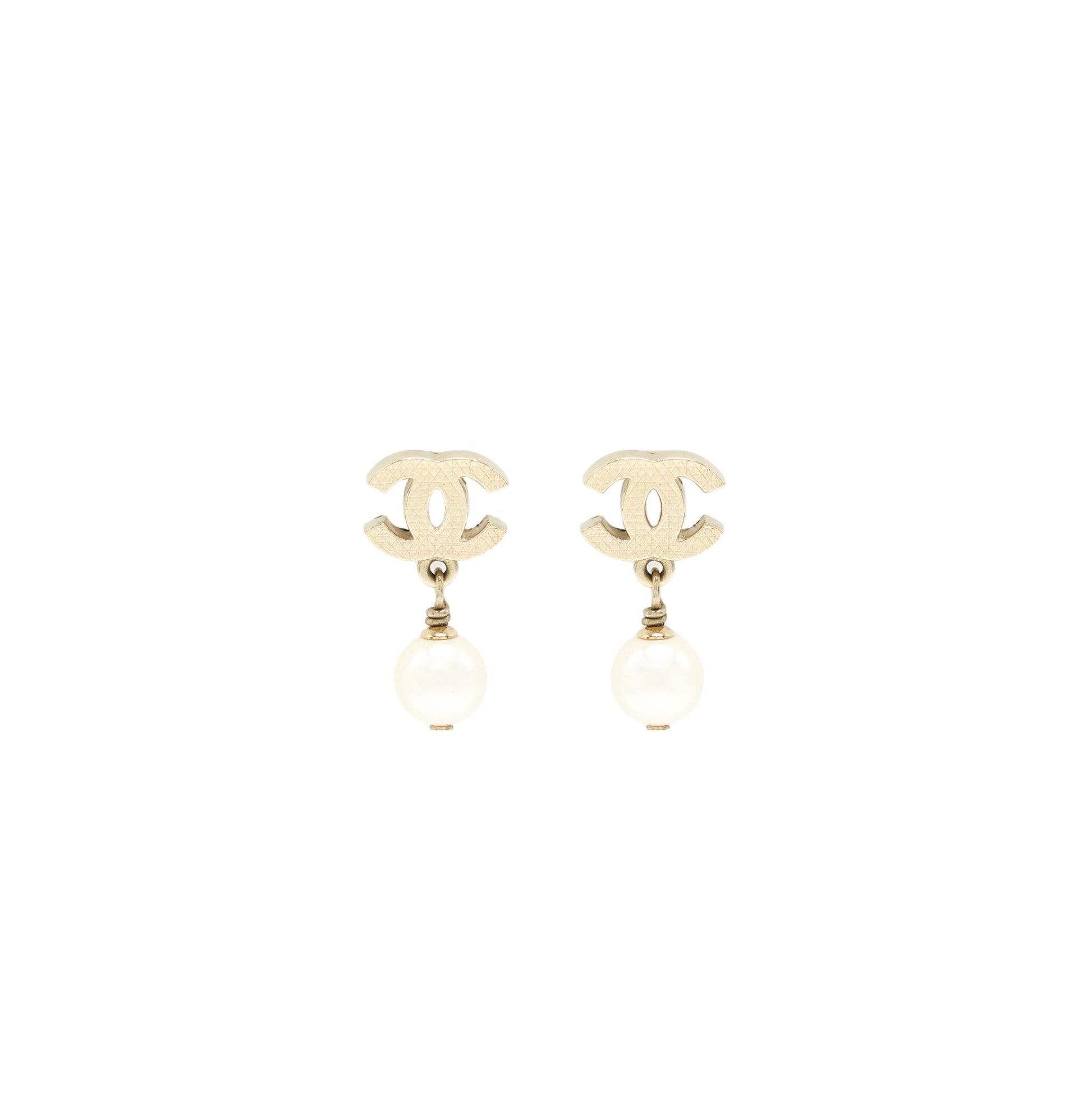 Material: Light Gold-Finish Metal with White Resin Pearls