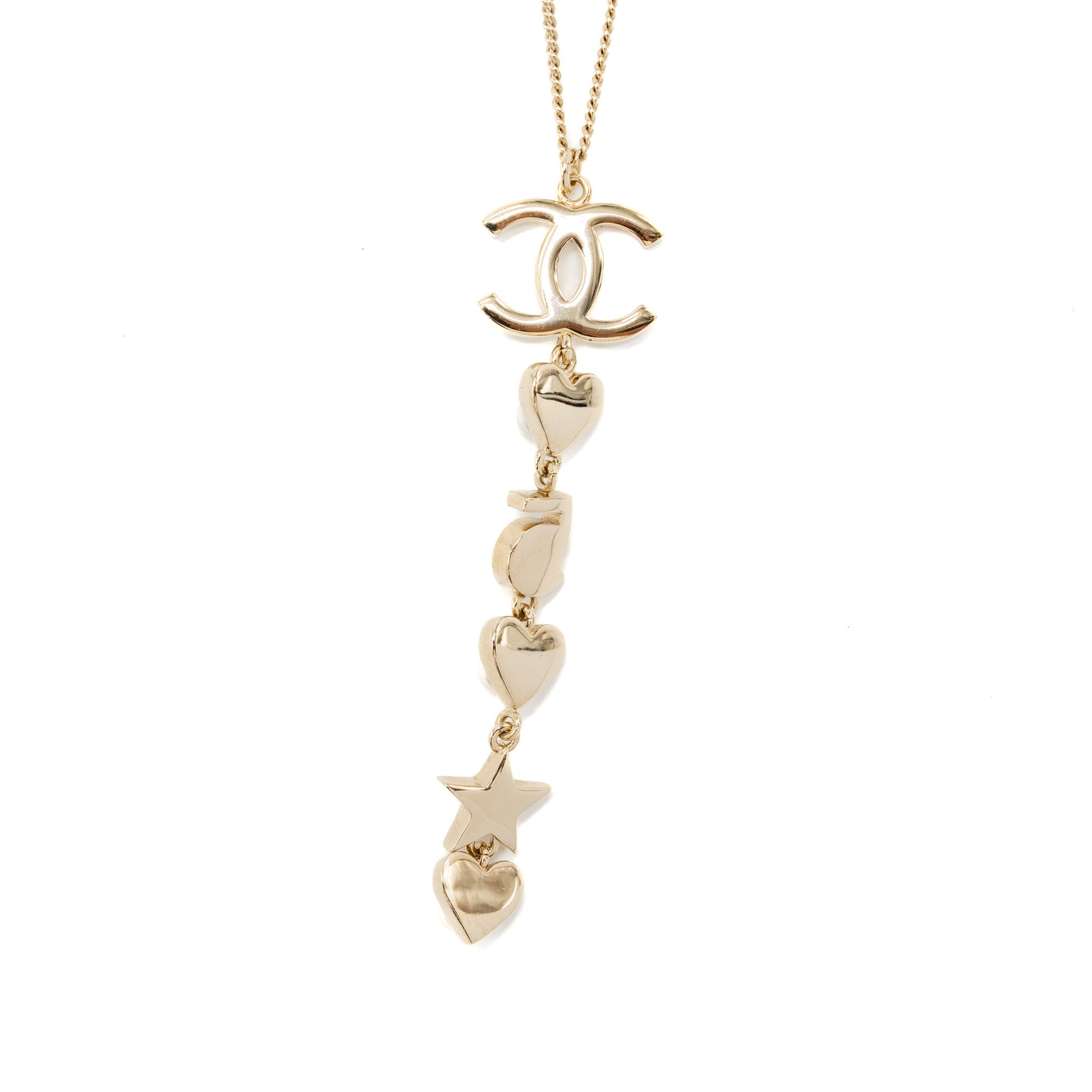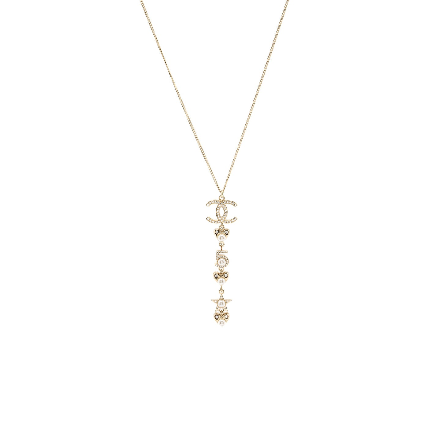 Chanel CC logo with pearl / no 5/ star drop necklace crystal gold tone