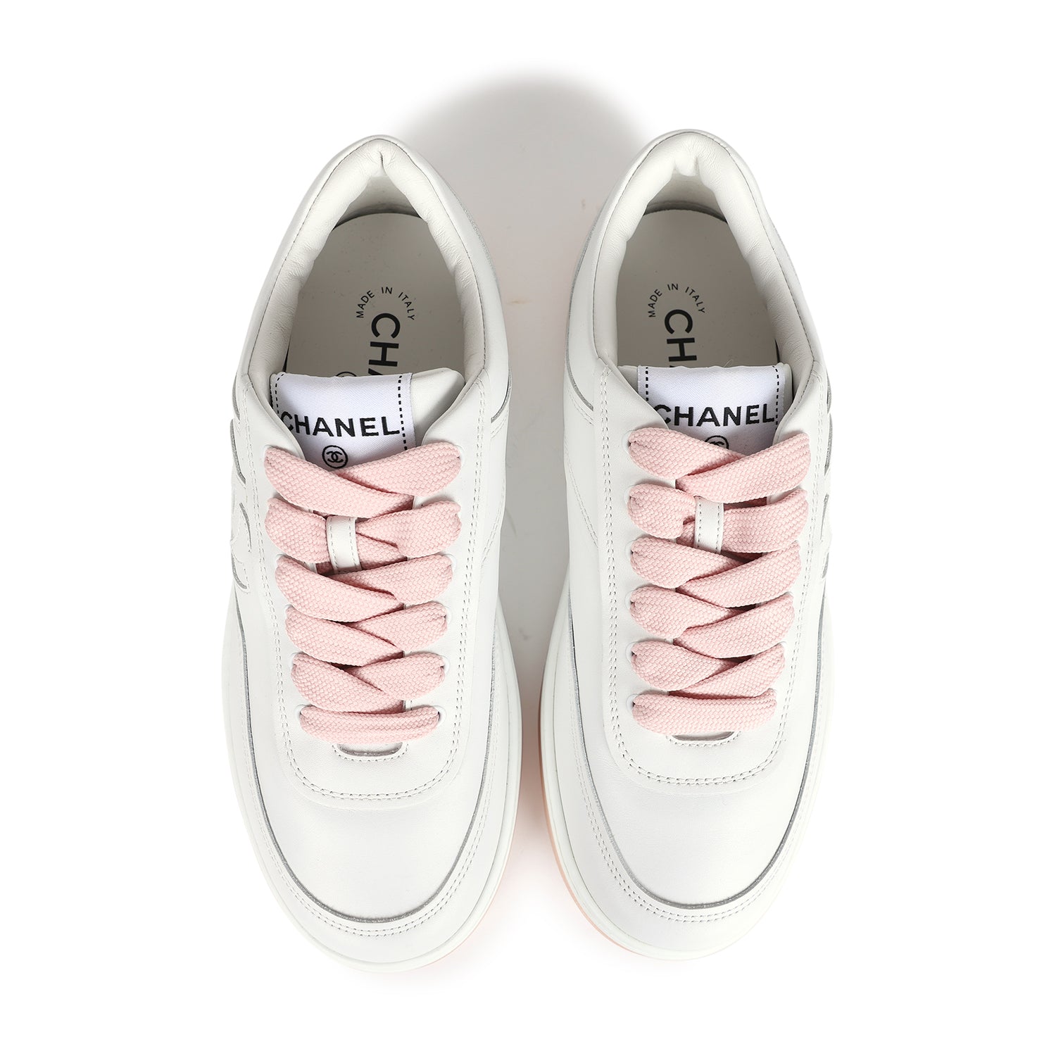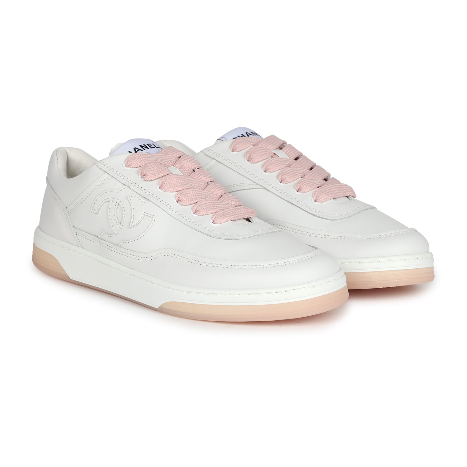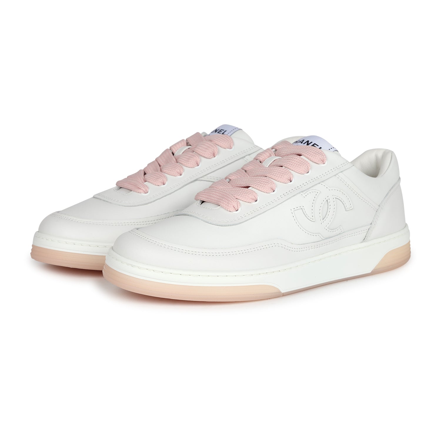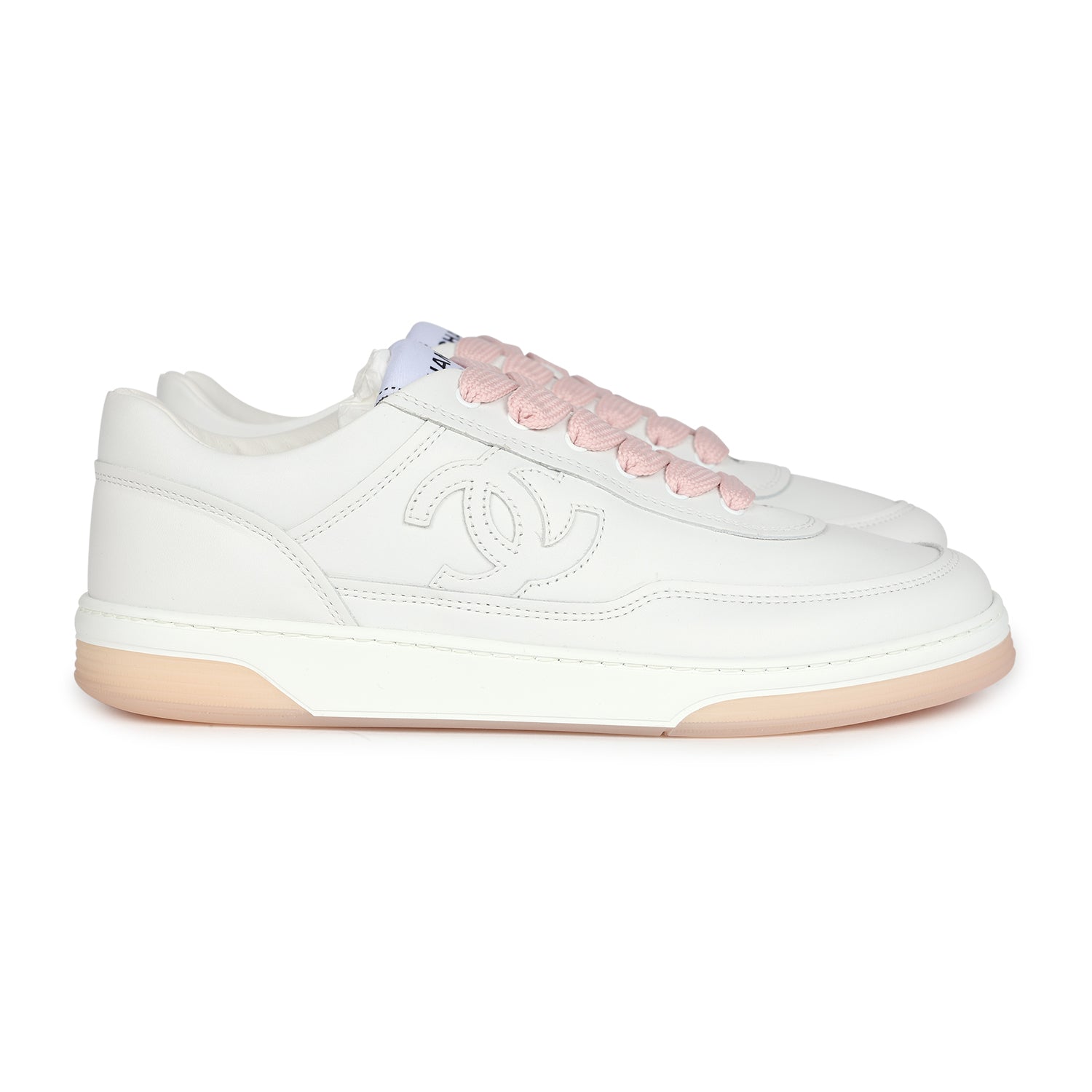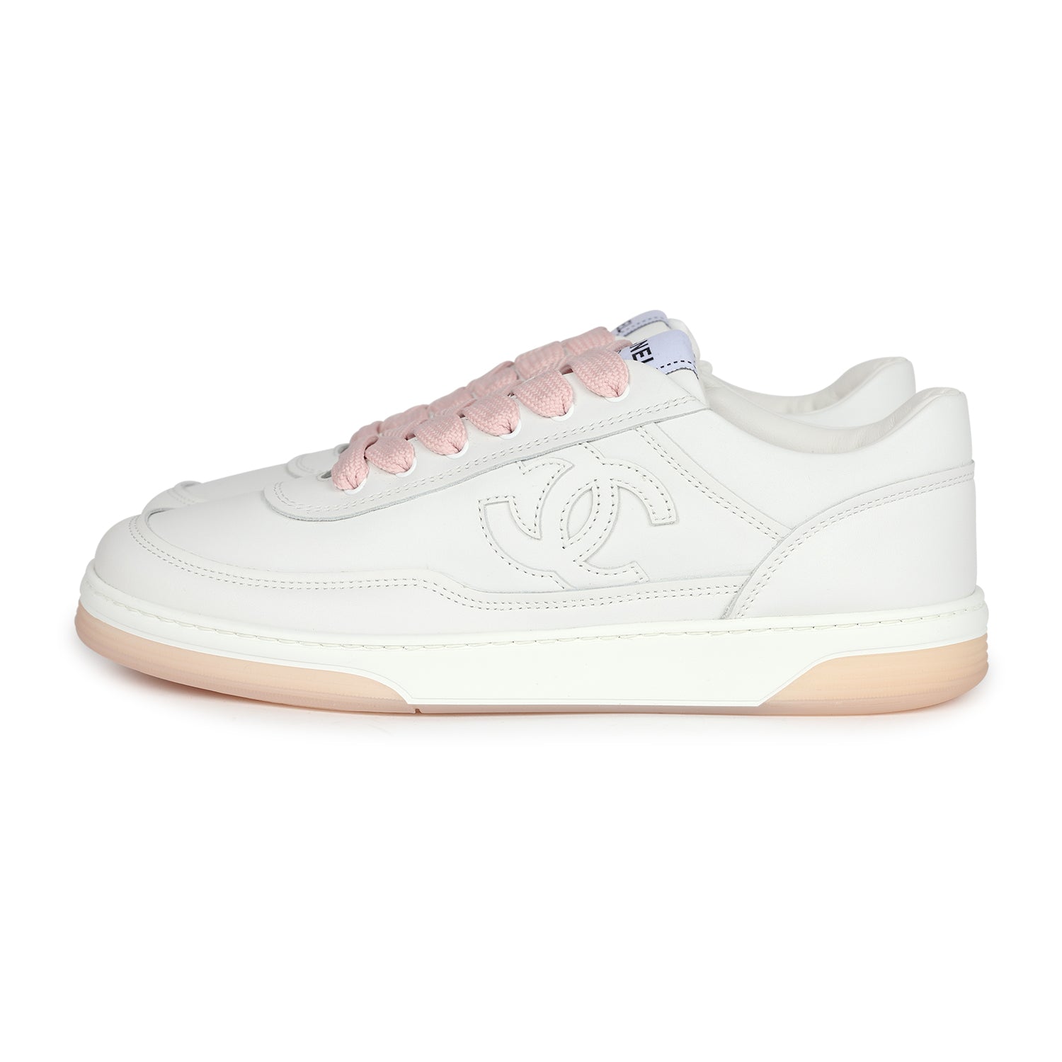 Chanel CC Low Top Sneakers White and Pink 37.5 EU