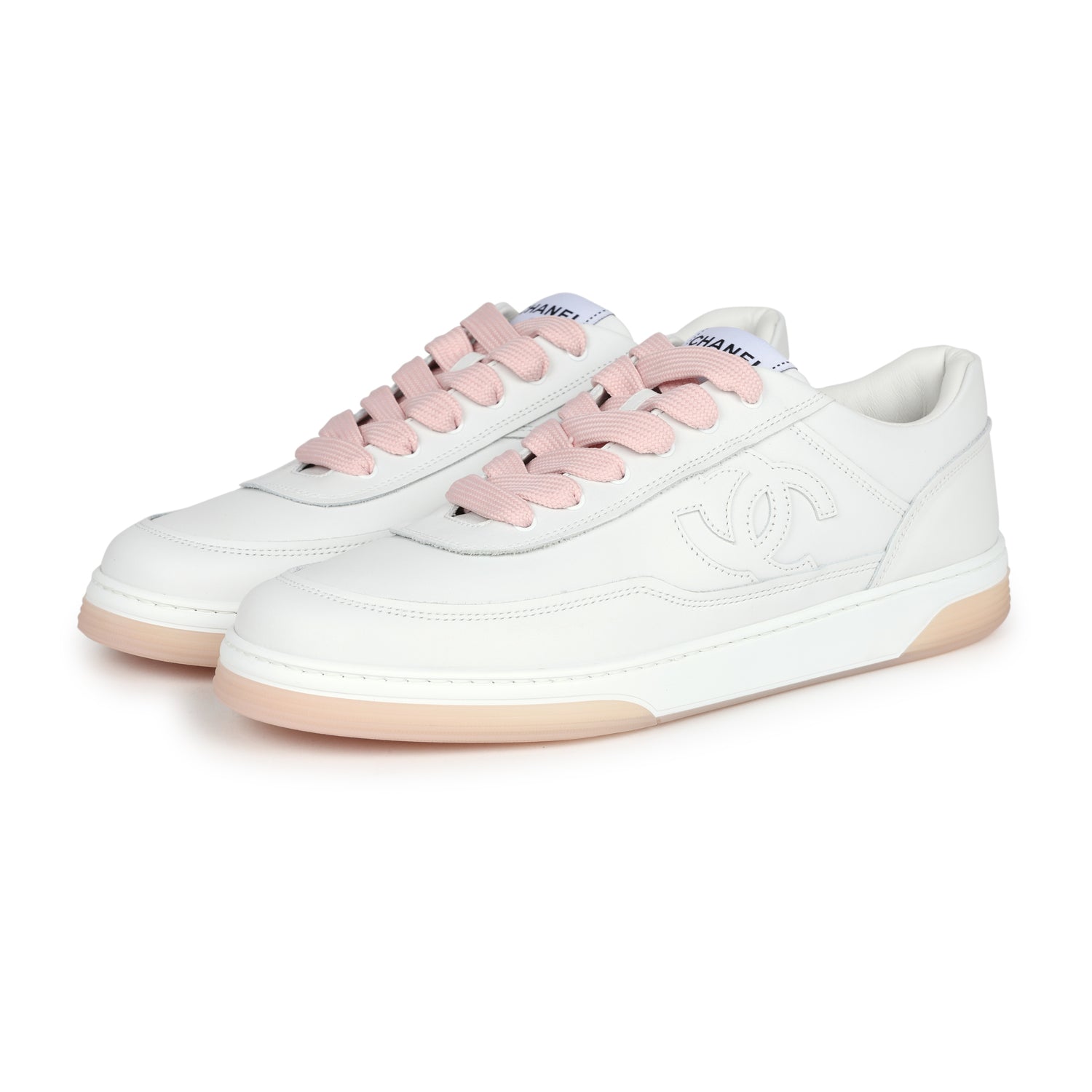 Chanel CC Low Top Sneakers White and Pink Calfskin 41 EU