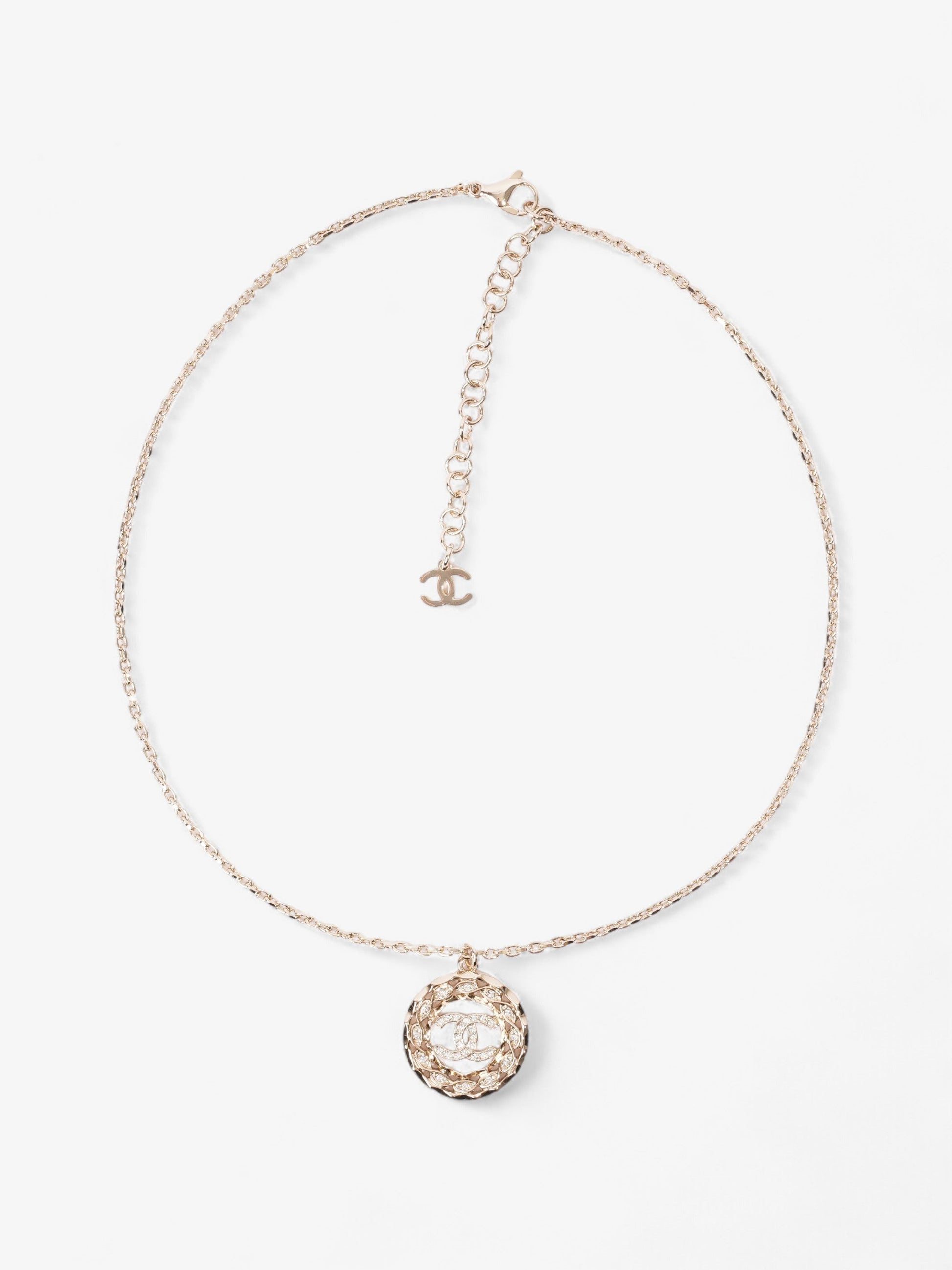 Chanel CC Medallion Necklace Light Gold Base Metal