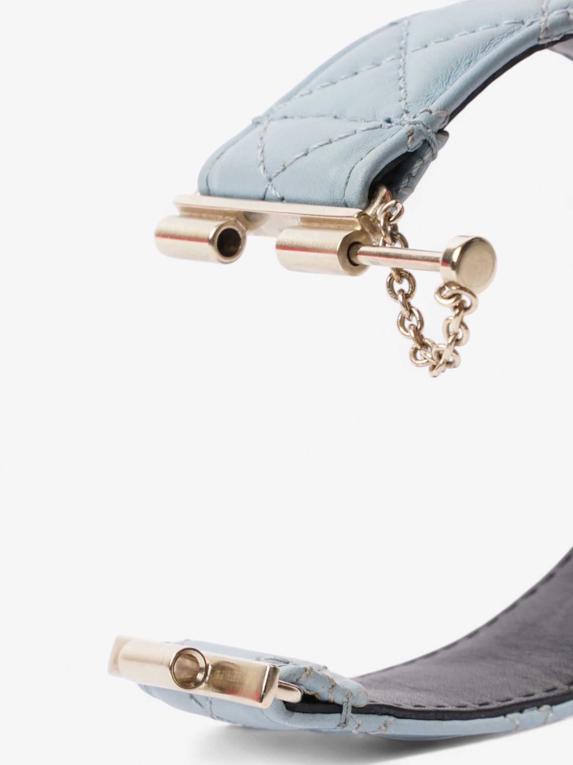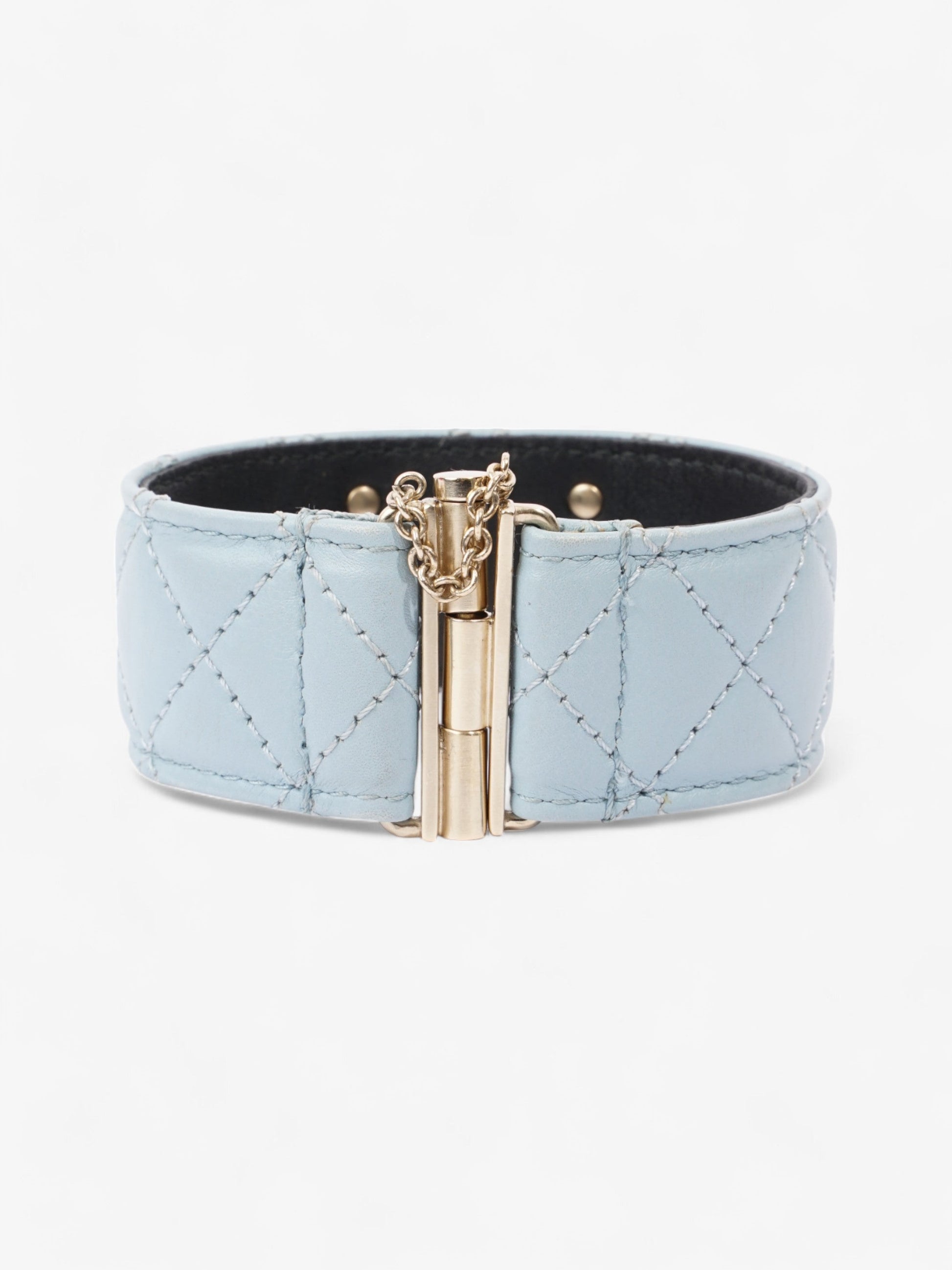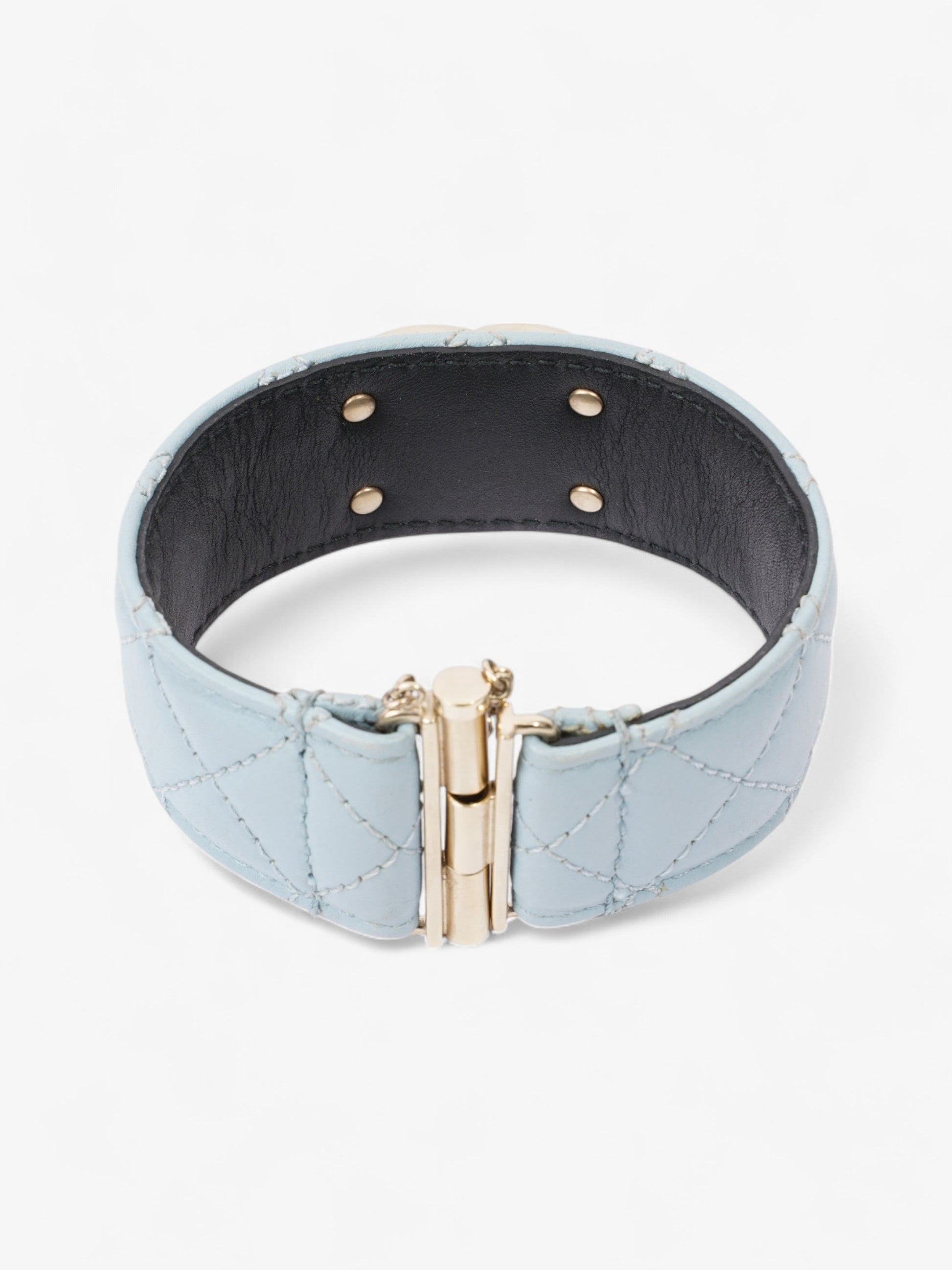 Chanel CC Pearl Cuff Bracelet Baby Blue / Light Gold Leather