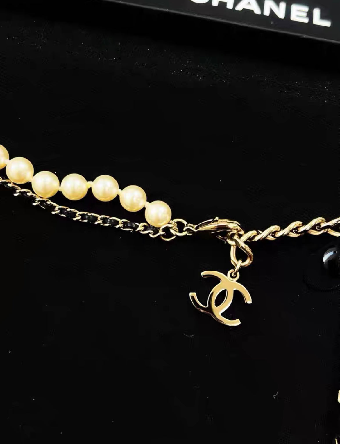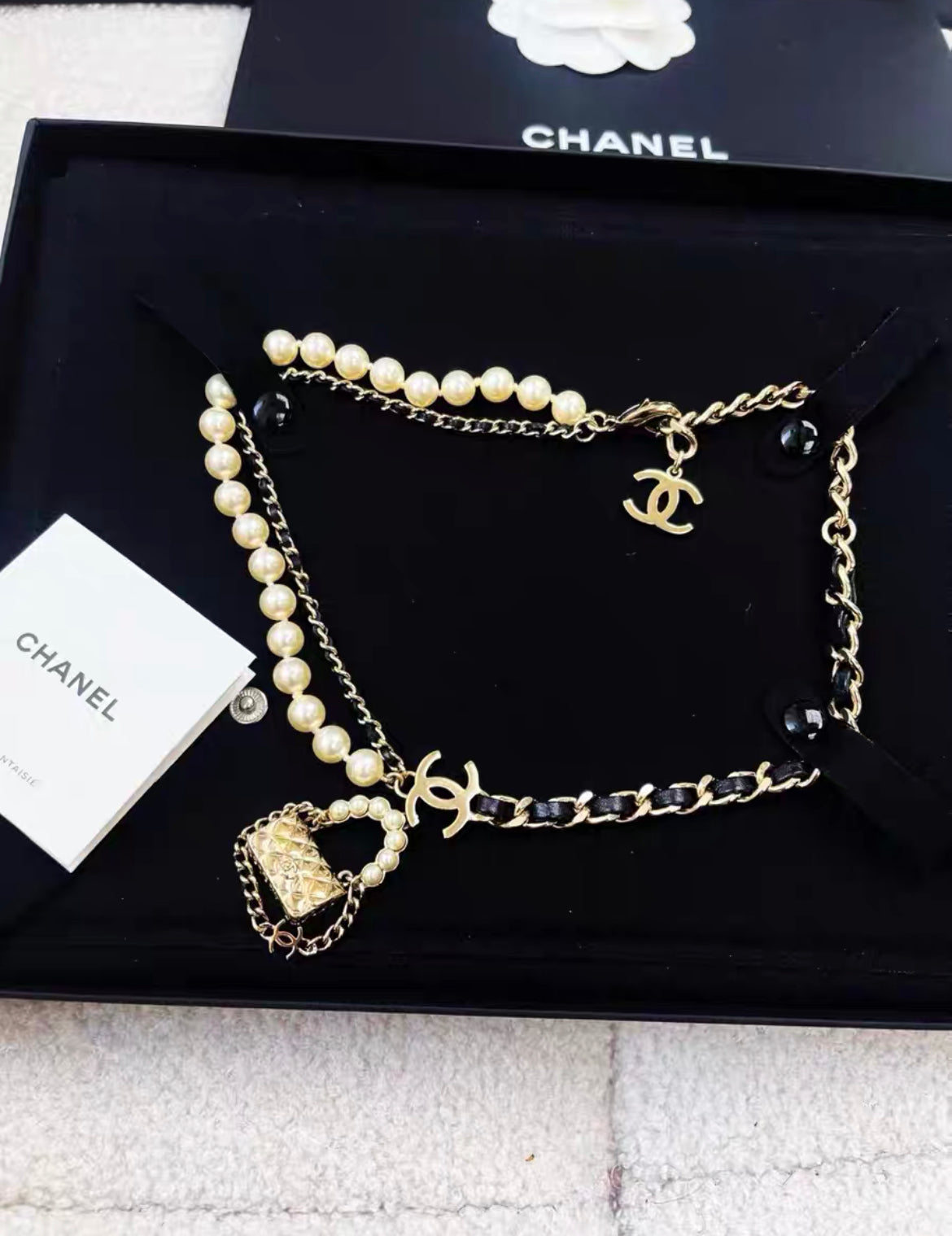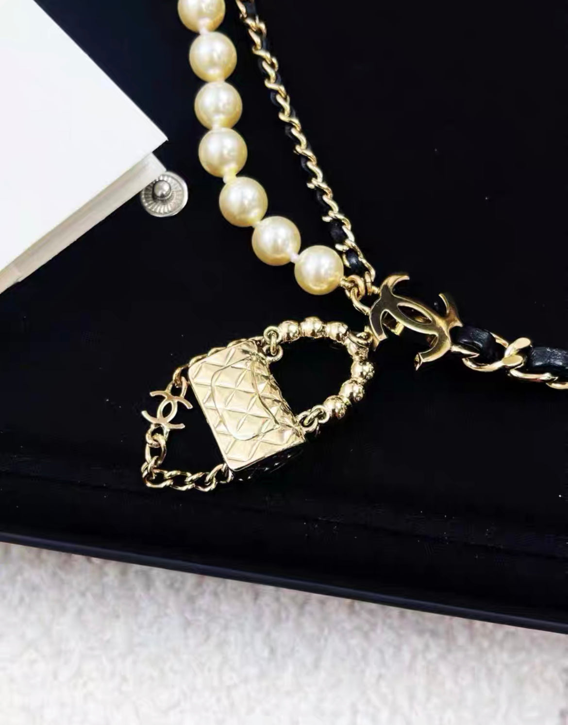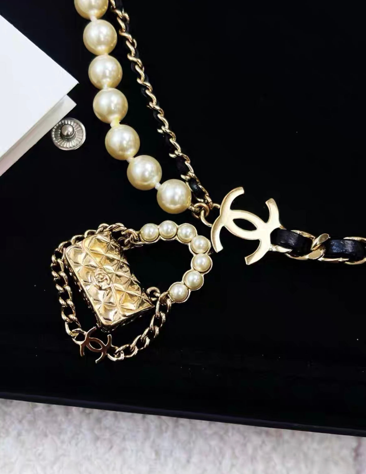Chanel CC Pearl Leather Bag Pendant Necklace