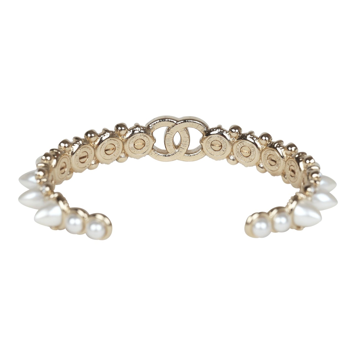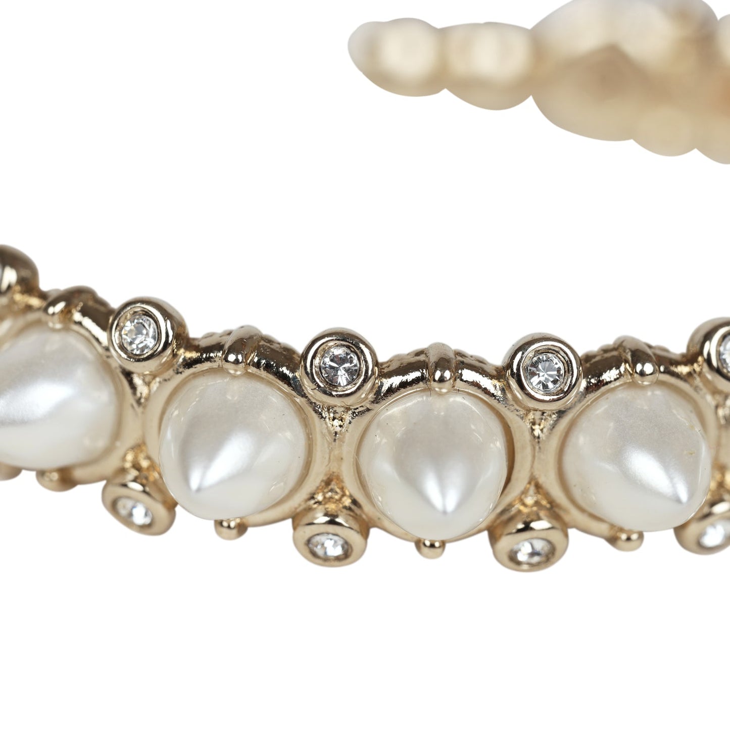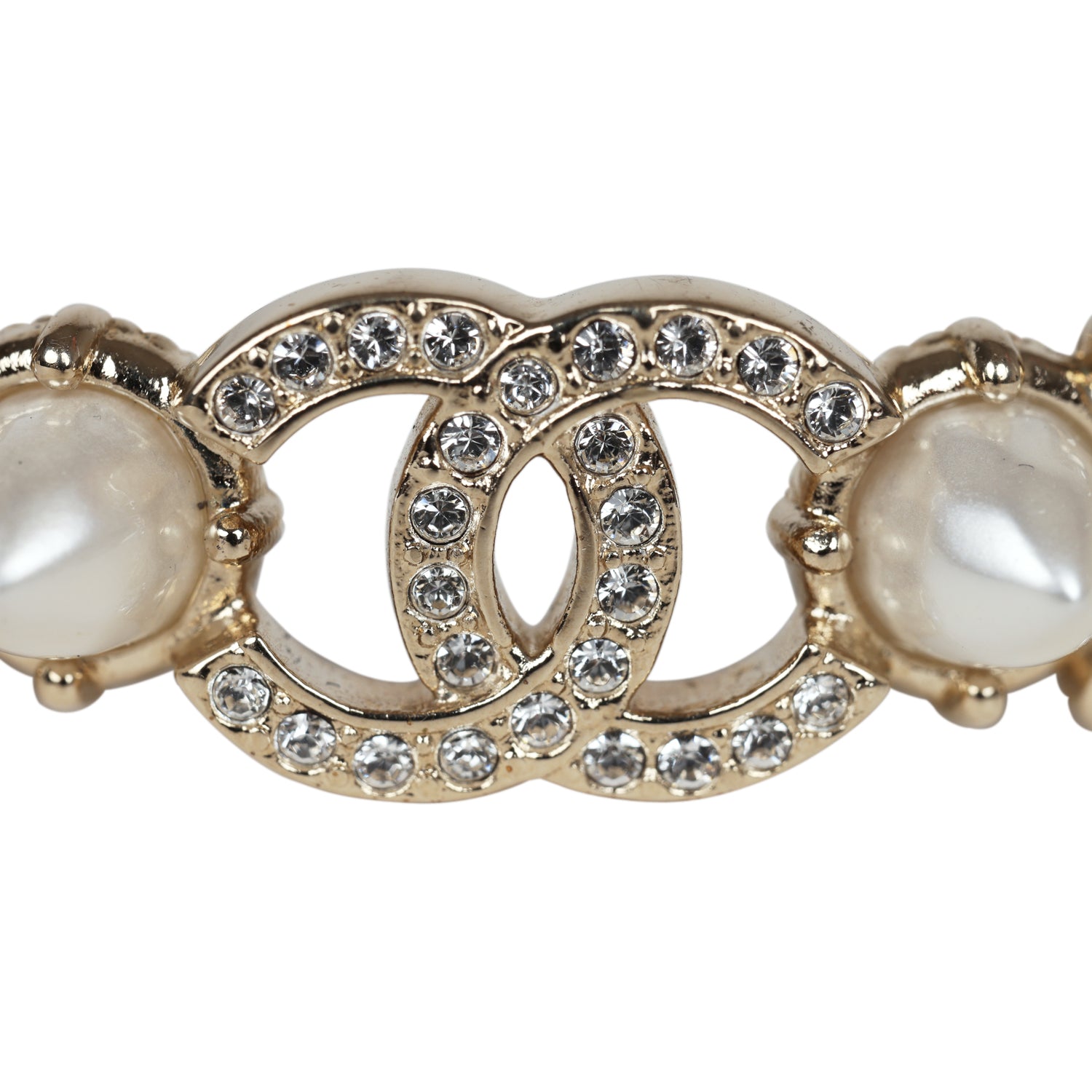 Chanel CC Spiked Crystal and Pearl Cuff Bracelet Light Gold Hardware