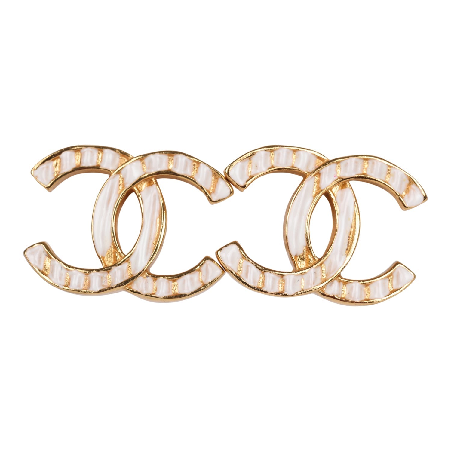 Chanel CC Stud Earrings White Textured Enamel and Gold Metal