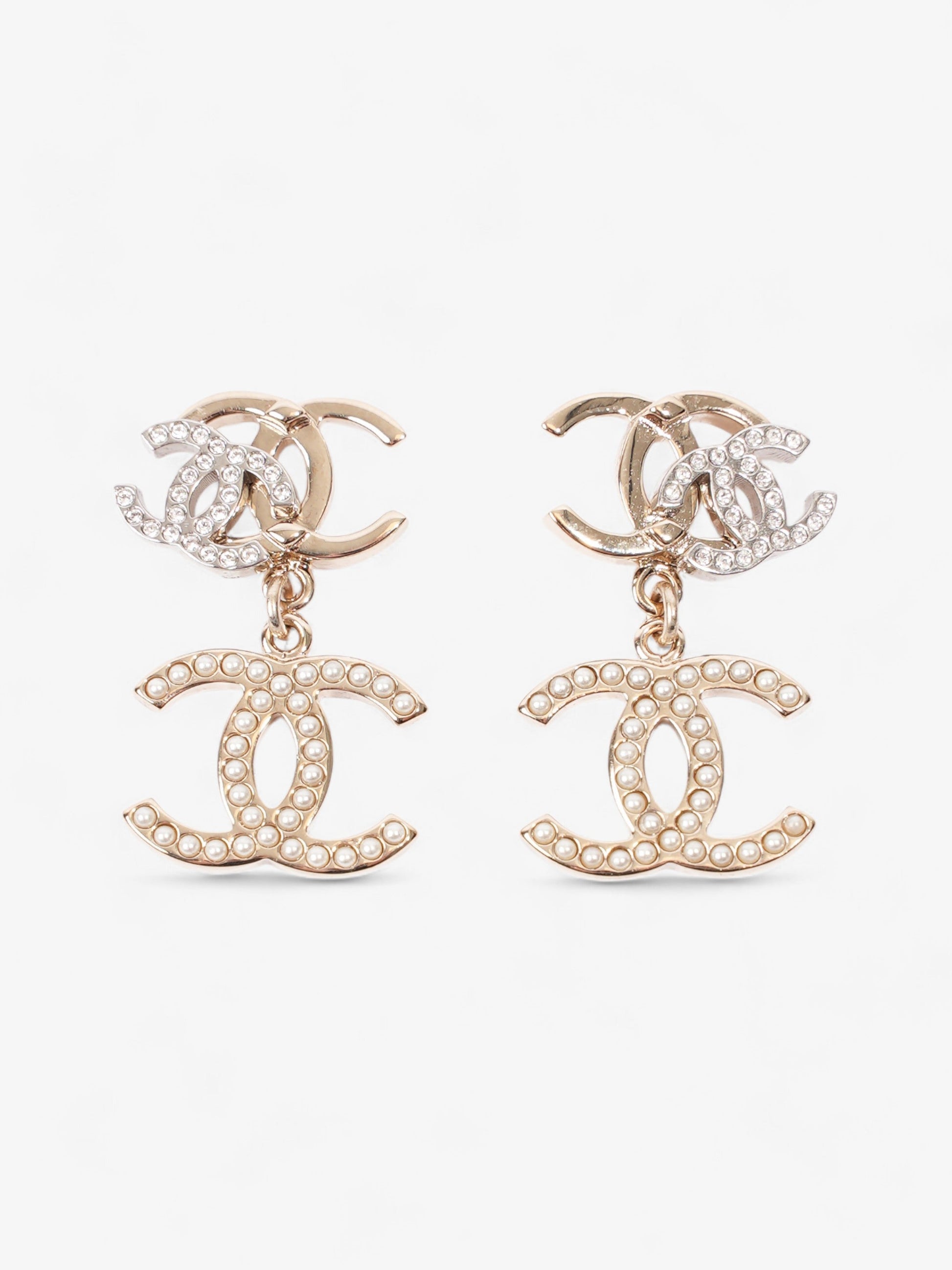 Chanel CC Triple Earrings Silver / Light Gold Base Metal