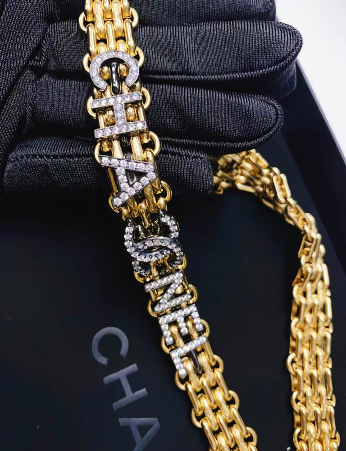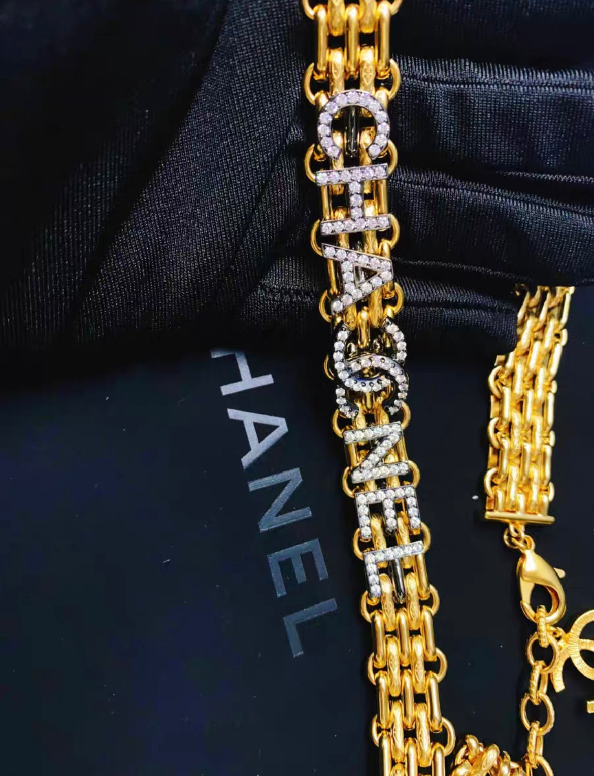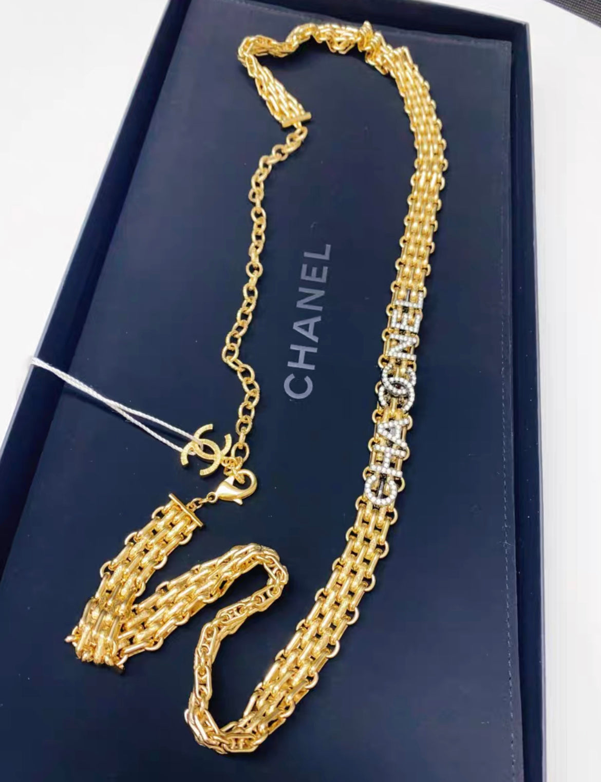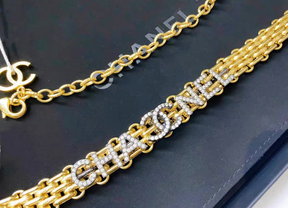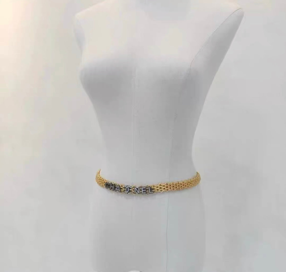 Chanel Chain Belt in Gold with CC letters and rhinstone