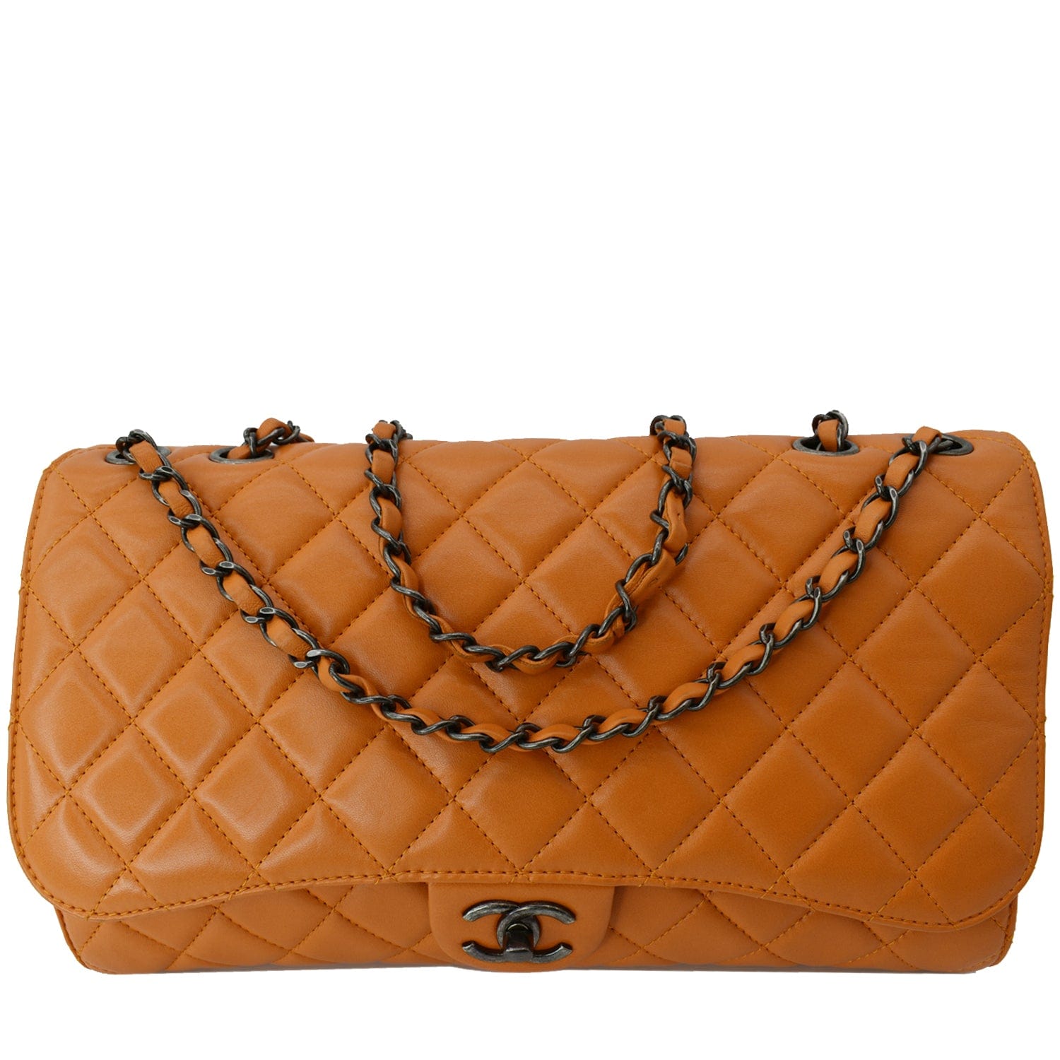 CHANEL Classic Flap Drawstring Quilted Lambskin Leather Shopper Shoulder Bag Orange - Hot Deals