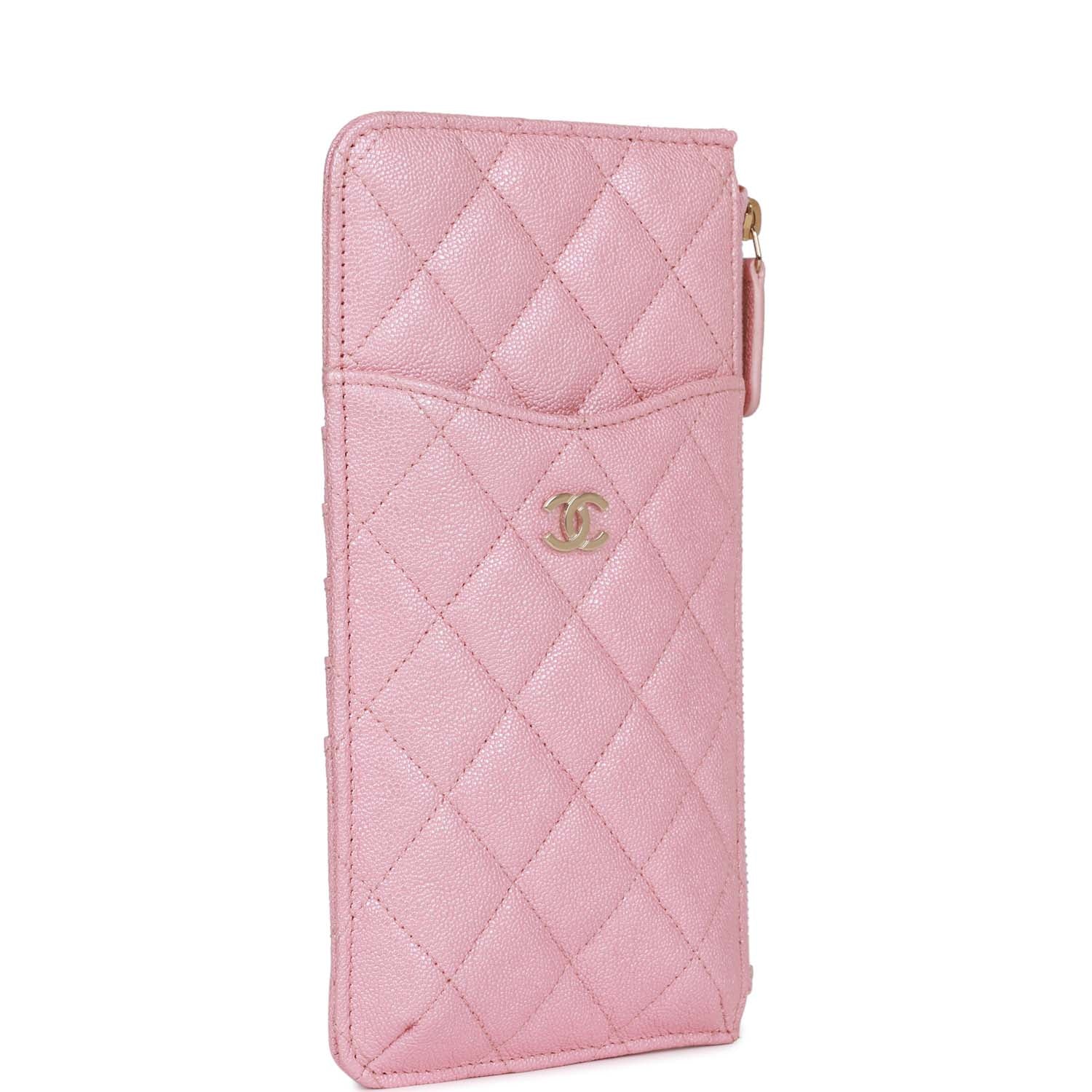Chanel Classic Phone Case Pouch Wallet Iridescent Pink Caviar Light Gold Hardware