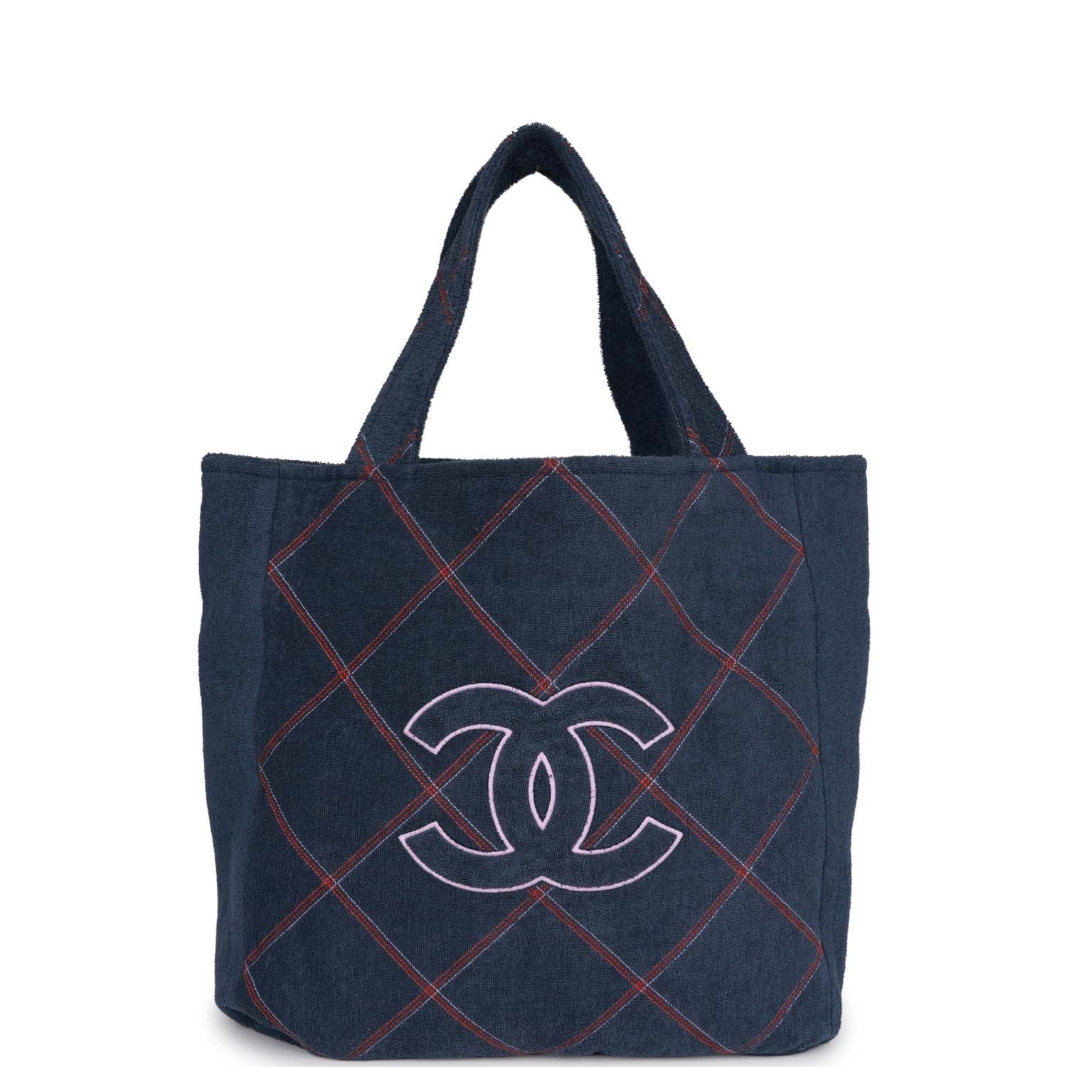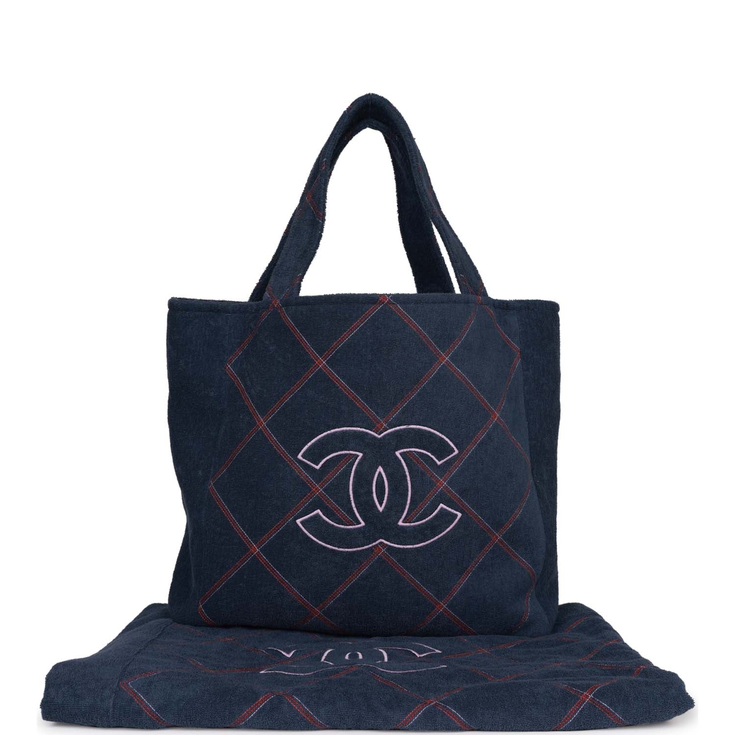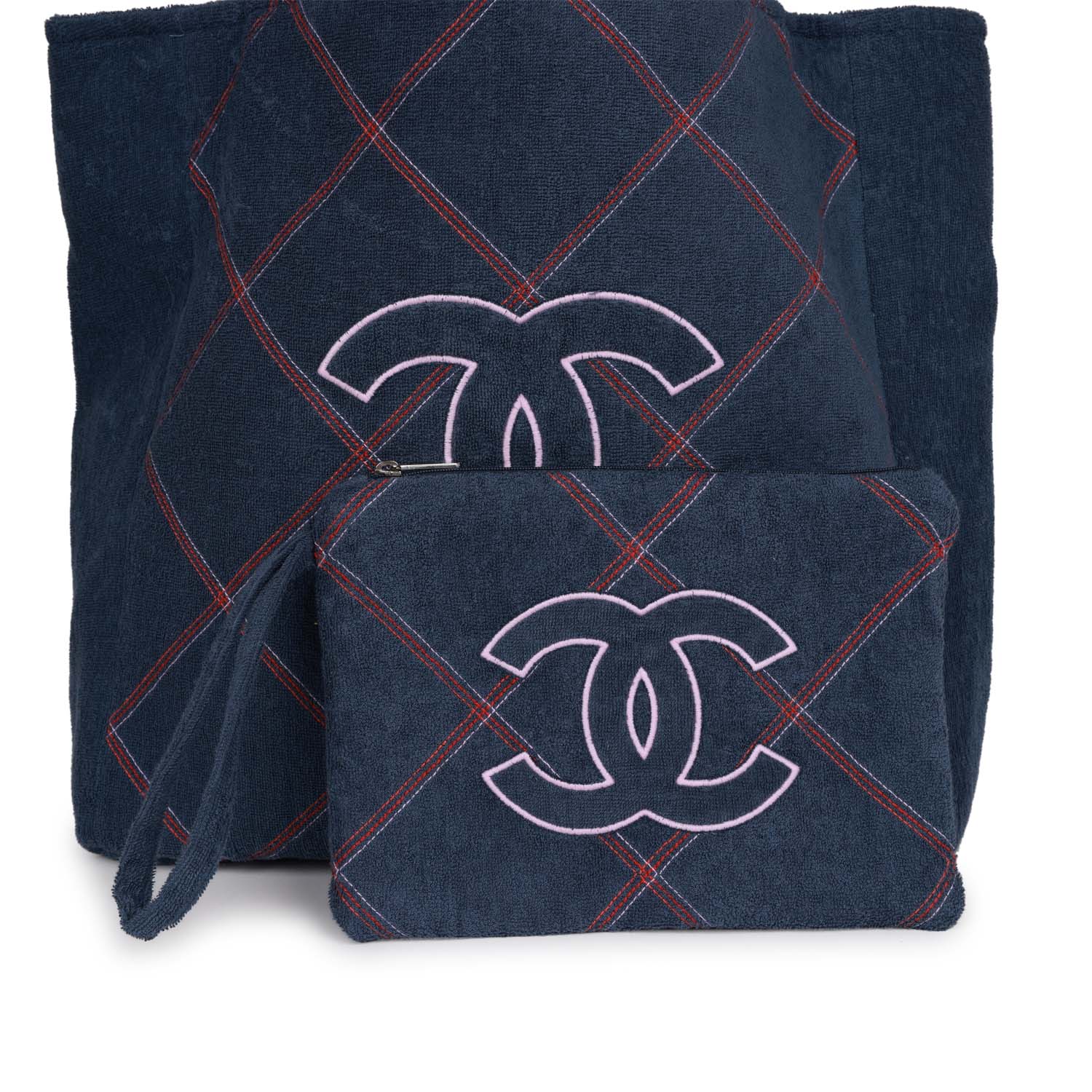 Chanel Coco Beach Tote Navy Terry Cloth with Towel/Pouch