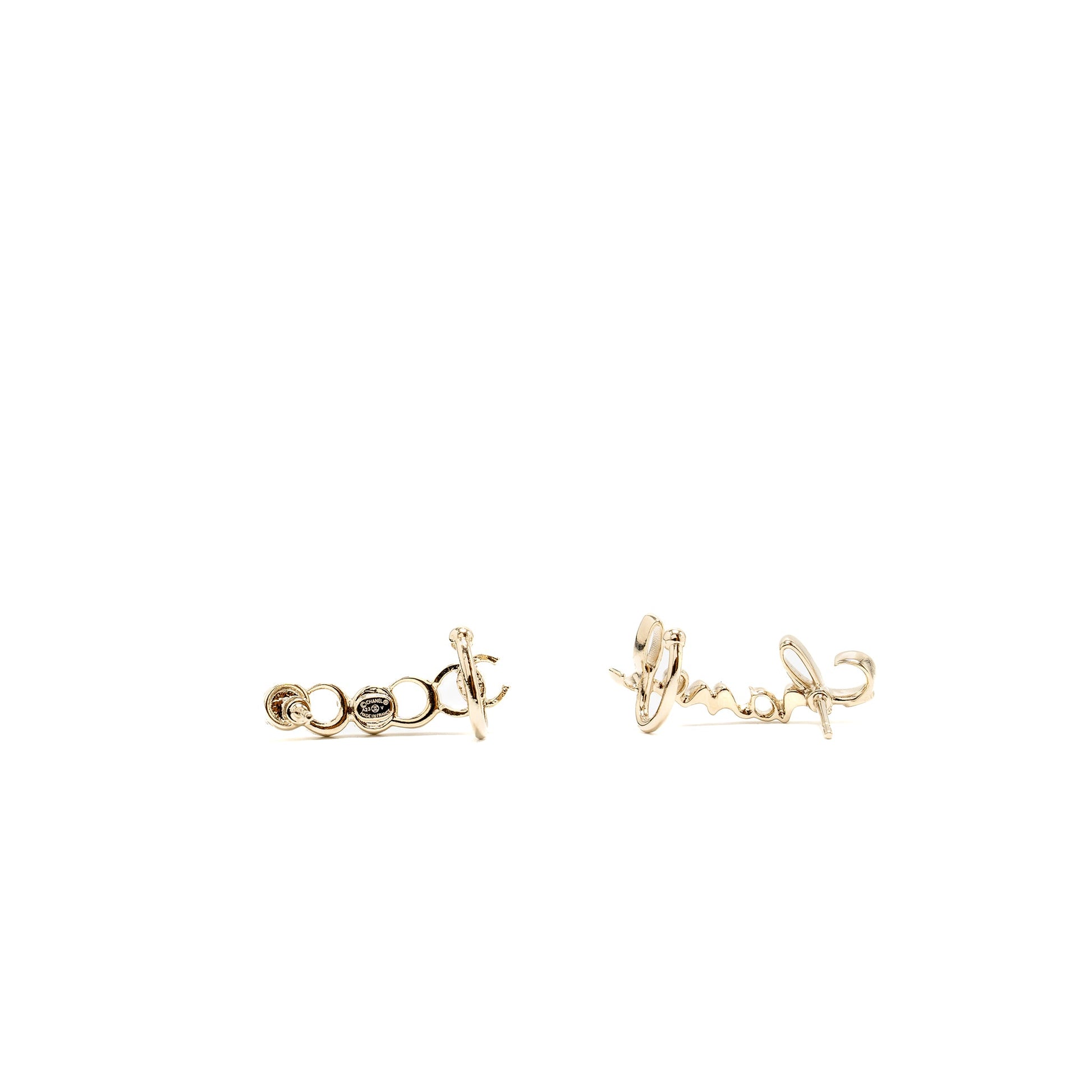 Chanel Coco Chanel letter earrings light gold tone