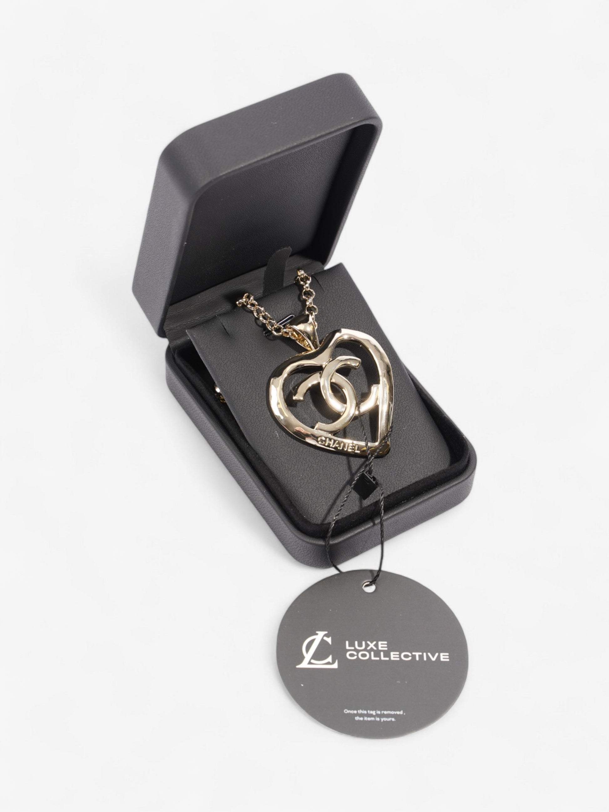 Chanel Coco Heart Long Necklace Light Gold Base Metal