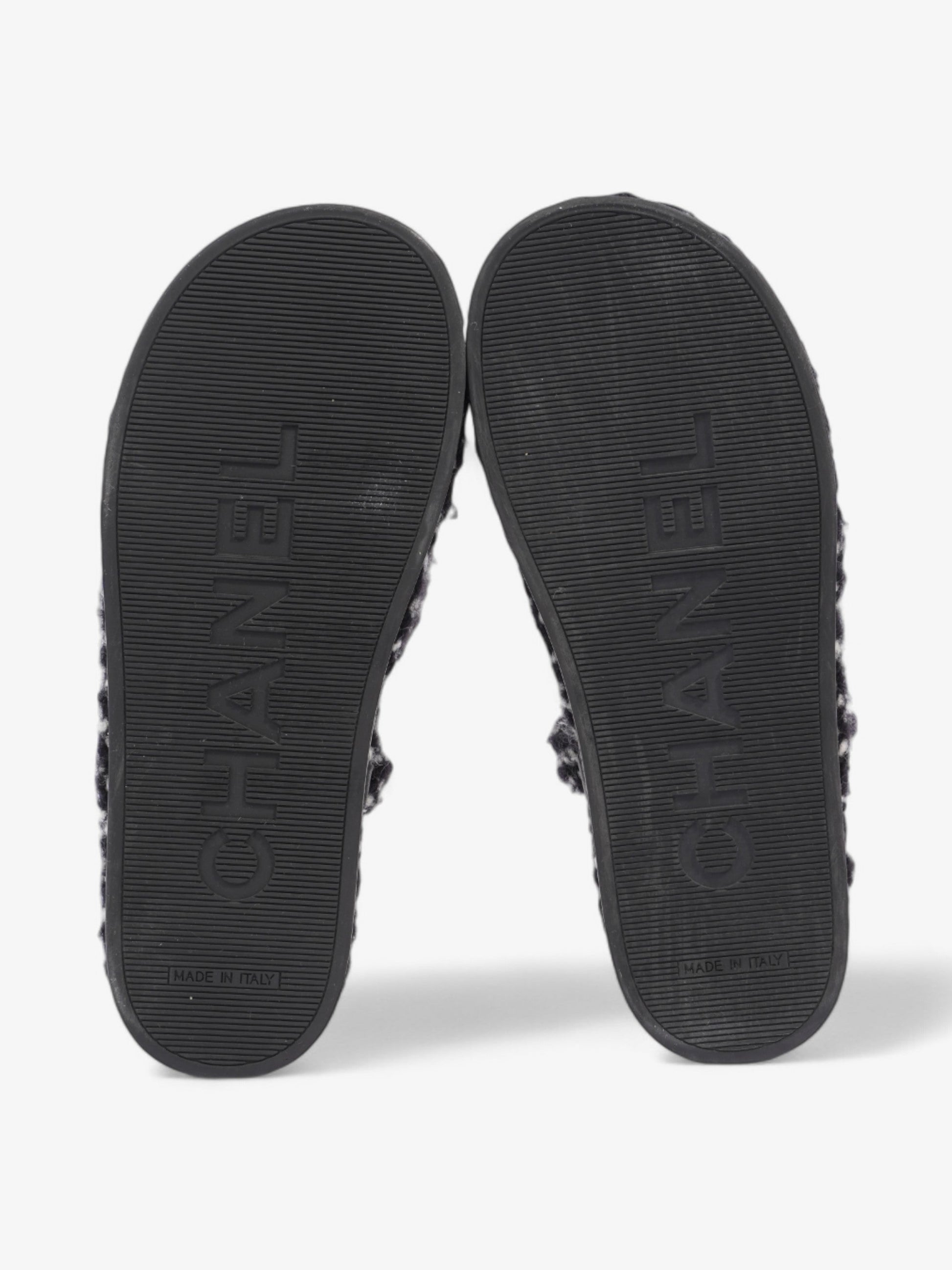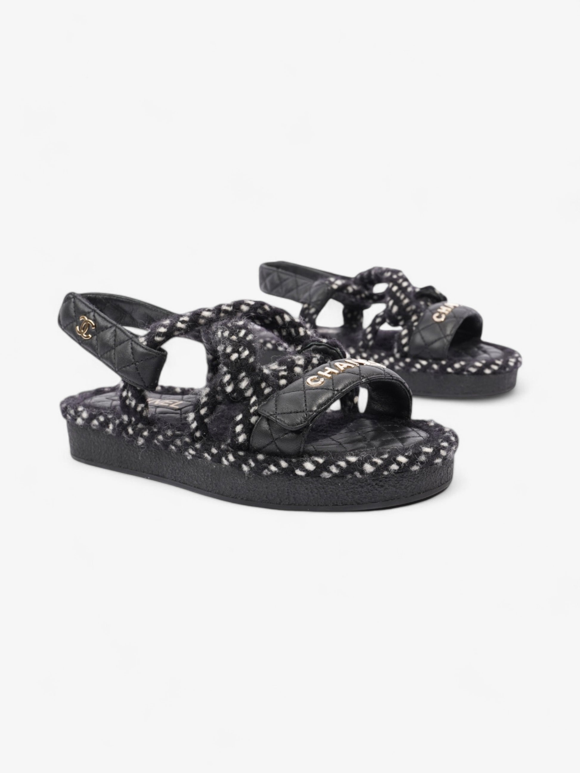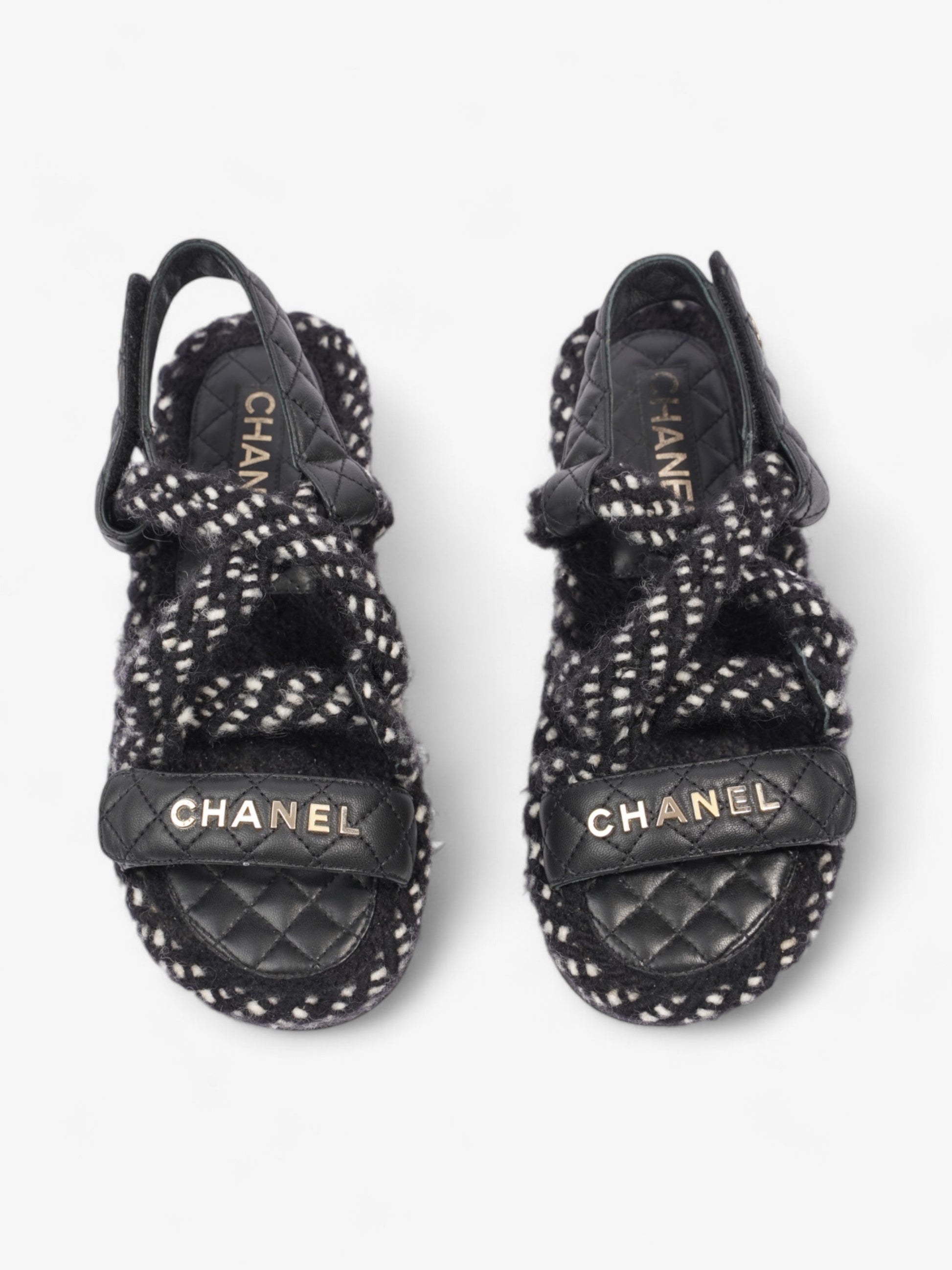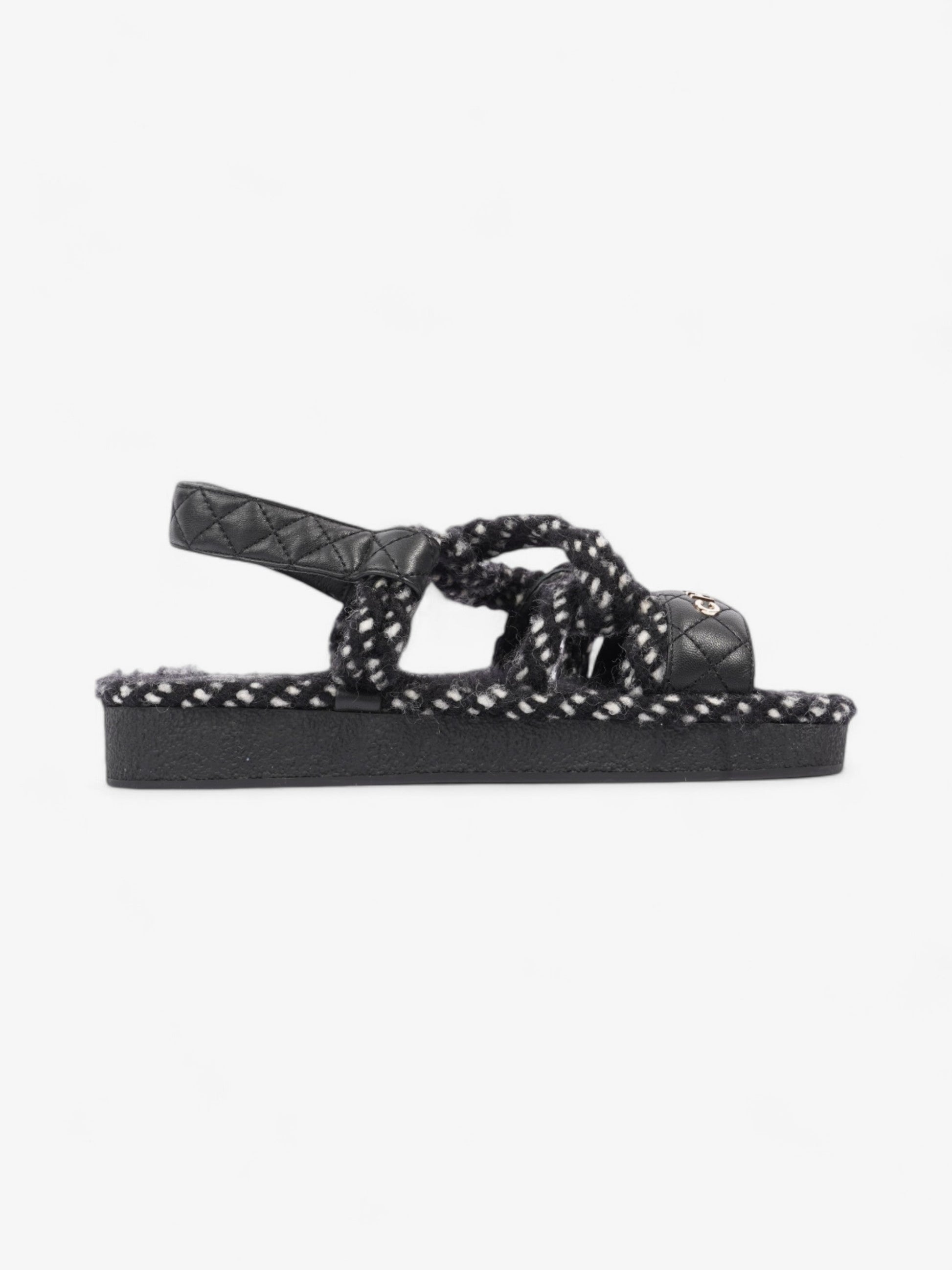 Chanel Cord Logo Sandals Black / White / Gold Lambskin Leather EU 36 UK 3