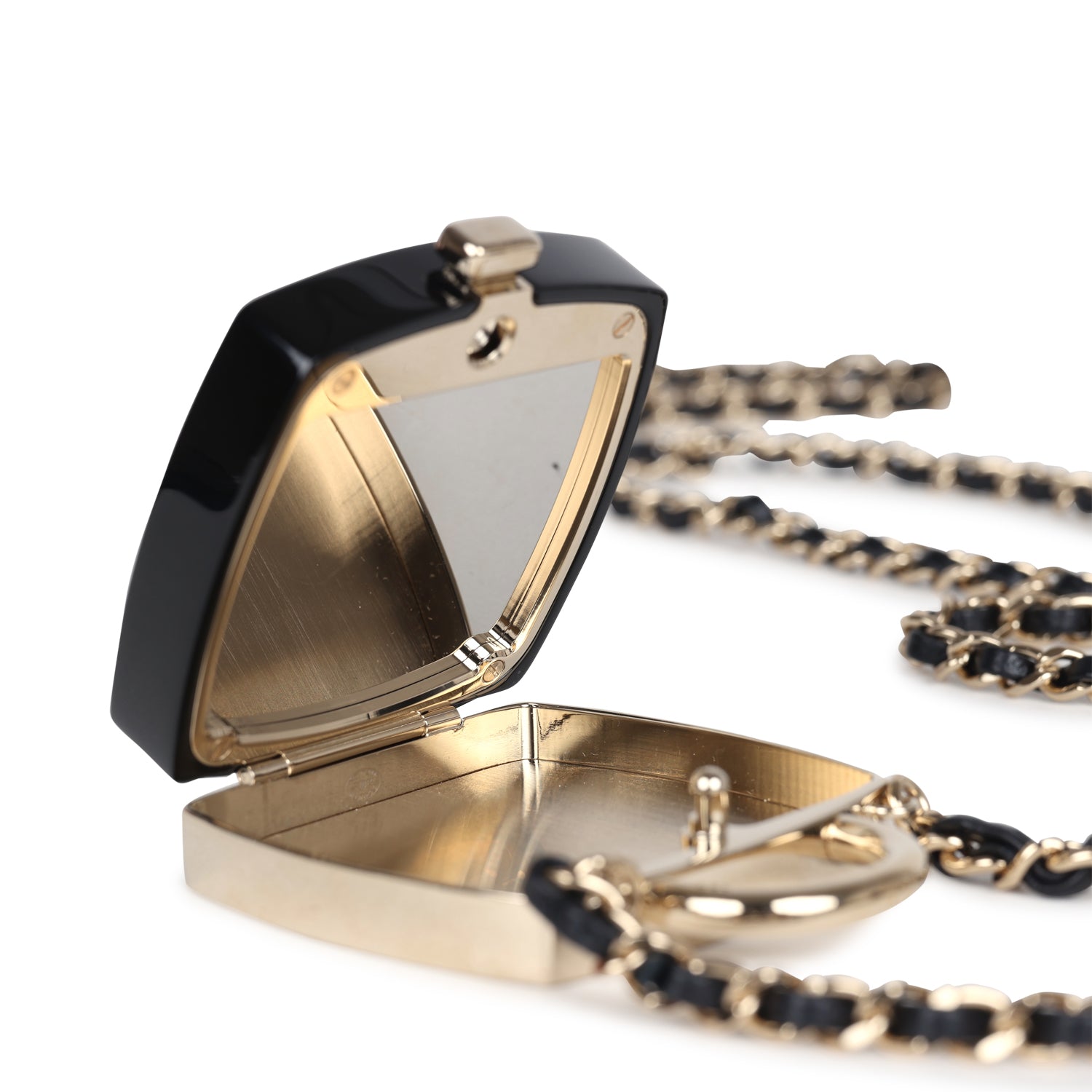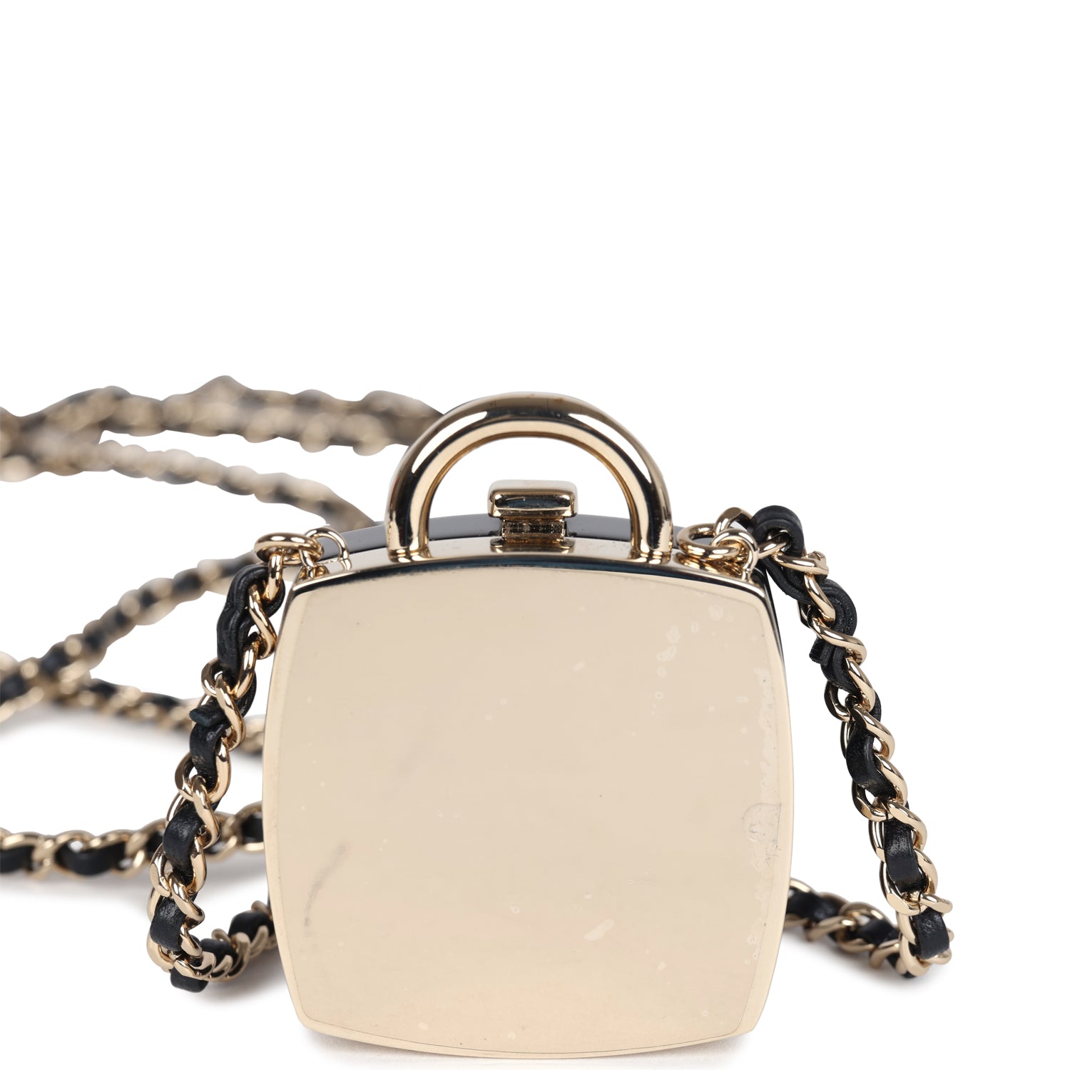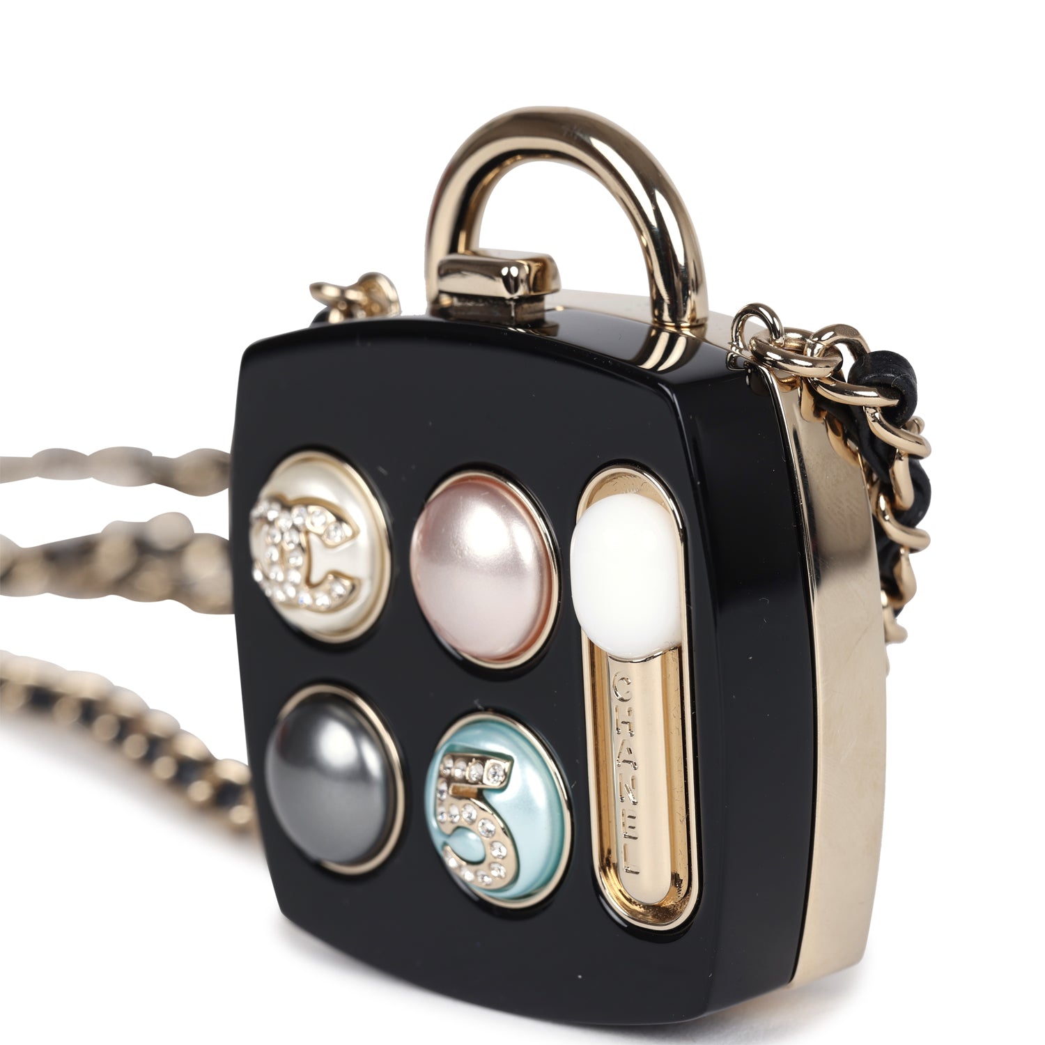 Chanel Cosmetic Compact Pendant Long Necklace Black/Multi Resin/Faux Crystals & Light Gold Tone Hardware