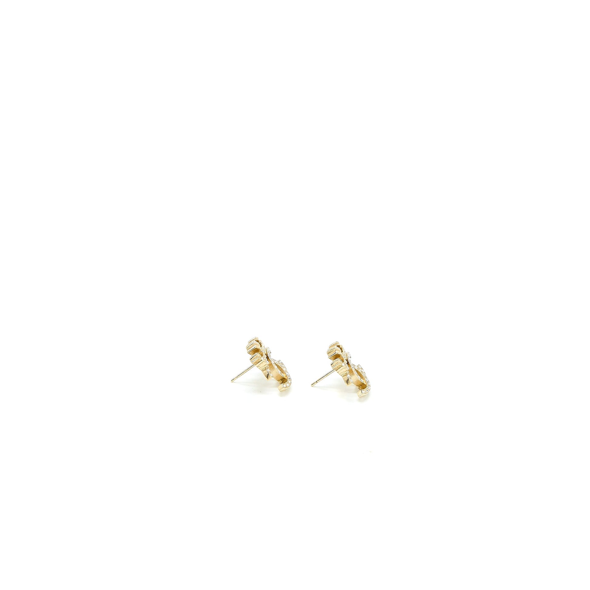 Chanel Crown CC Logo Earrings Crystal Light Gold Tone