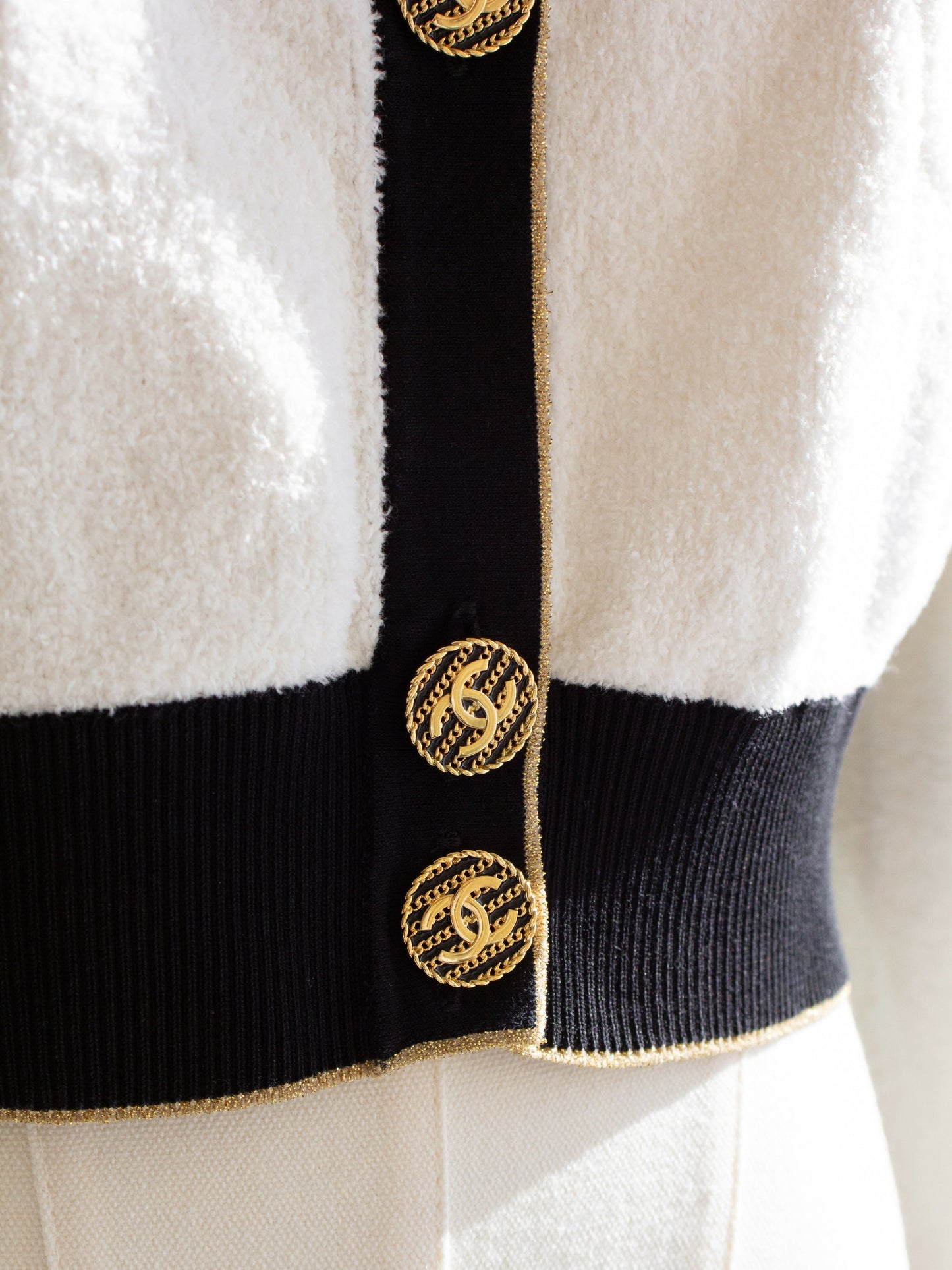 Chanel Cruise 2019 La Pausa White Black Gold Terry 19C Cardigan Jacket
