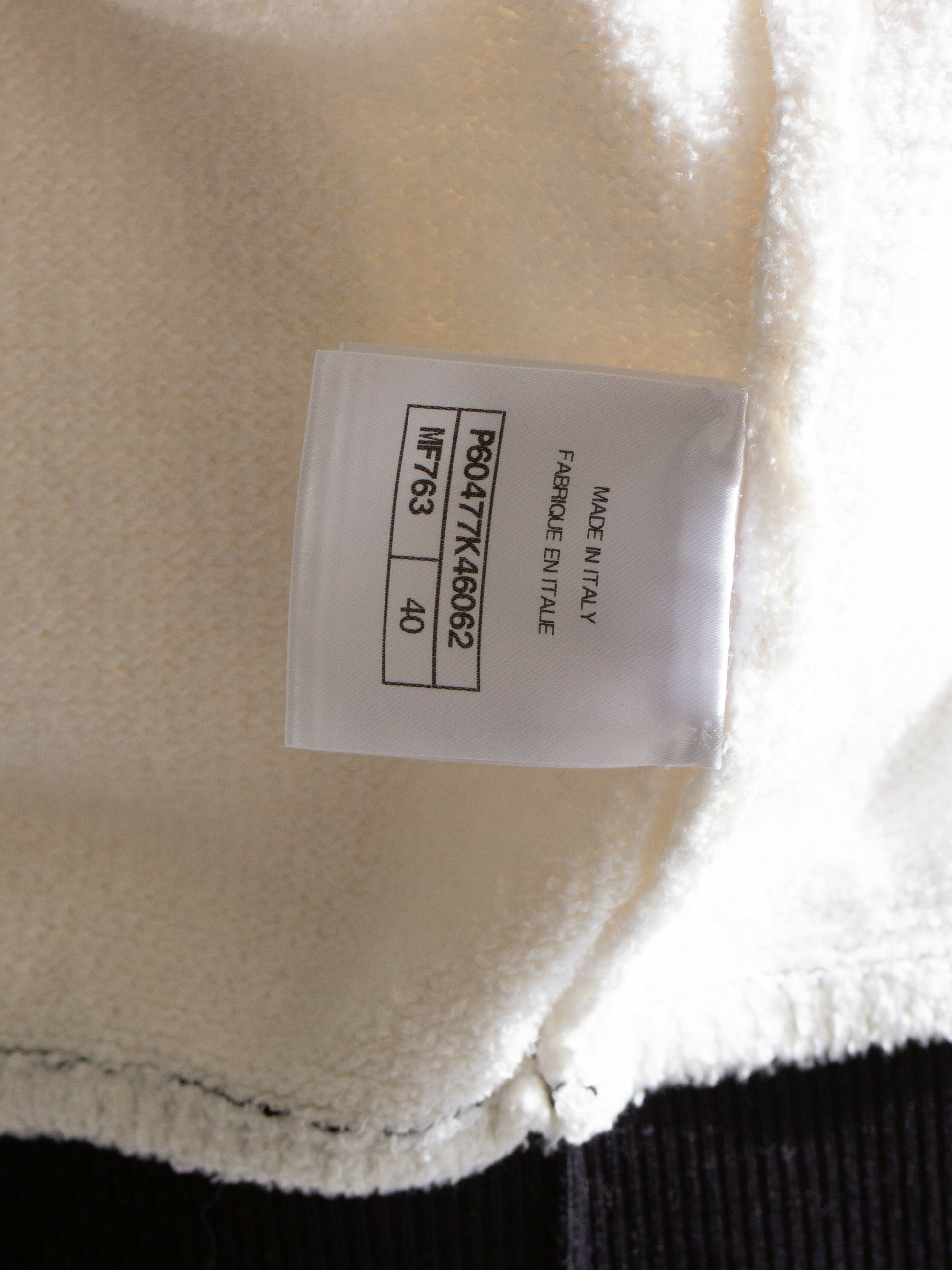 The most sought-after white cardigan from the Chanel Cruise 2019 La Pausa collection. As seen on Claudia Schiffer, Selena Gomez, Penelope Cruz, Aisling Franciosi, Kristen Stewart and fashion bloggers around the world. A perfect example of Lagerfeld's work, this masterpiece just screams Chanel: from signature CC-logo buttons to the chic white textured fabric with black trims, true Chanel DNA. Excellent collectible piece to buy now and keep forever.
