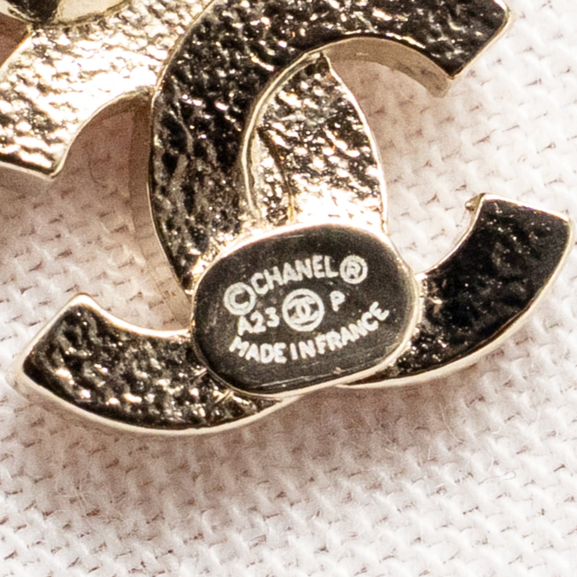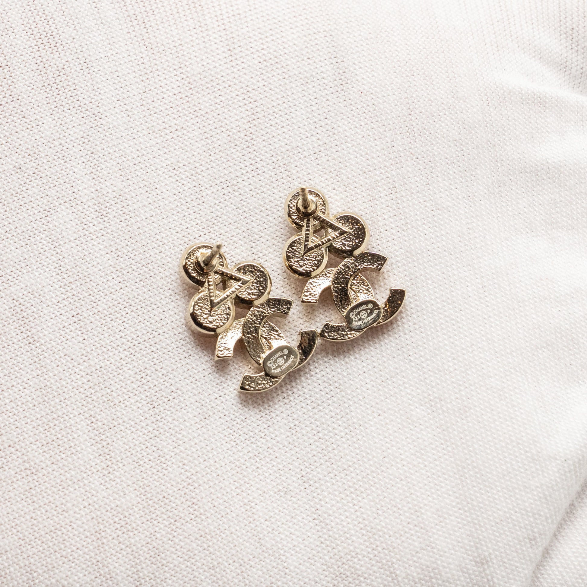 Chanel Crystal and CC Logo Drop Earrings Light Gold Tone